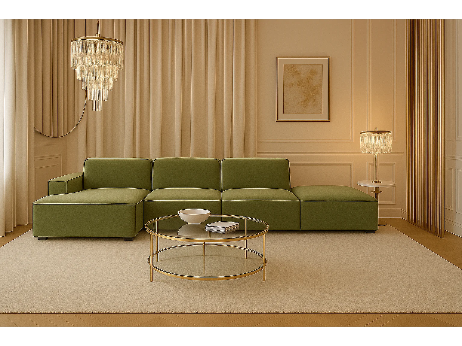 Ecksofa L-Form + Hocker Cursal, Stoff Salvador, Olive, Links