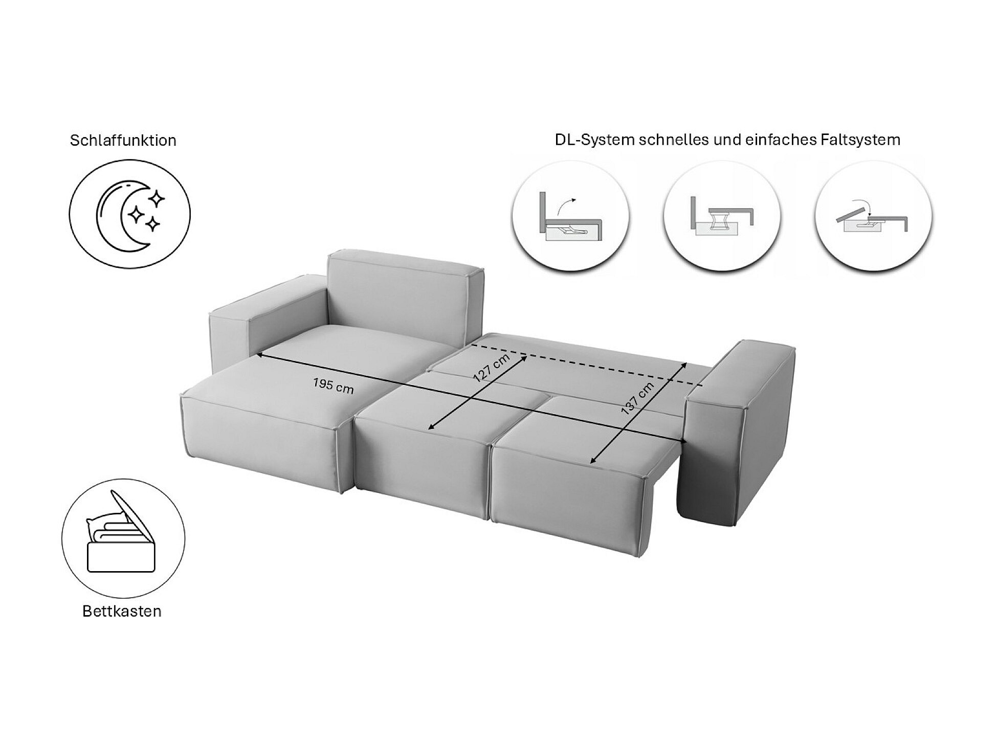 Ecksofa L-Form, Premium Kollektion ELLA, Stoff Noel, Grau, Links