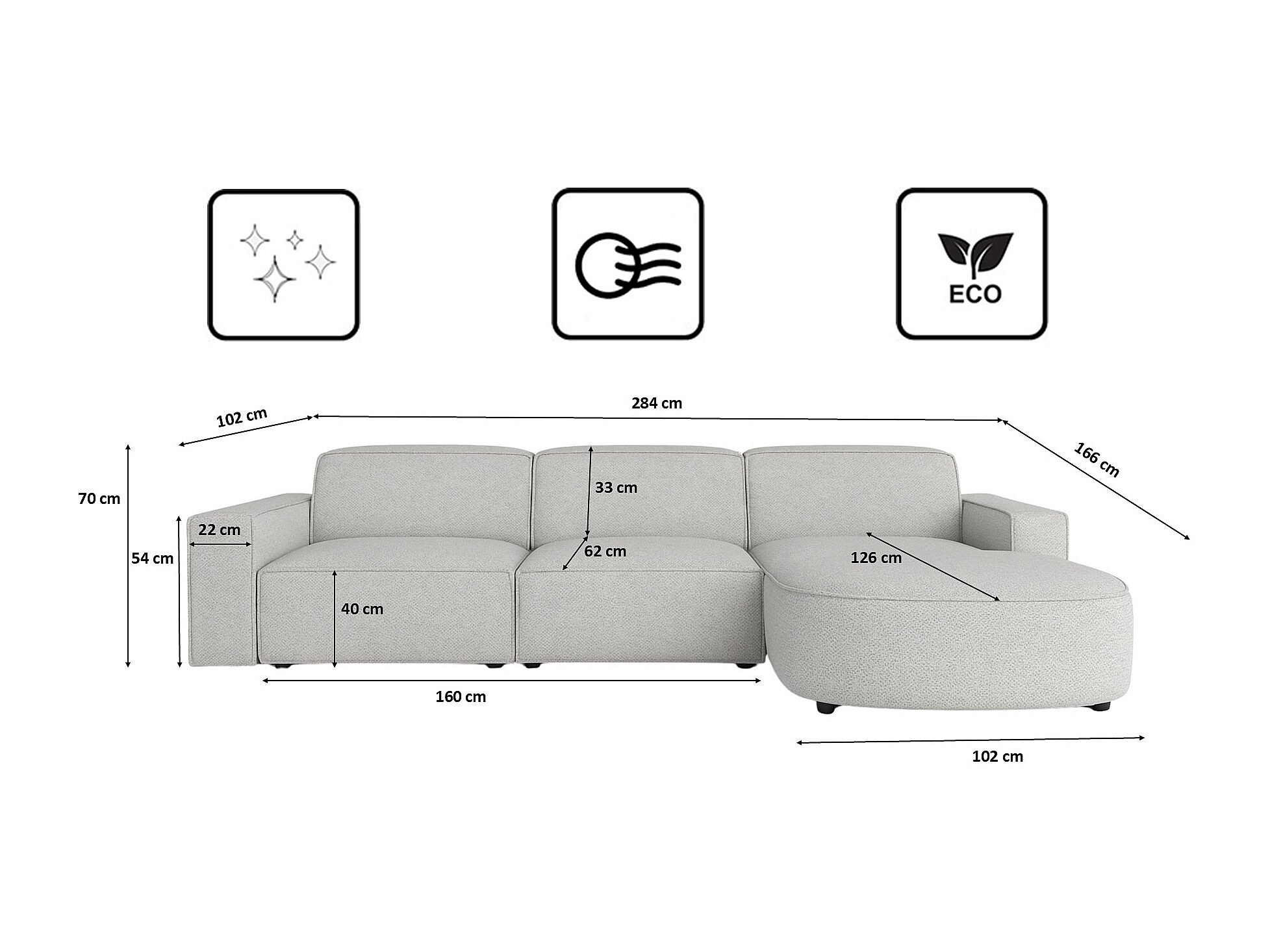 Ecksofa L-Form Round Cursal, Stoff Artico, Cement, Rechts