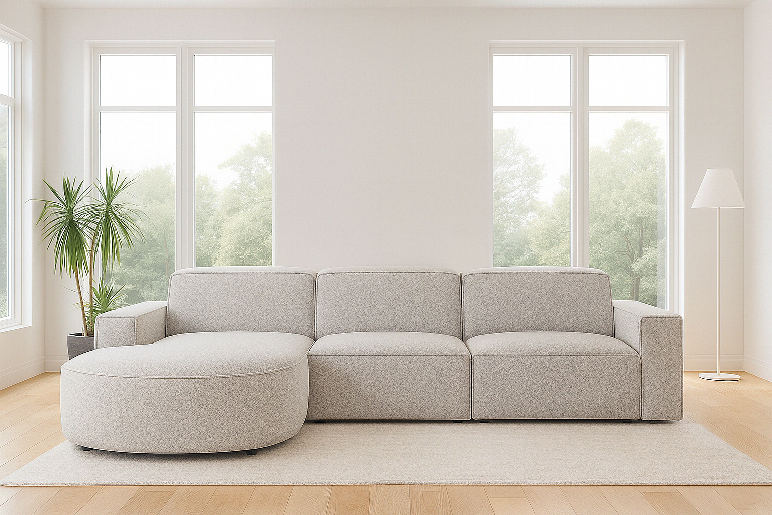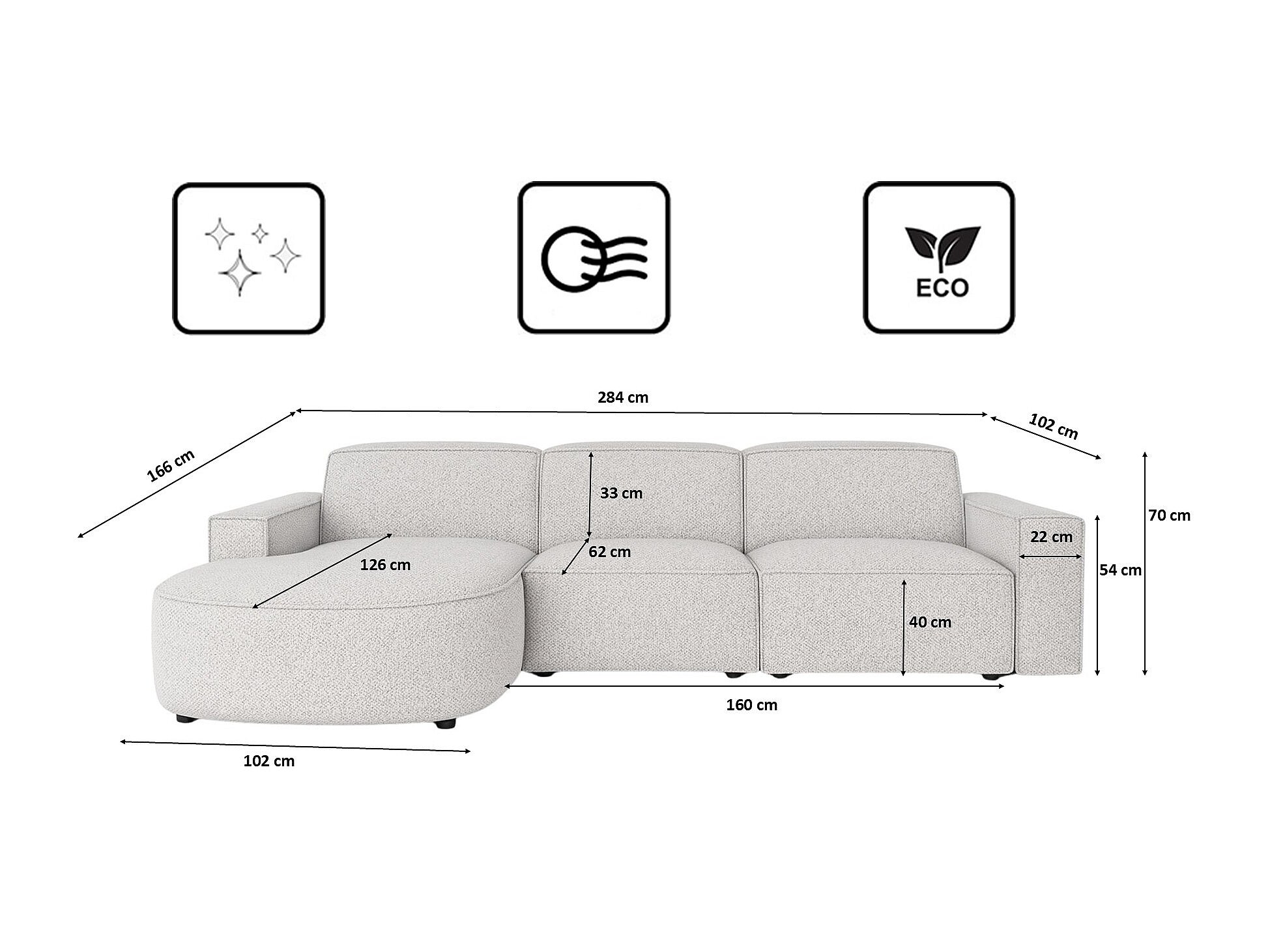 Ecksofa L-Form Round Cursal, Stoff Artico, Nata, Links