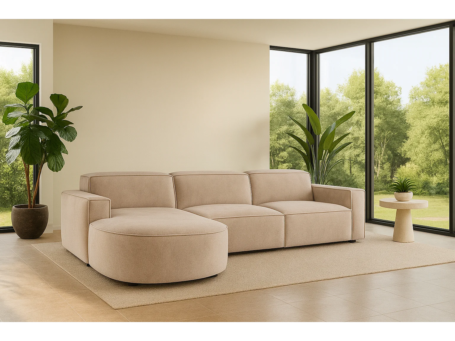 Ecksofa L-Form Round Cursal, Stoff Salvador, Beige, Links