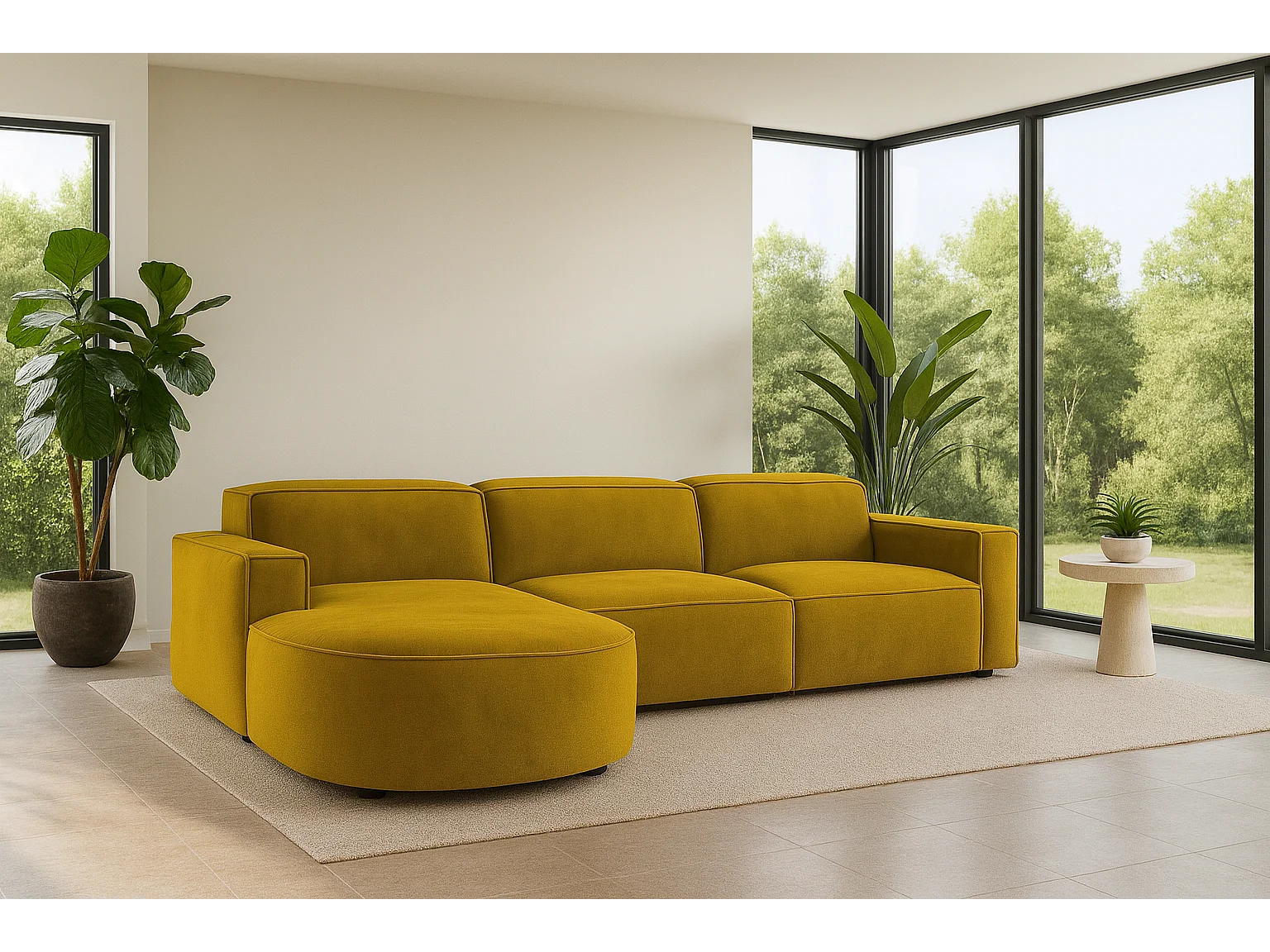 Ecksofa L-Form Round Cursal, Stoff Salvador, Gelb, Links