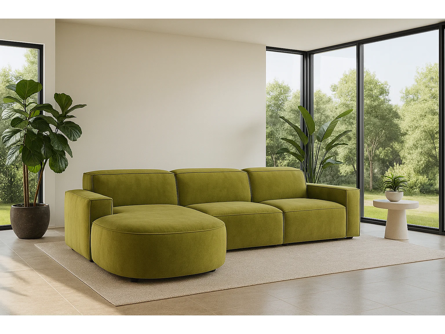 Ecksofa L-Form Round Cursal, Stoff Salvador, Olive, Links