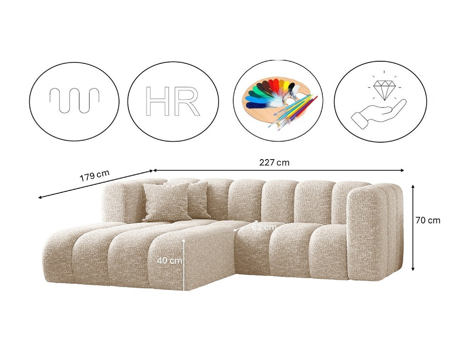 Ecksofa, L-form Sofa Grand modular stoff Haga Ecru Links