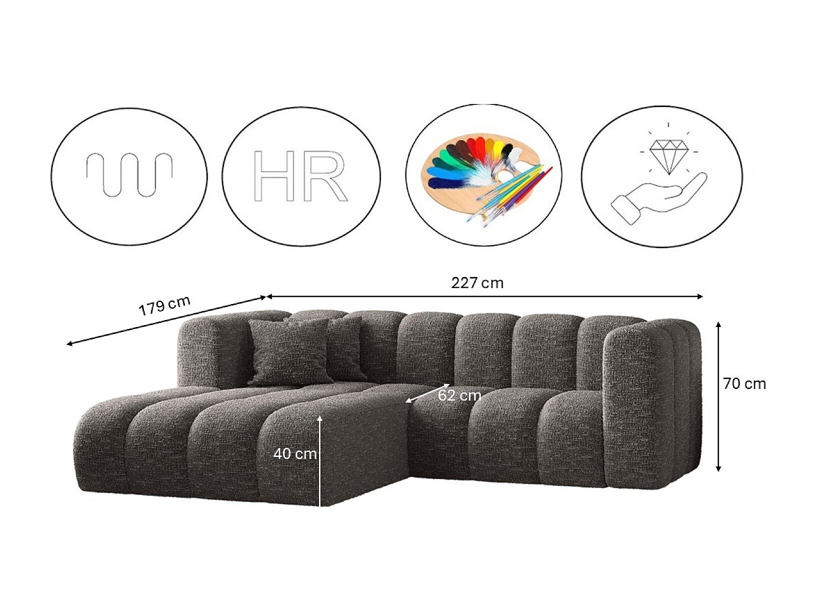 Ecksofa, L-form Sofa Grand modular stoff Haga Graphit Links