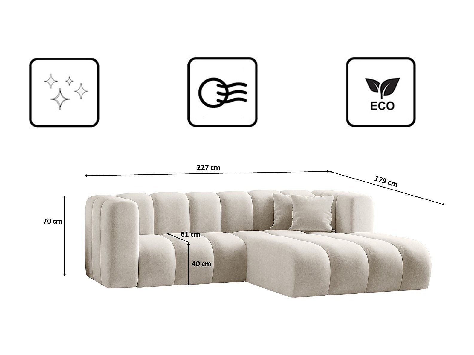 Ecksofa, L-from, Sofa Grand modular stoff Salvador Hellgrau Rechts