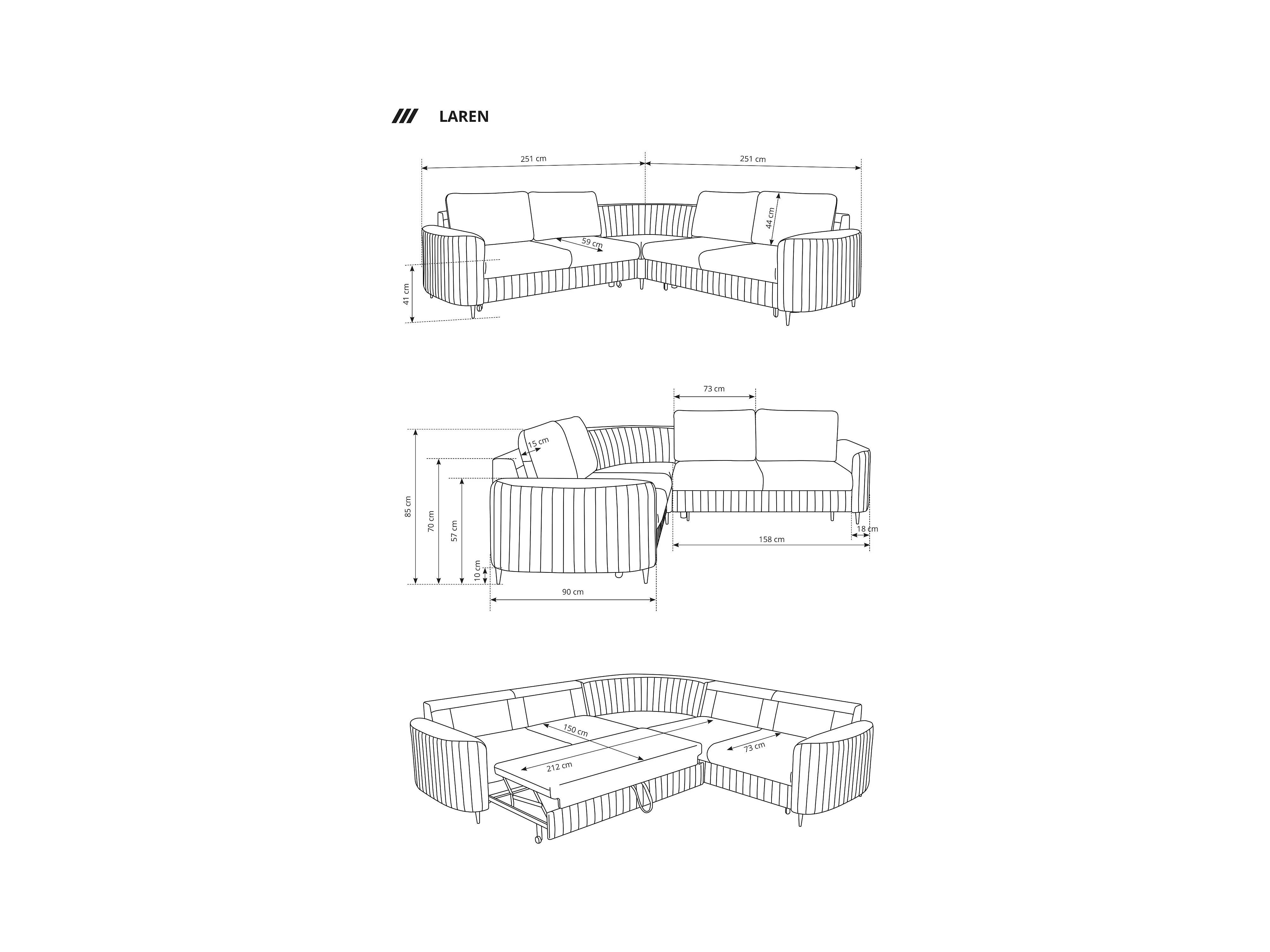 Ecksofa LAREN, modernes Schlafsofa mit Stauraum, Plastikfüße, linke Seite, BURGUND, 251x251x85 cm