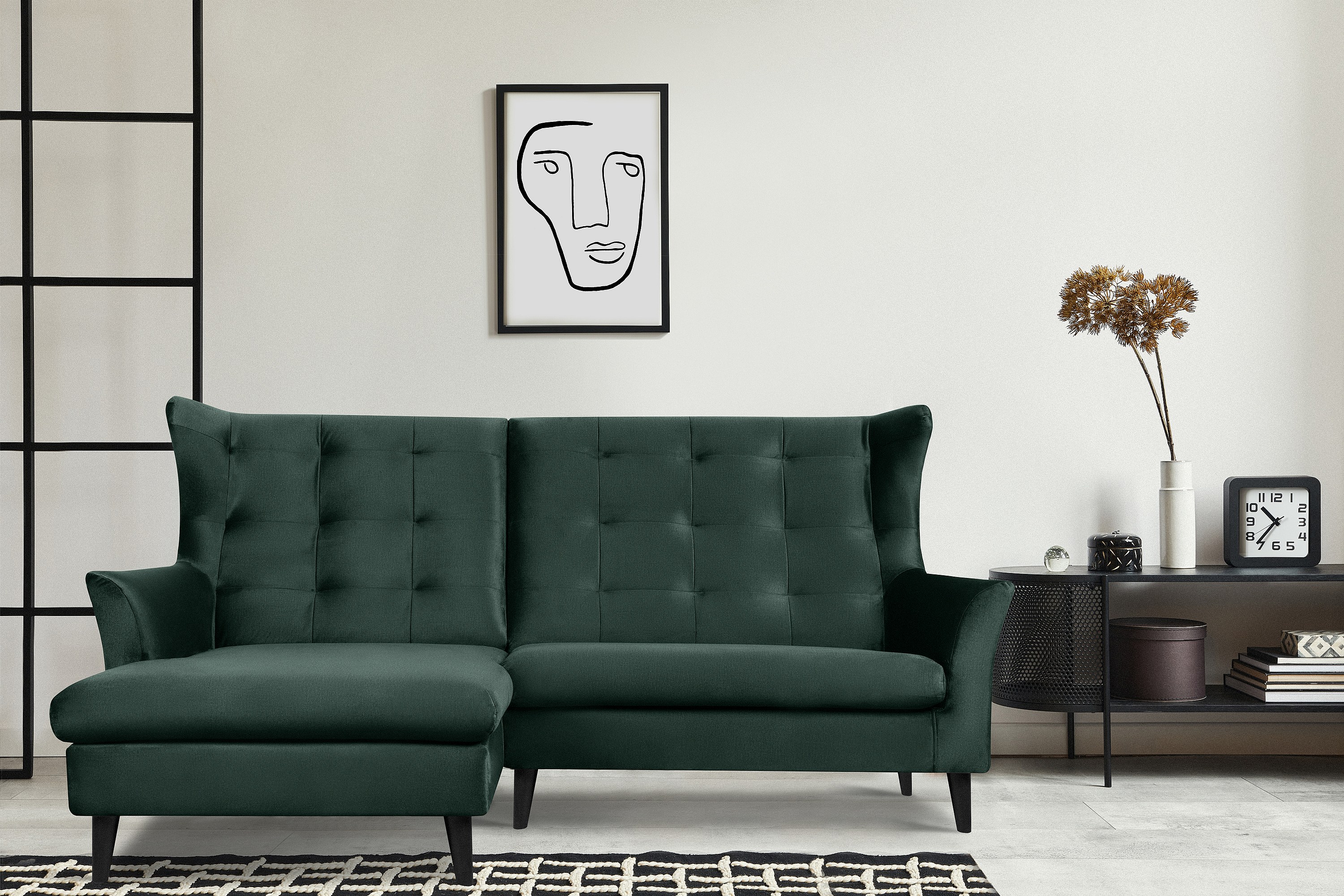 Ecksofa links gepolstert auf Beinen - dunkelgrün - SALIS