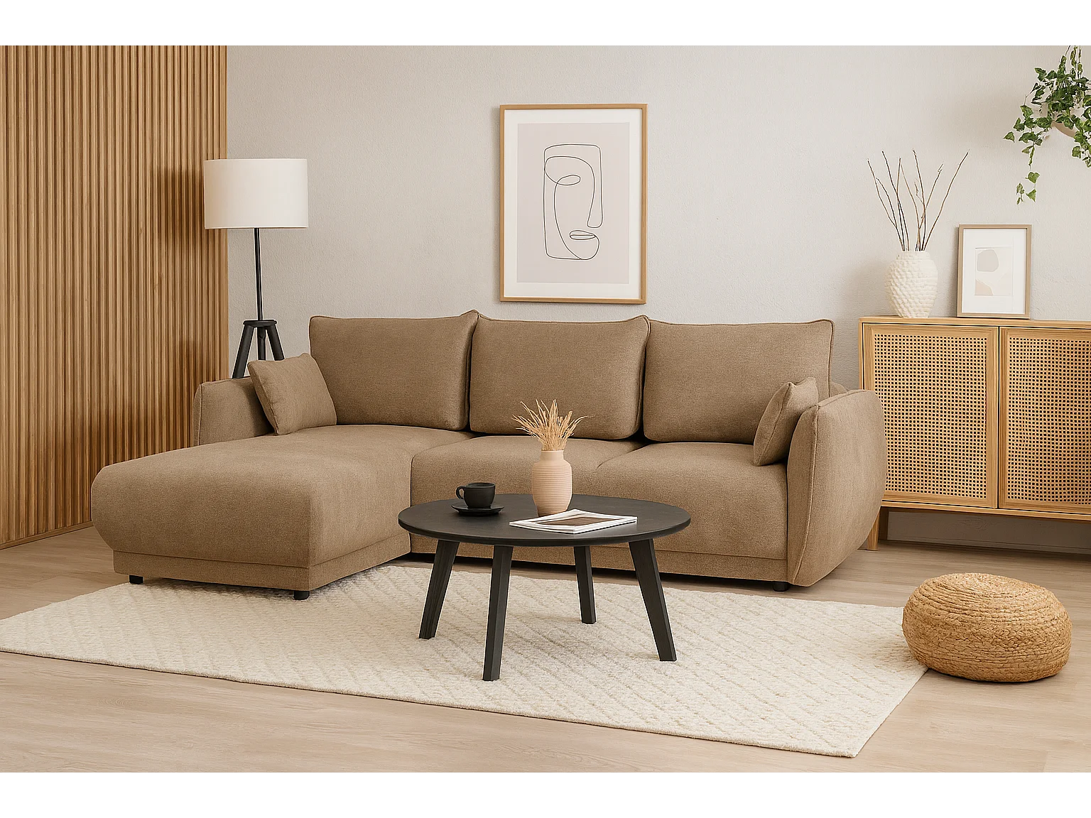 Ecksofa links Loren mit Schlaffunktion 250x150x90 cm – Stoff Raven 30 beige