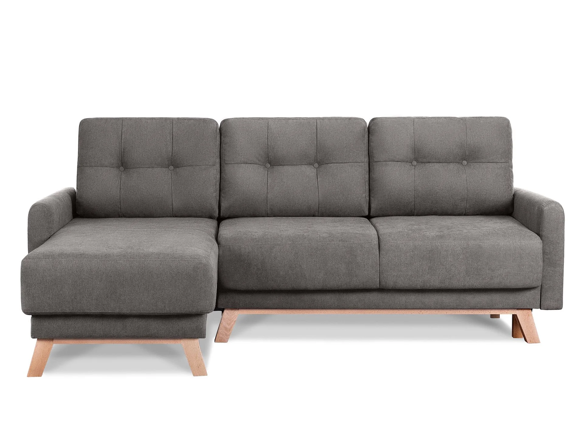 Ecksofa links mit ausziehbarer Schlaf- und Liegefläche - grau - VISNA