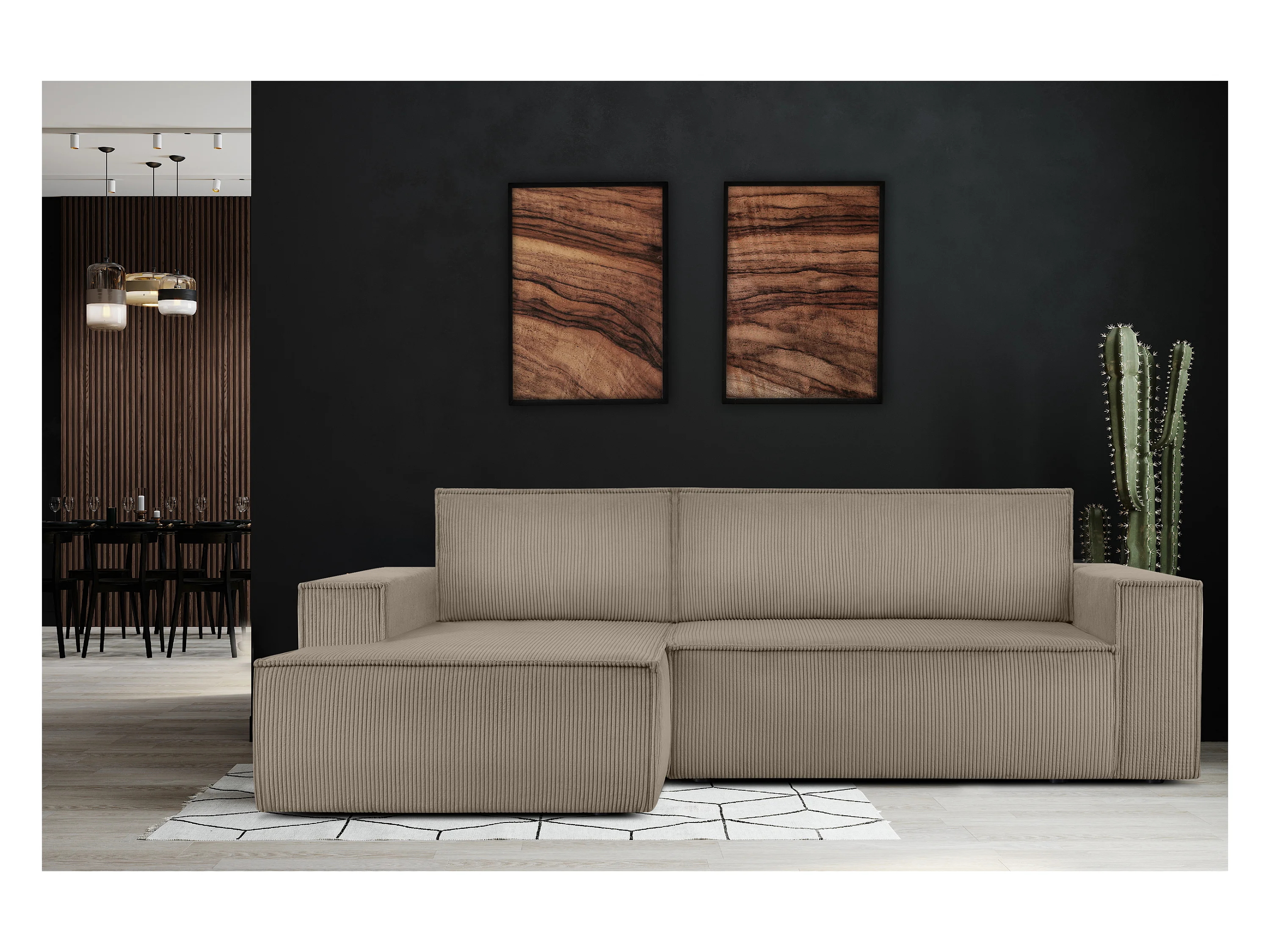 Ecksofa links - mit Schlaffunktion - in Pet Friendly Cord-Stoff - beige - NAPI