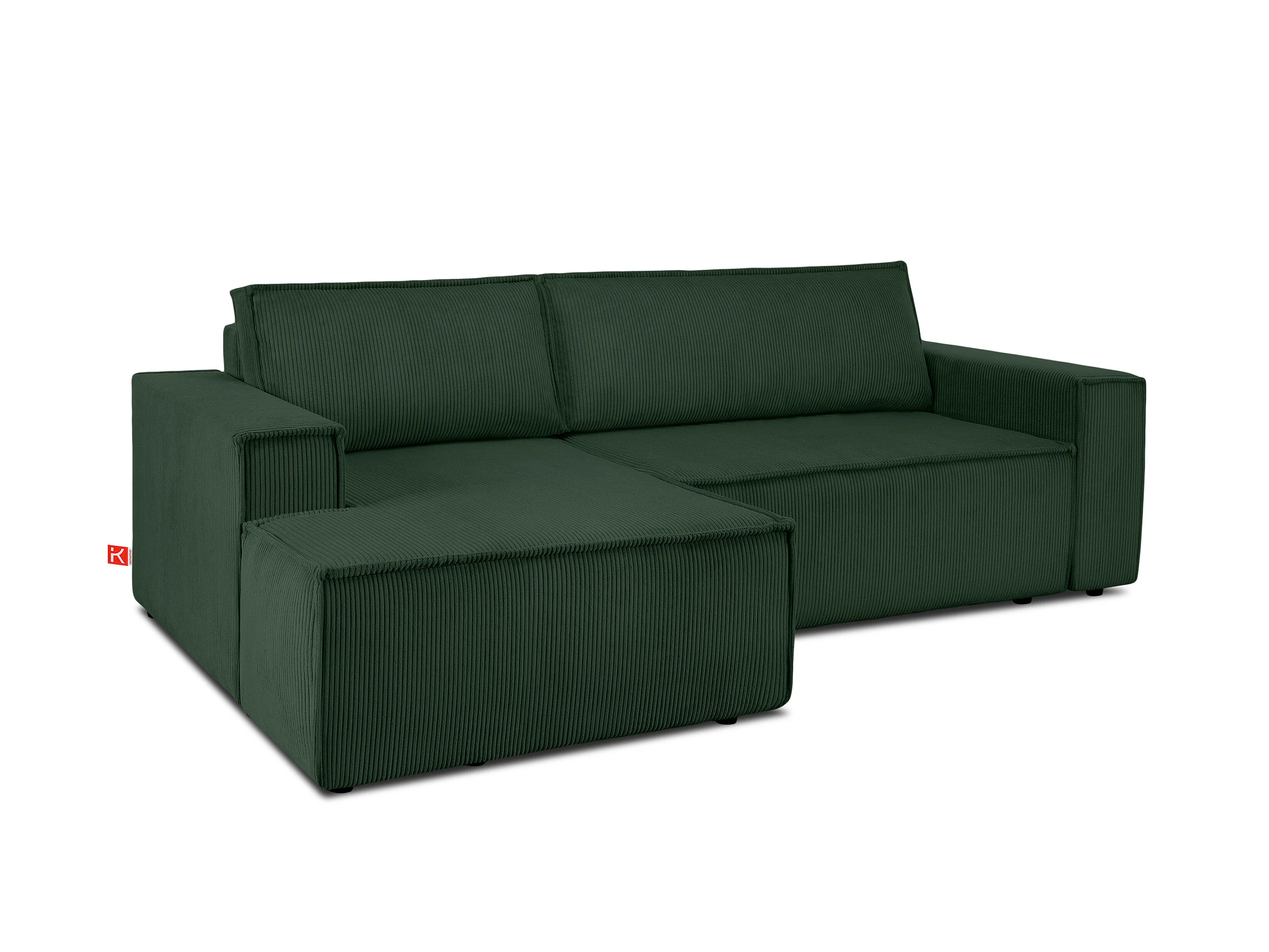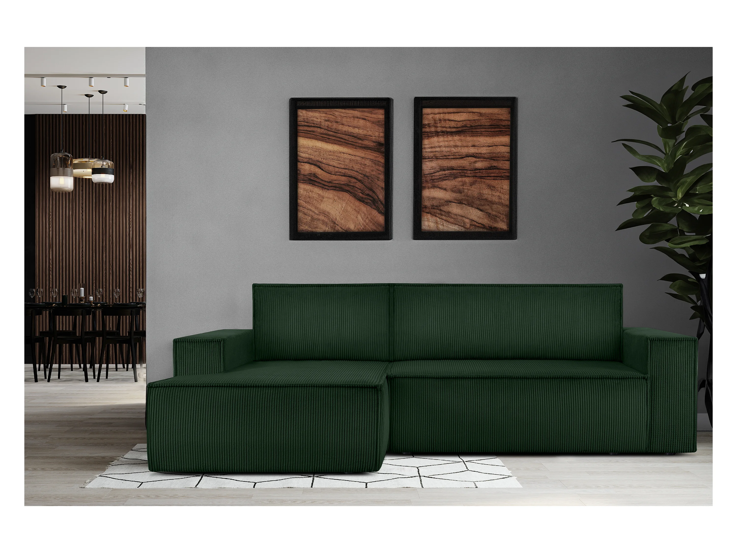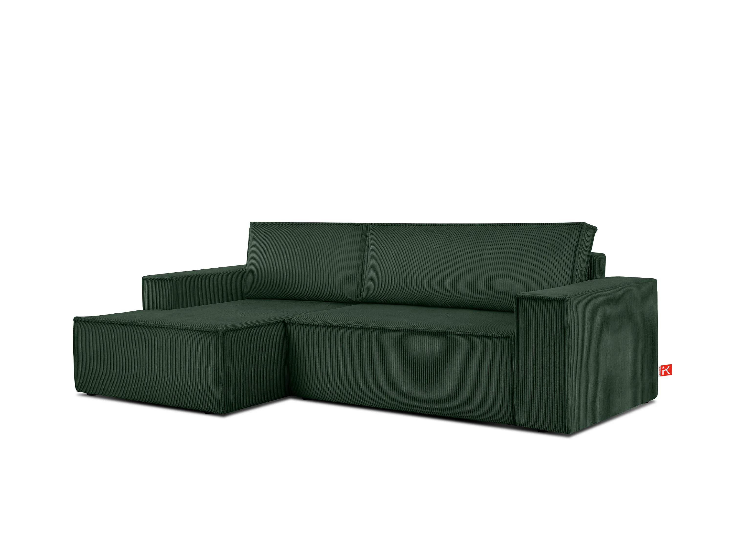 Ecksofa links - mit Schlaffunktion - in Pet Friendly Cord-Stoff - dunkelgrün - NAPI