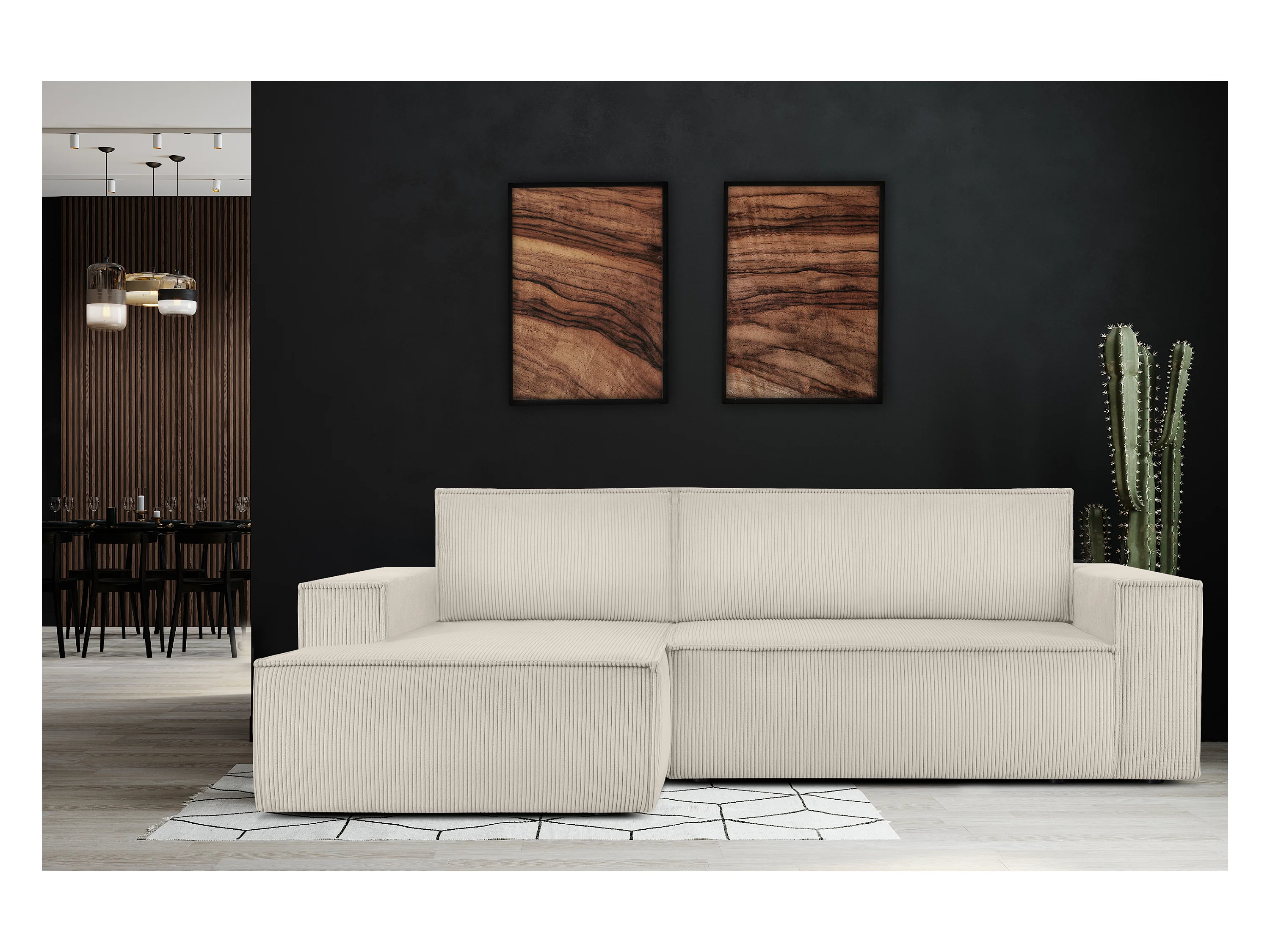 Ecksofa links - mit Schlaffunktion - in Pet Friendly Cord-Stoff - ecrufarben - NAPI