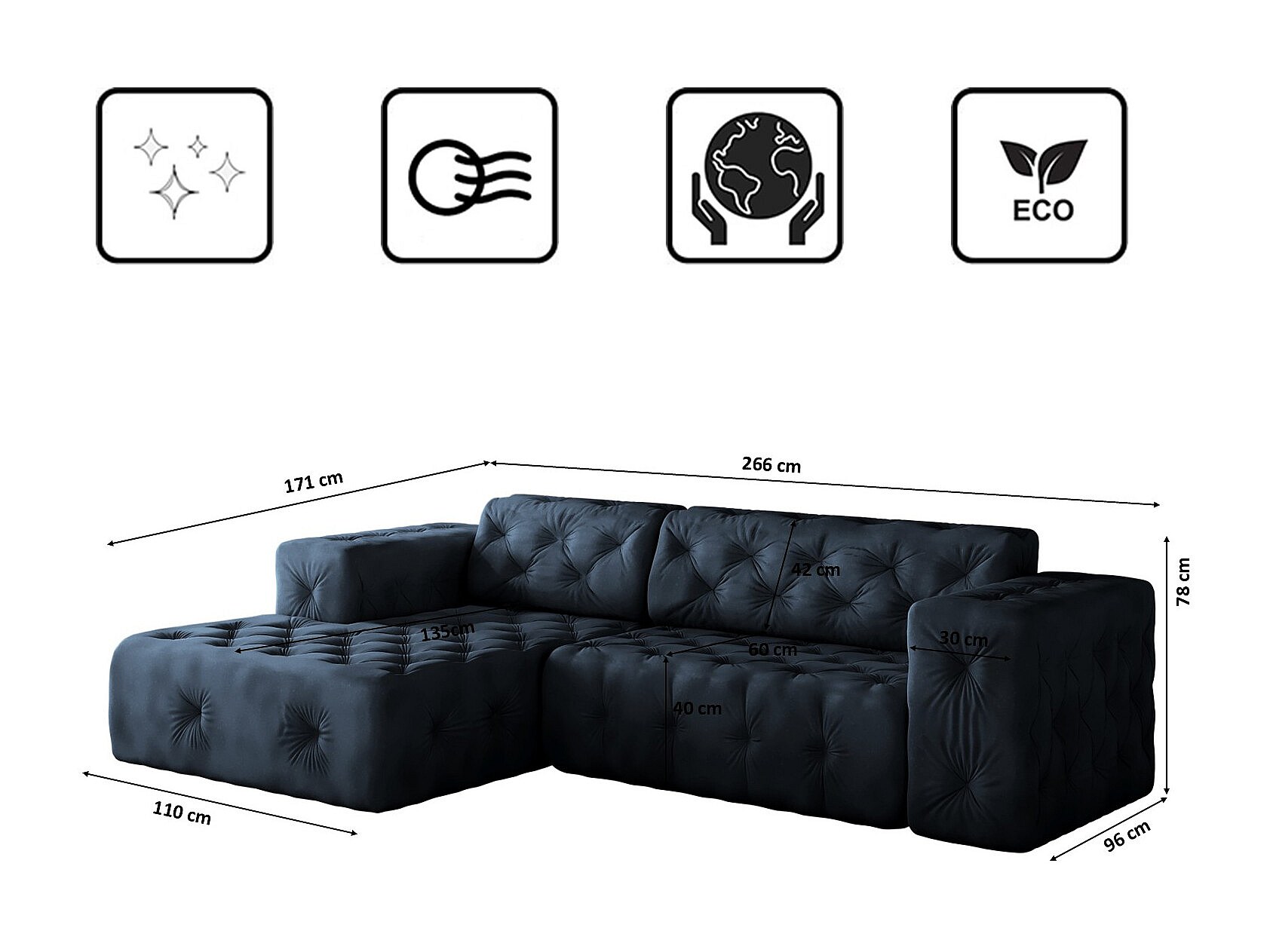 Ecksofa LUX L-Form, Stoff Whisper, Blau, Links