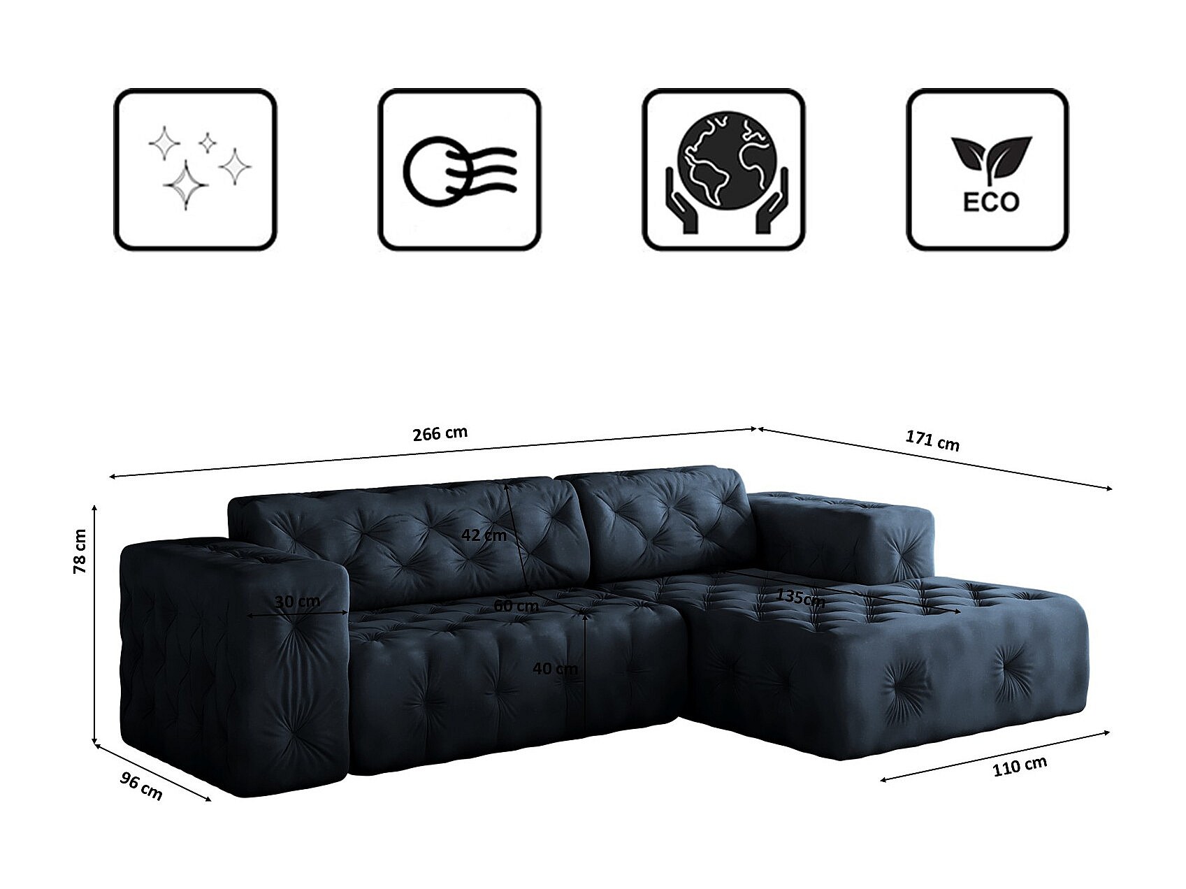 Ecksofa LUX L-Form, Stoff Whisper, Blau, Rechts