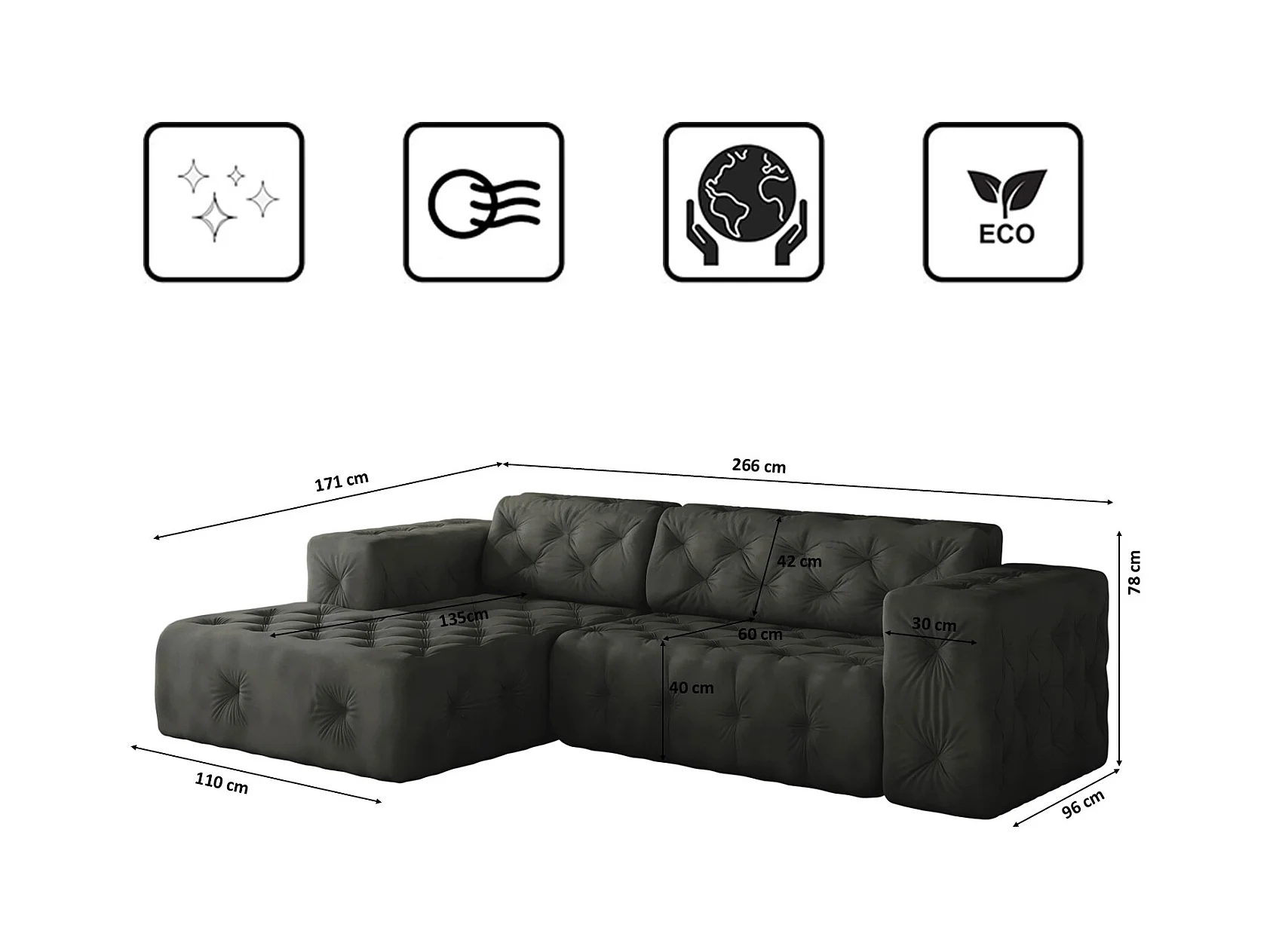Ecksofa LUX L-Form, Stoff Whisper, Graphit, Links