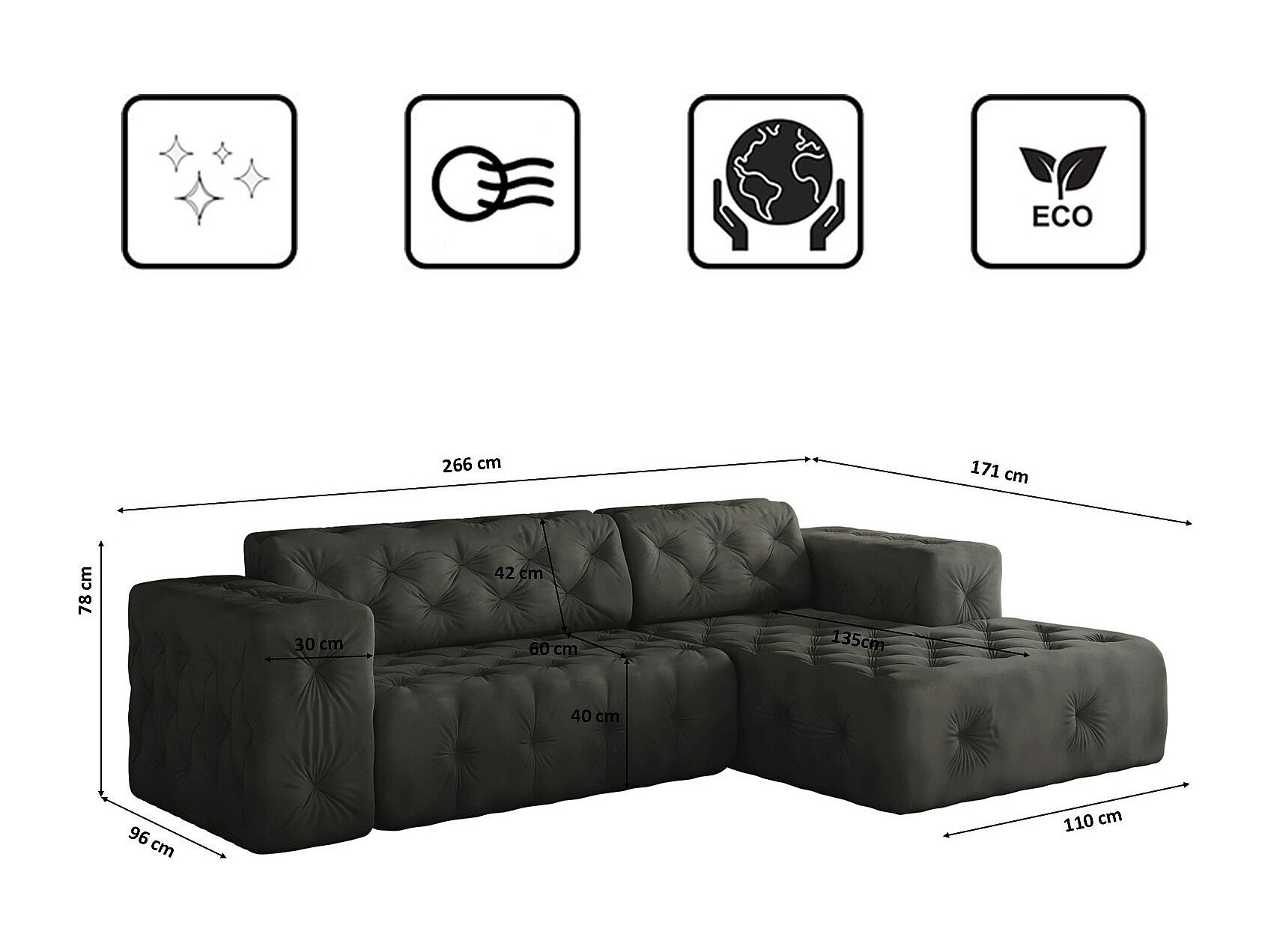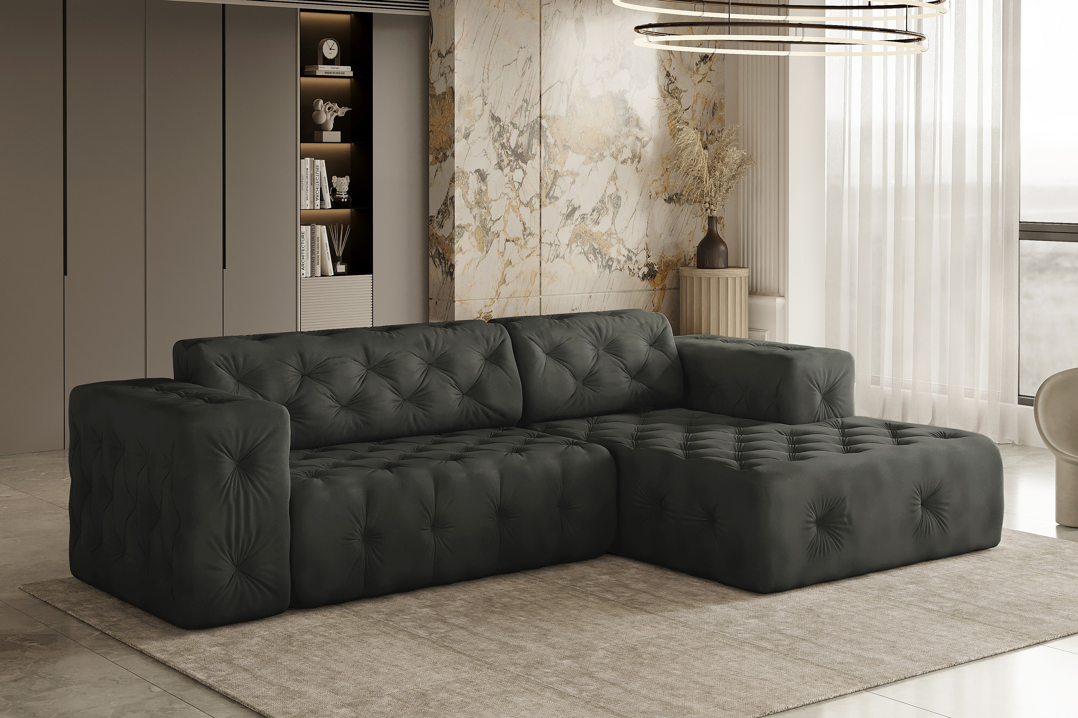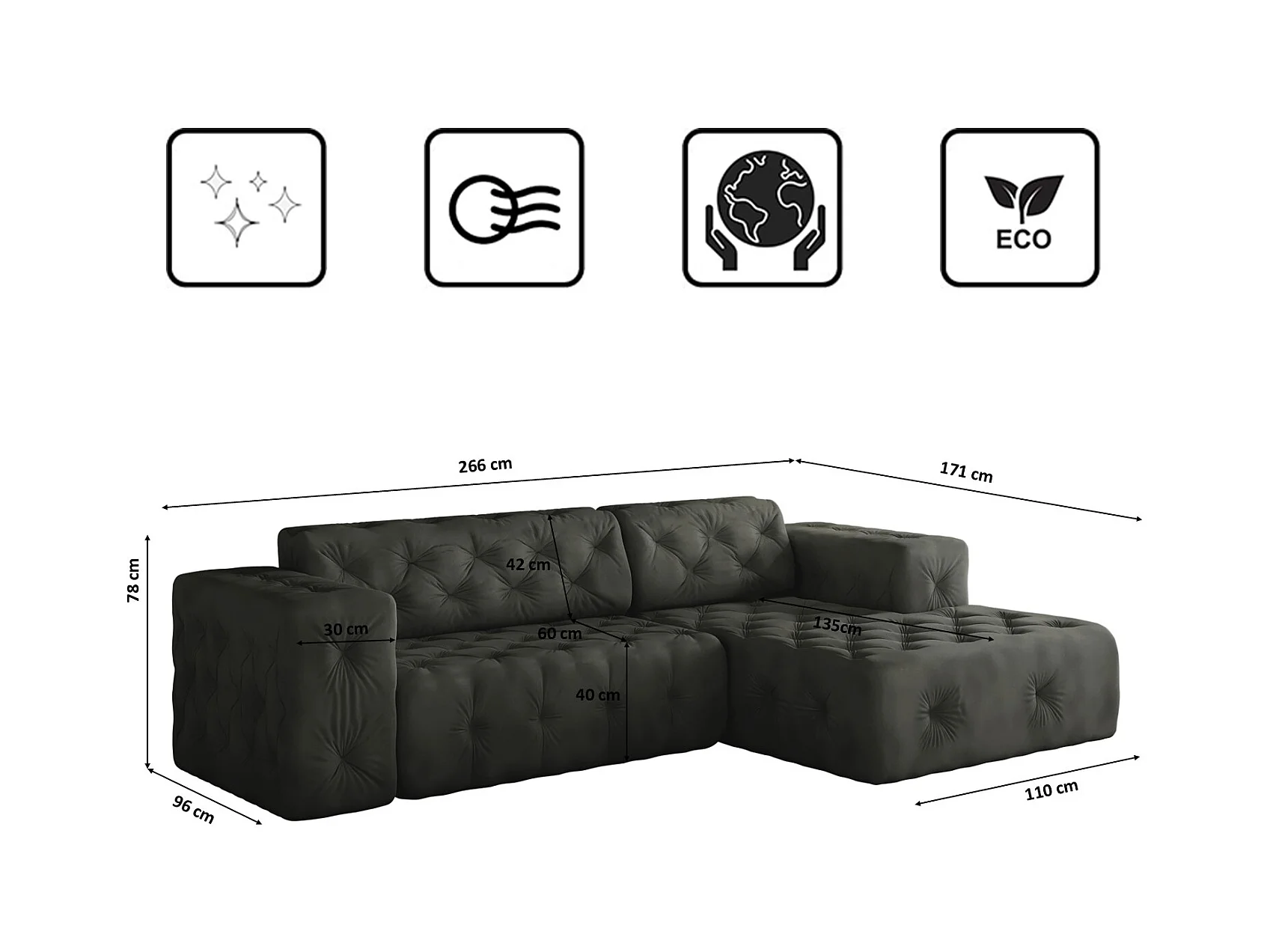 Ecksofa LUX L-Form, Stoff Whisper, Graphit, Rechts