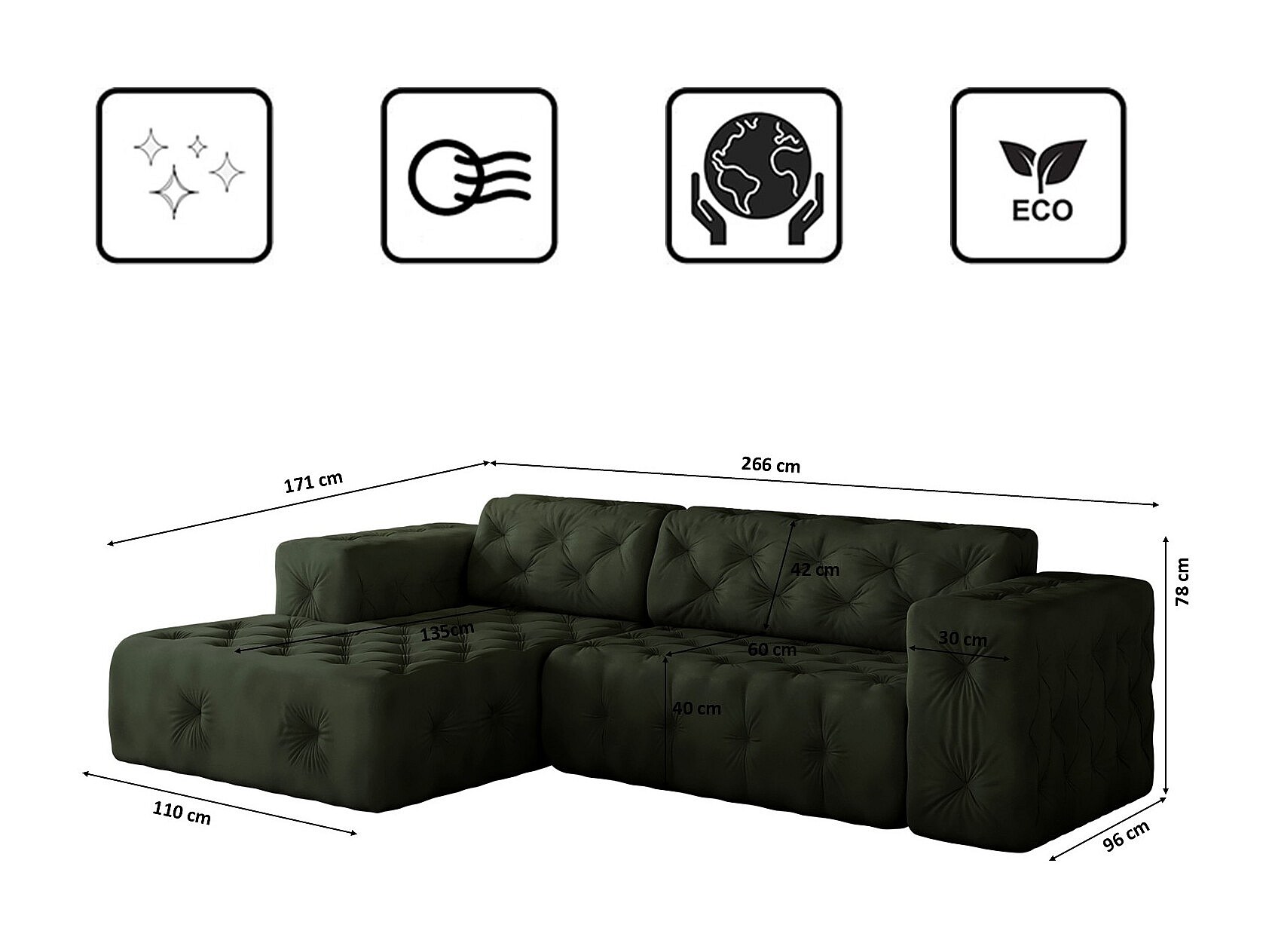 Ecksofa LUX L-Form, Stoff Whisper, Grün, Links