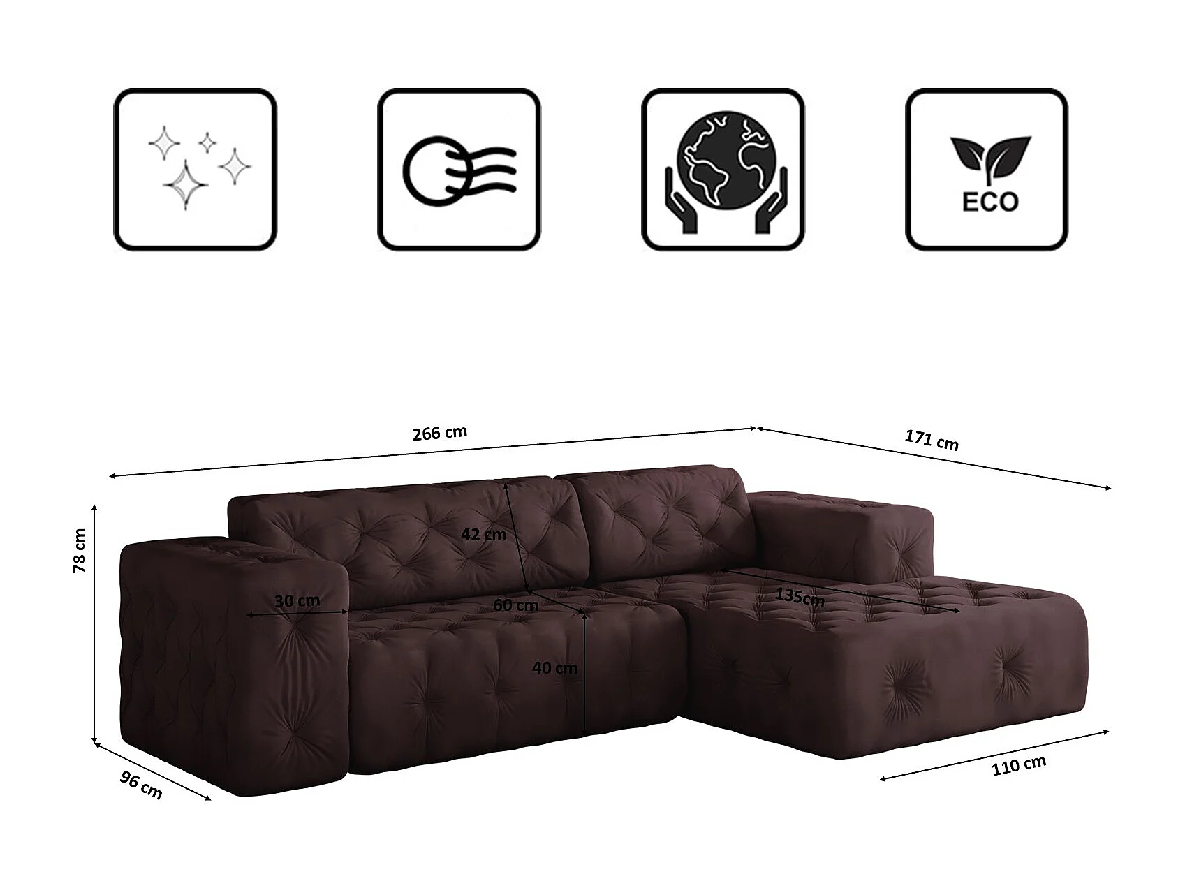 Ecksofa LUX L-Form, Stoff Whisper, Rotwein, Rechts