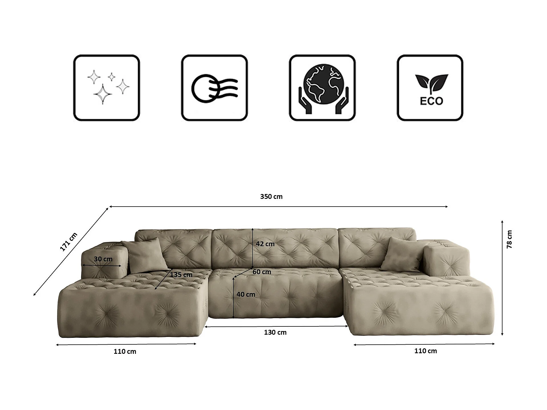 Ecksofa LUX U-Form, Stoff Whisper, Creme
