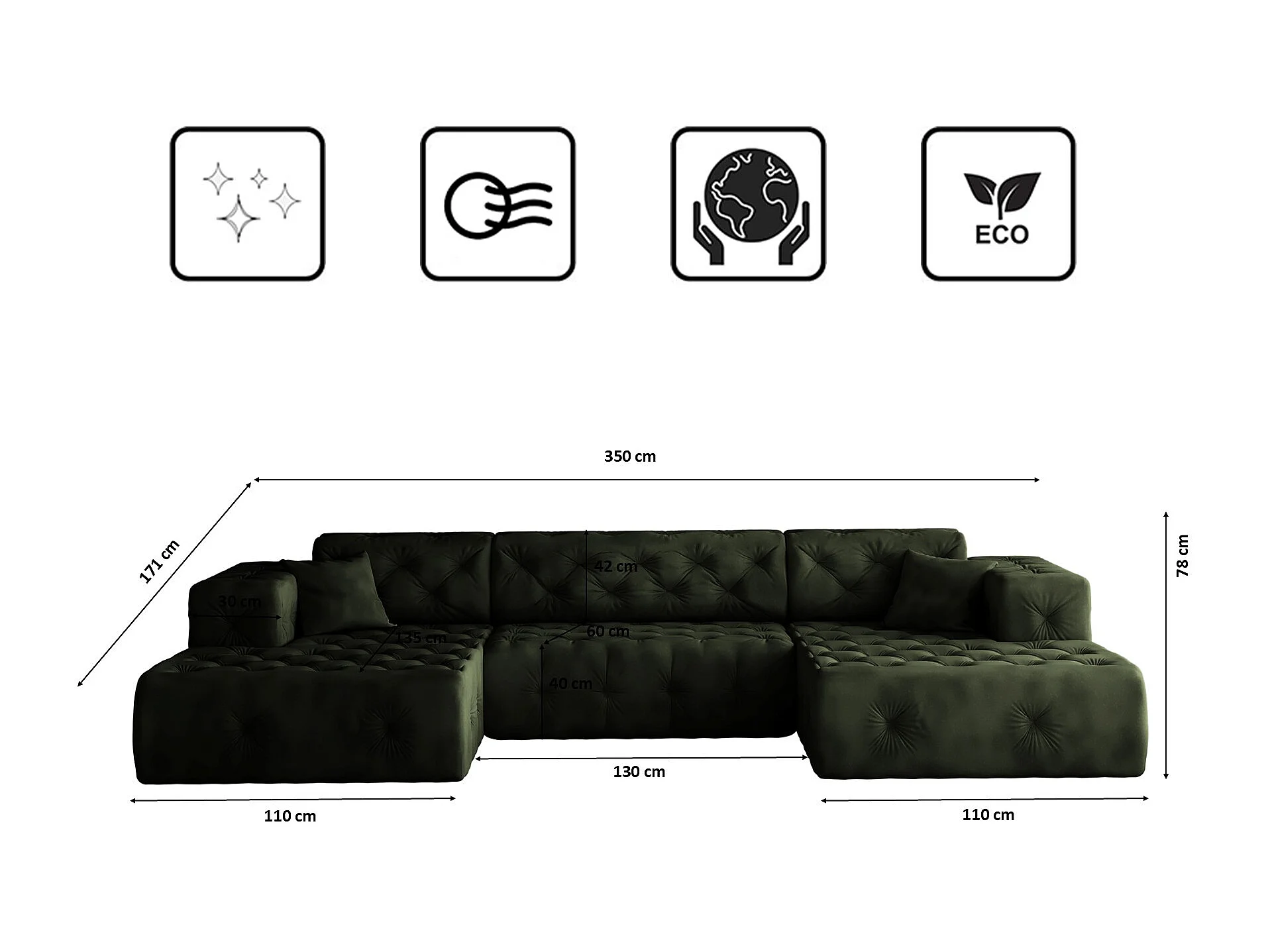 Ecksofa LUX U-Form, Stoff Whisper, Grün