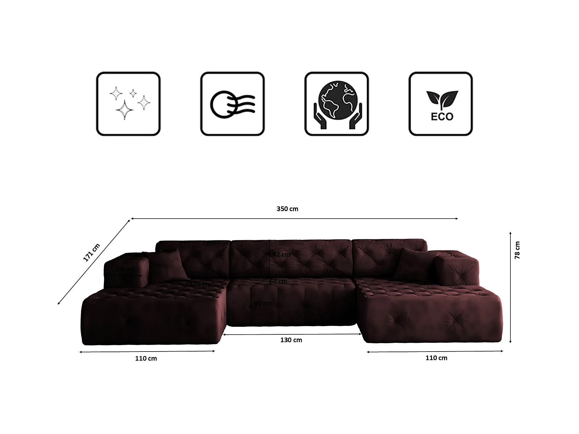 Ecksofa LUX U-Form, Stoff Whisper, Rotwein