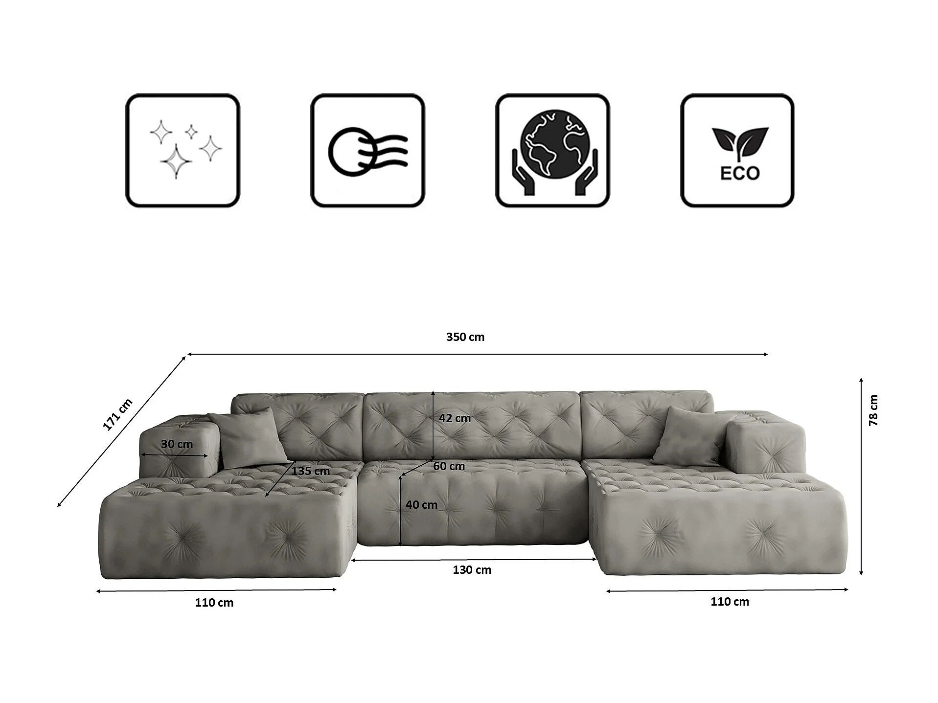 Ecksofa LUX U-Form, Stoff Whisper, Silber