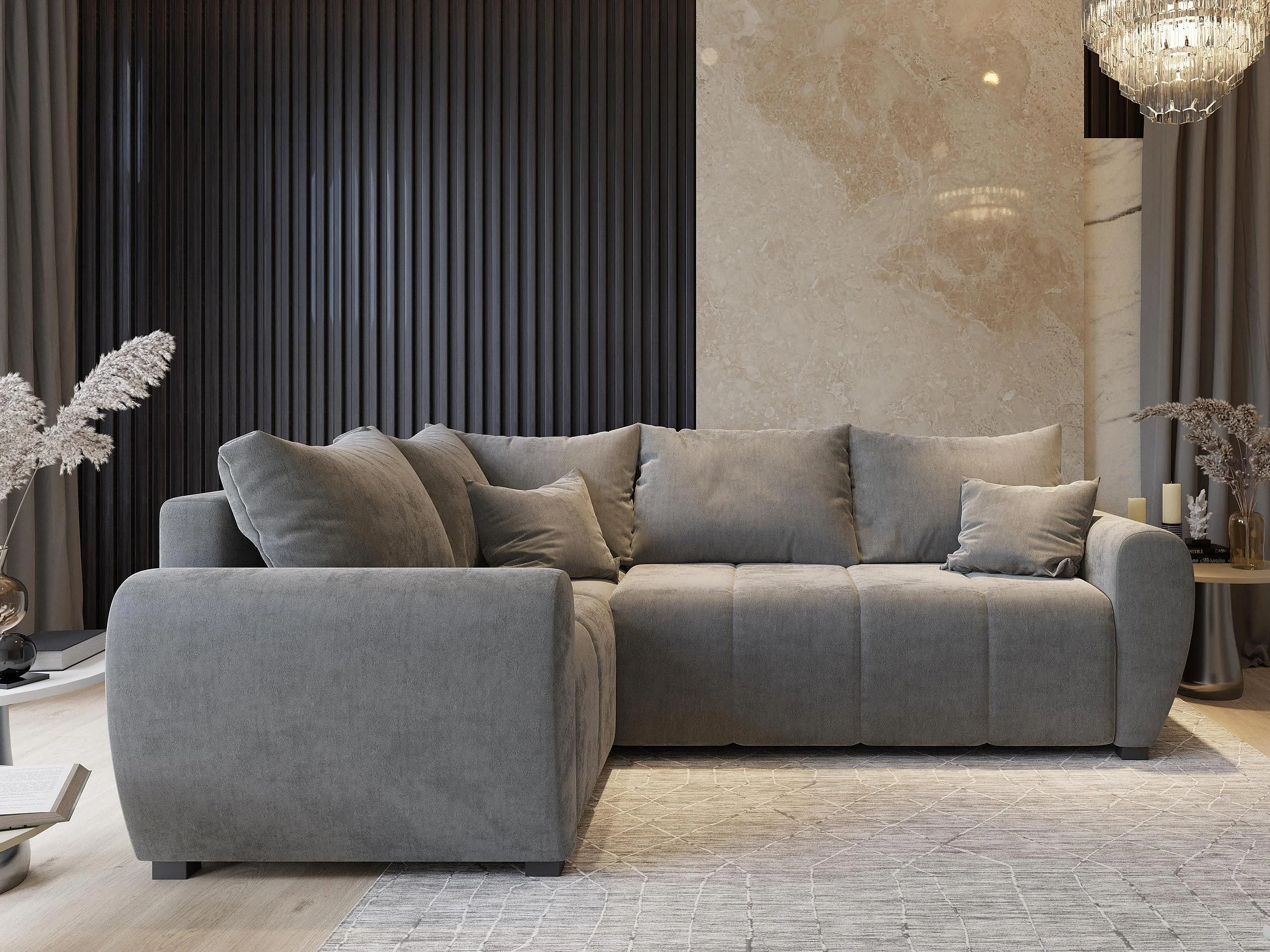ECKSOFA MADISON L L-S Grau Dünner Stoff mit Schlaffunktion