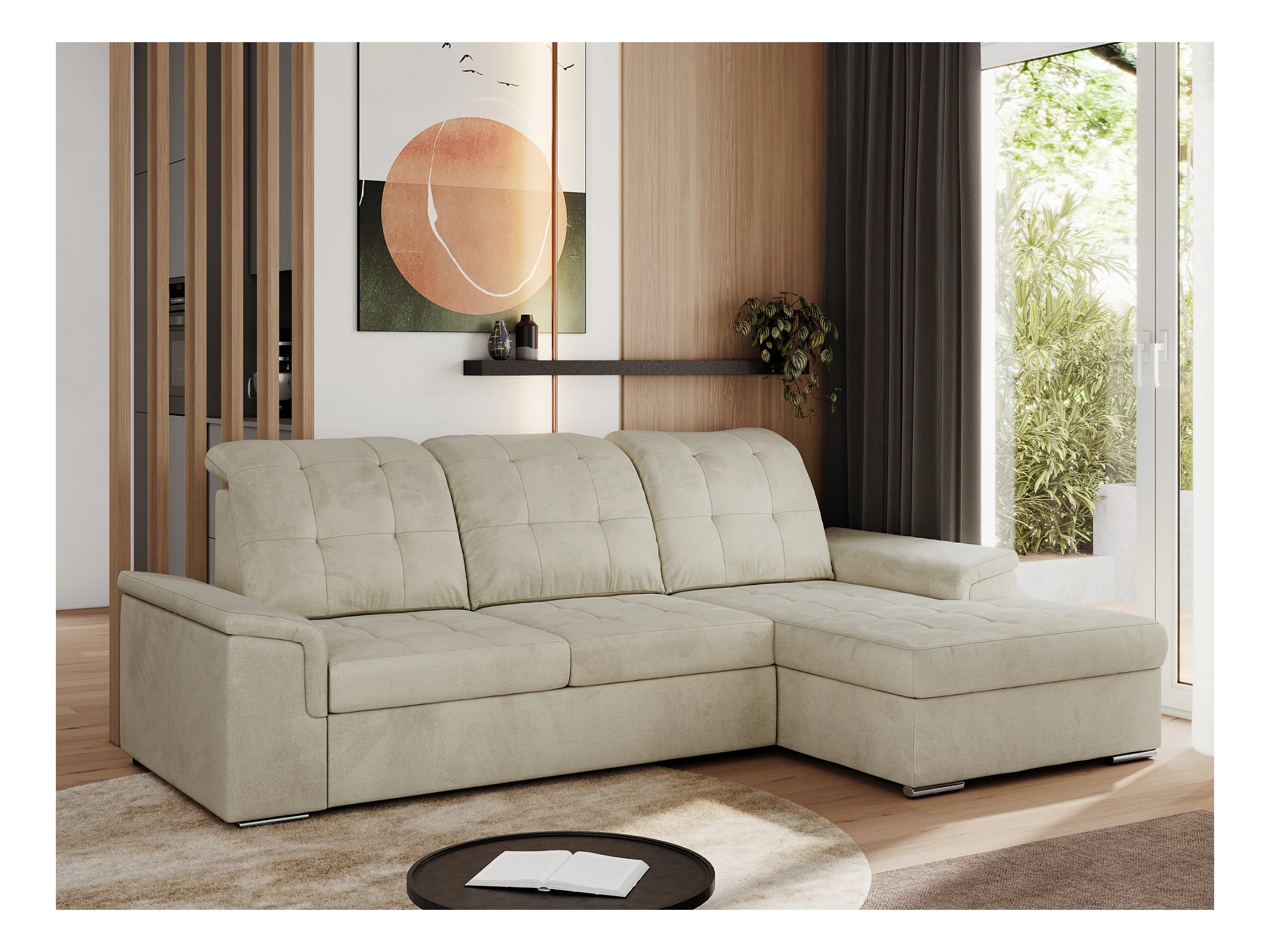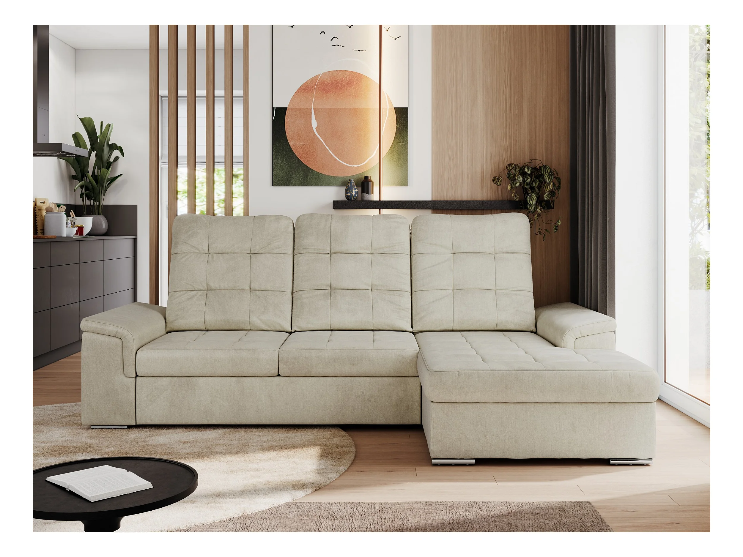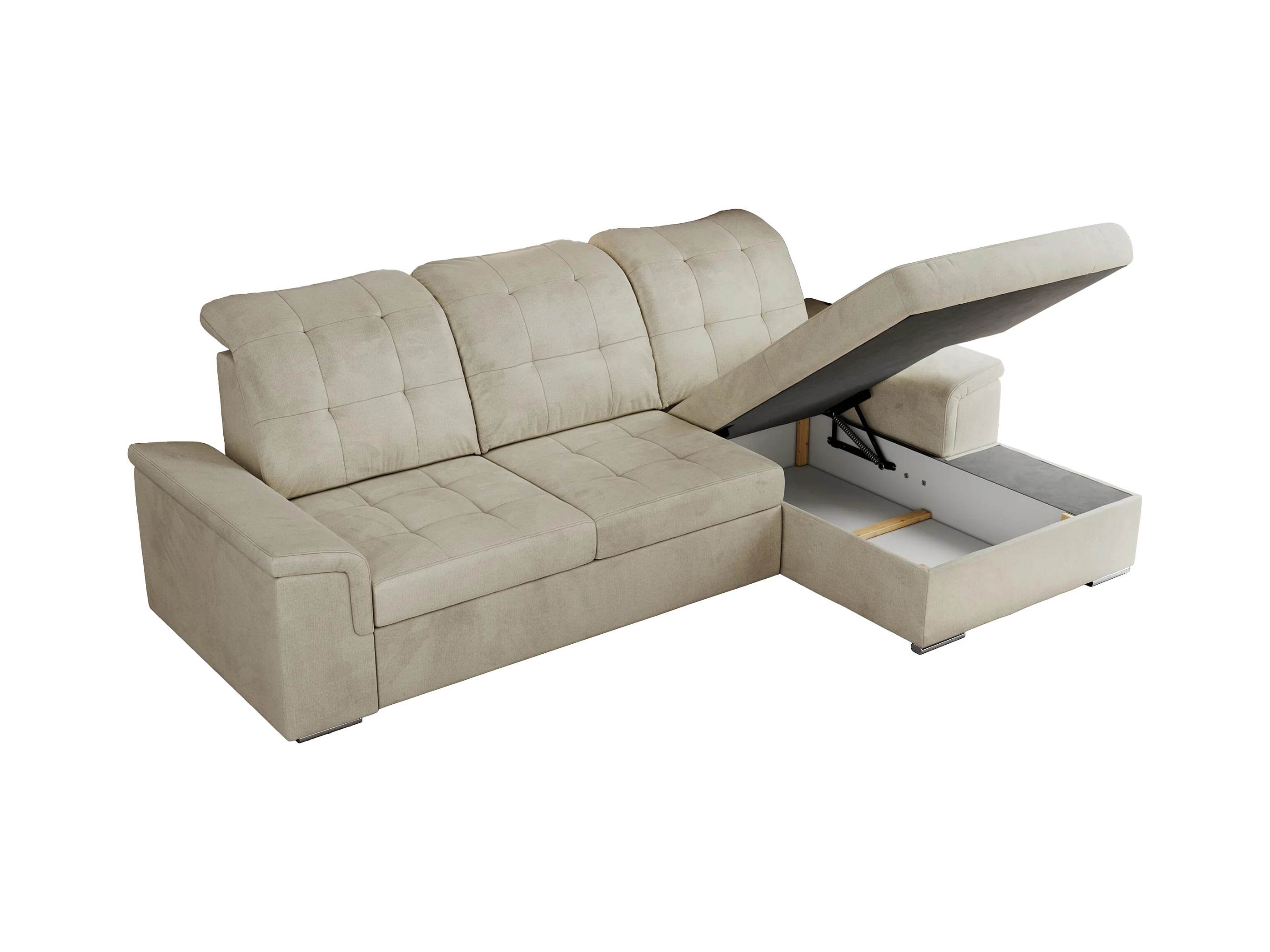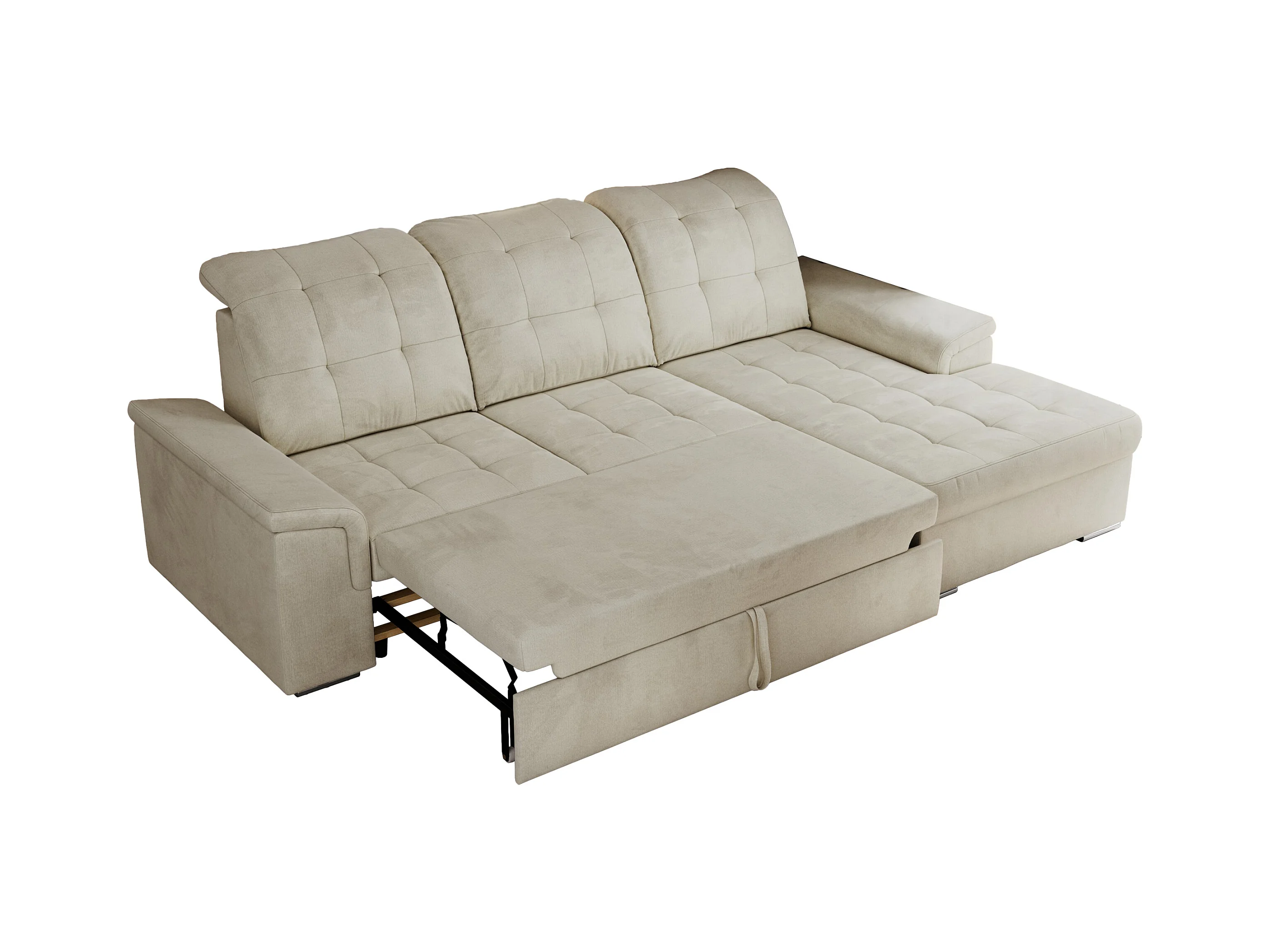 Ecksofa MADRITO - mit verstellbarer Rückenlehne, Armlehnen, gestepptem Sitz und Rückenlehne, Schlaffunktion - Beige Velvet - Ecke Rechts