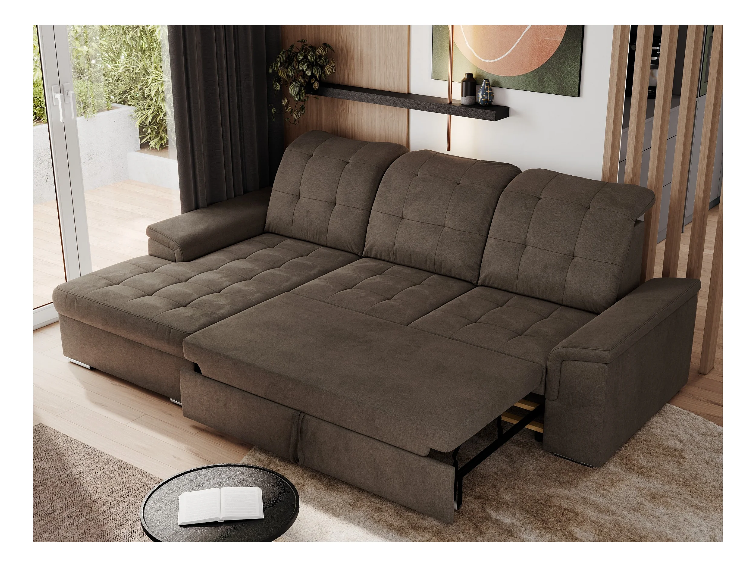 Ecksofa MADRITO - mit verstellbarer Rückenlehne, Armlehnen, gestepptem Sitz und Rückenlehne, Schlaffunktion - Braun Velvet - Ecke Links