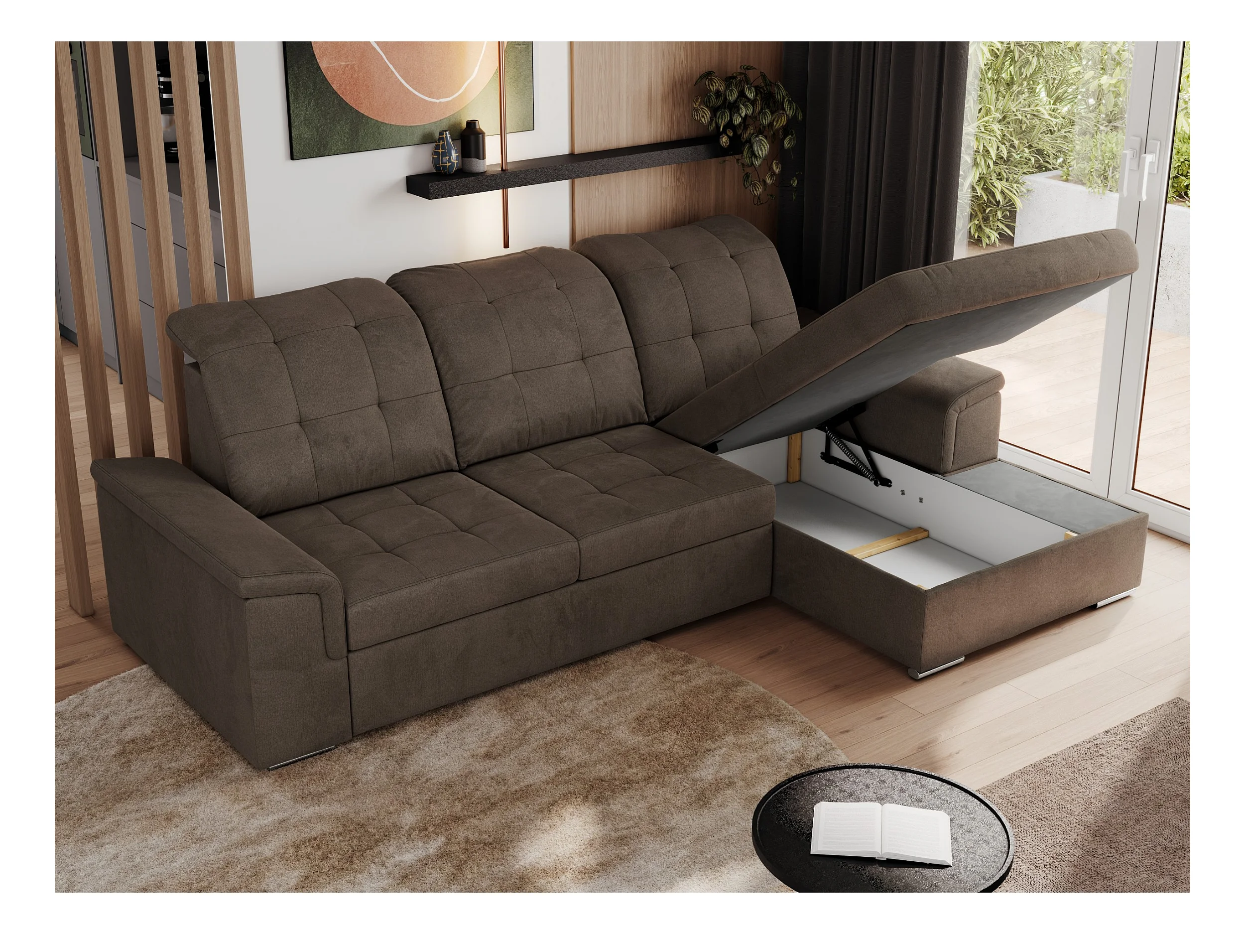 Ecksofa MADRITO - mit verstellbarer Rückenlehne, Armlehnen, gestepptem Sitz und Rückenlehne, Schlaffunktion - Braun Velvet - Ecke Rechts
