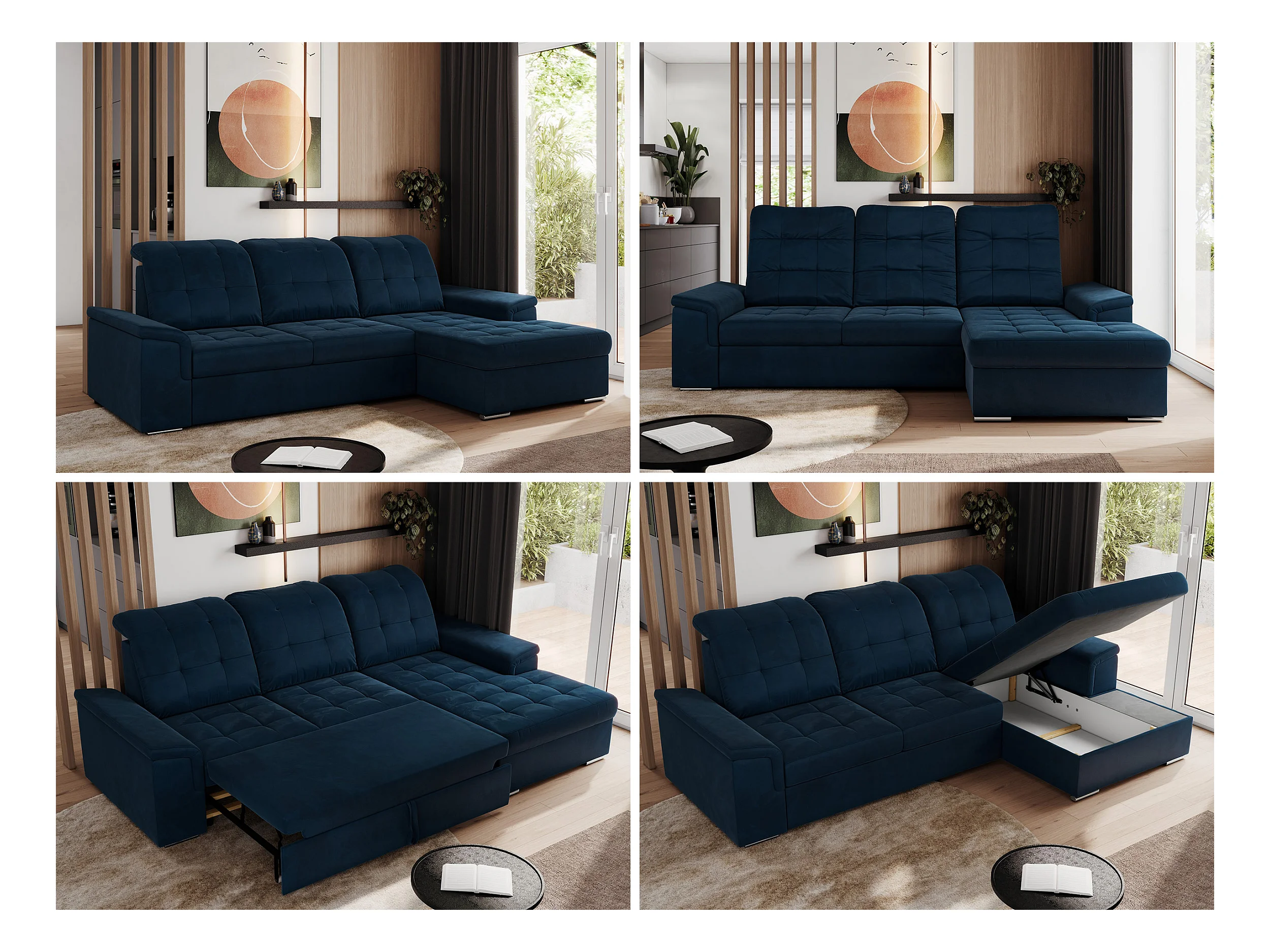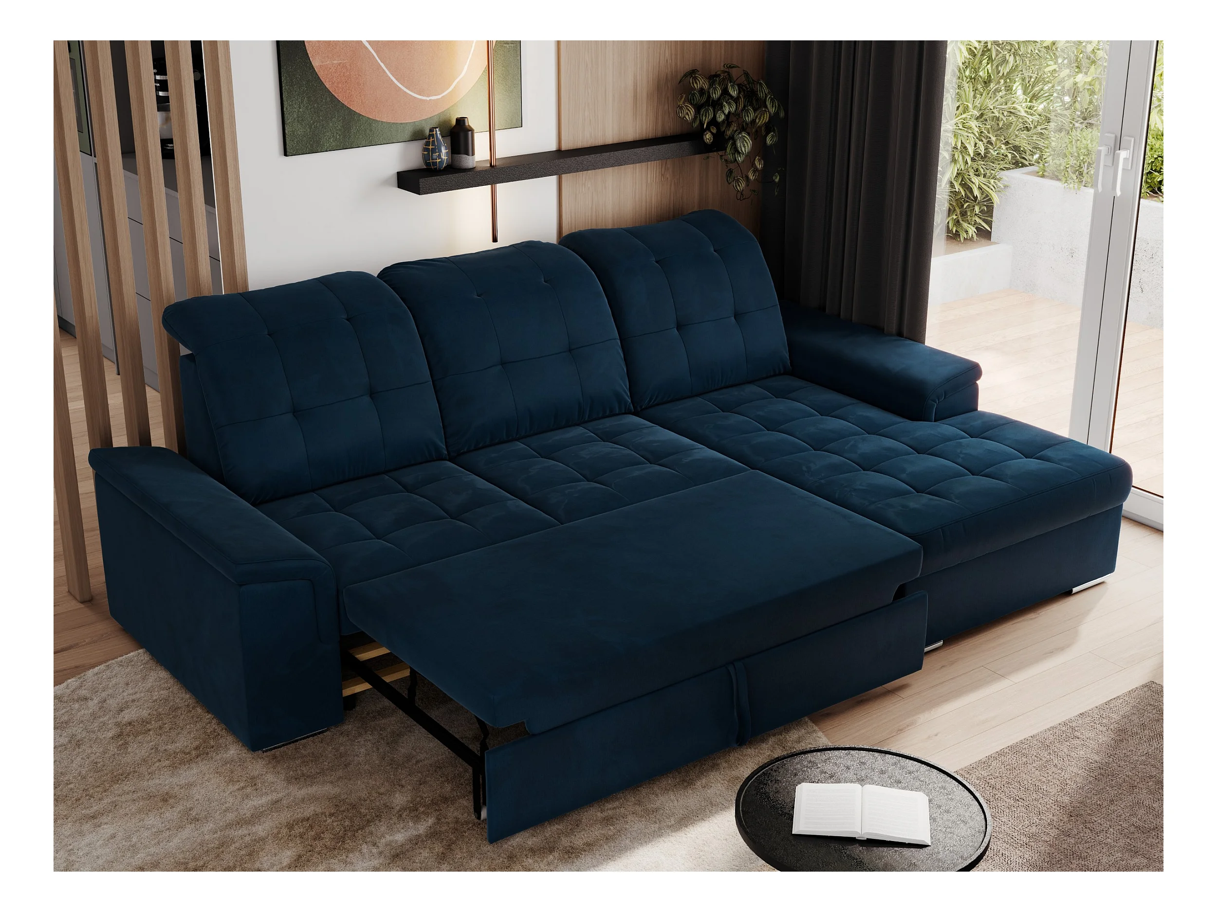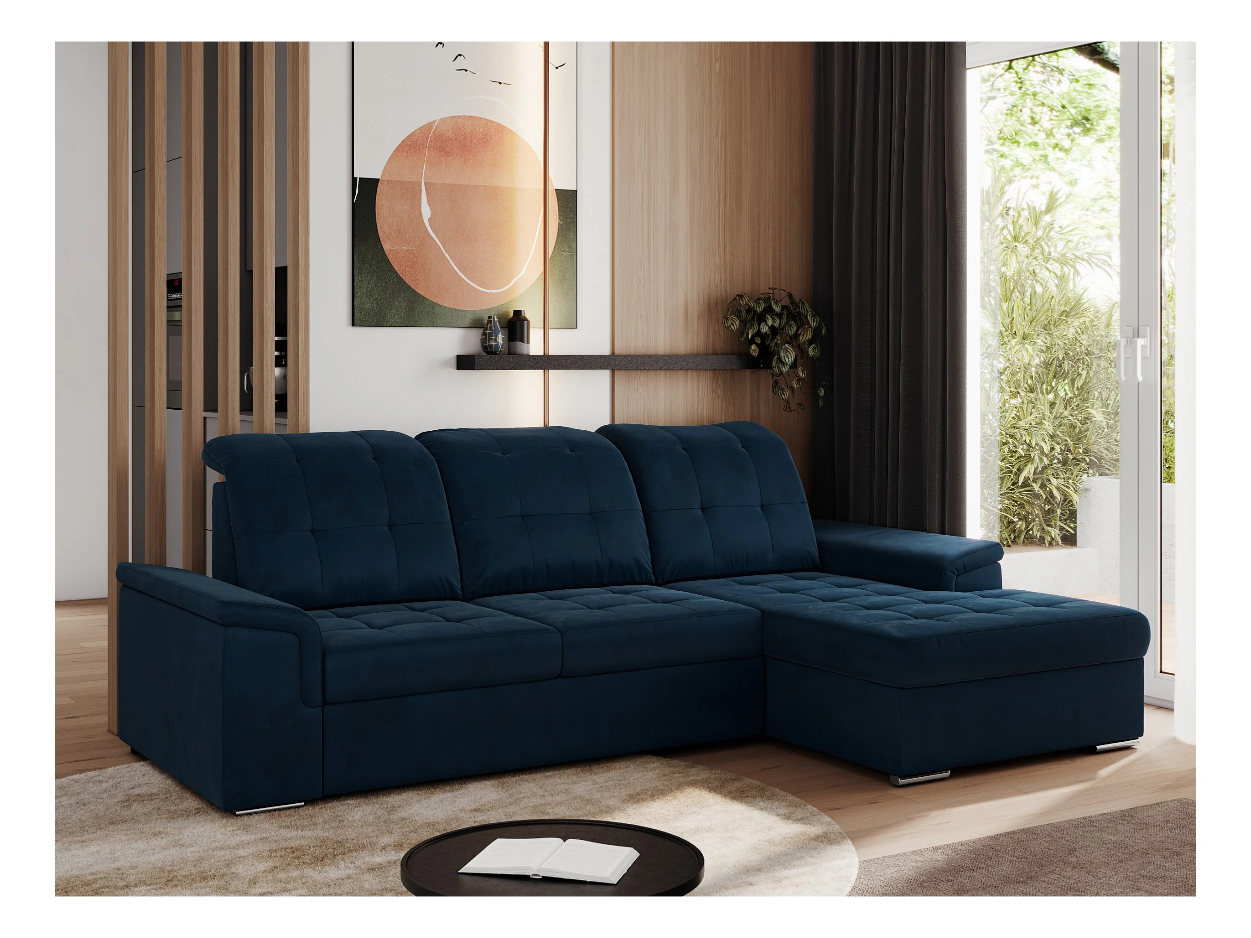 Ecksofa MADRITO - mit verstellbarer Rückenlehne, Armlehnen, gestepptem Sitz und Rückenlehne, Schlaffunktion - Dunkelblau Velvet - Ecke Rechts