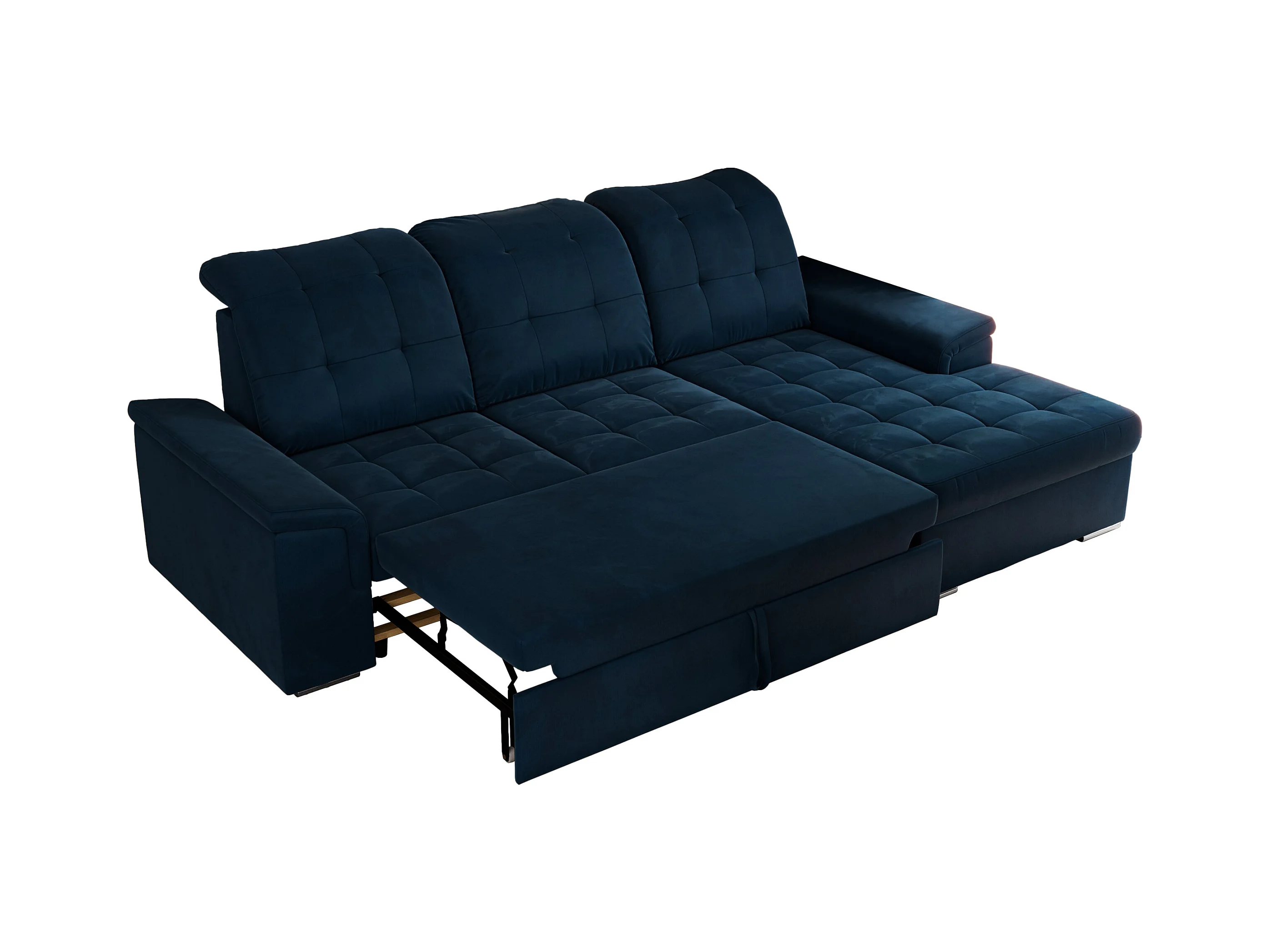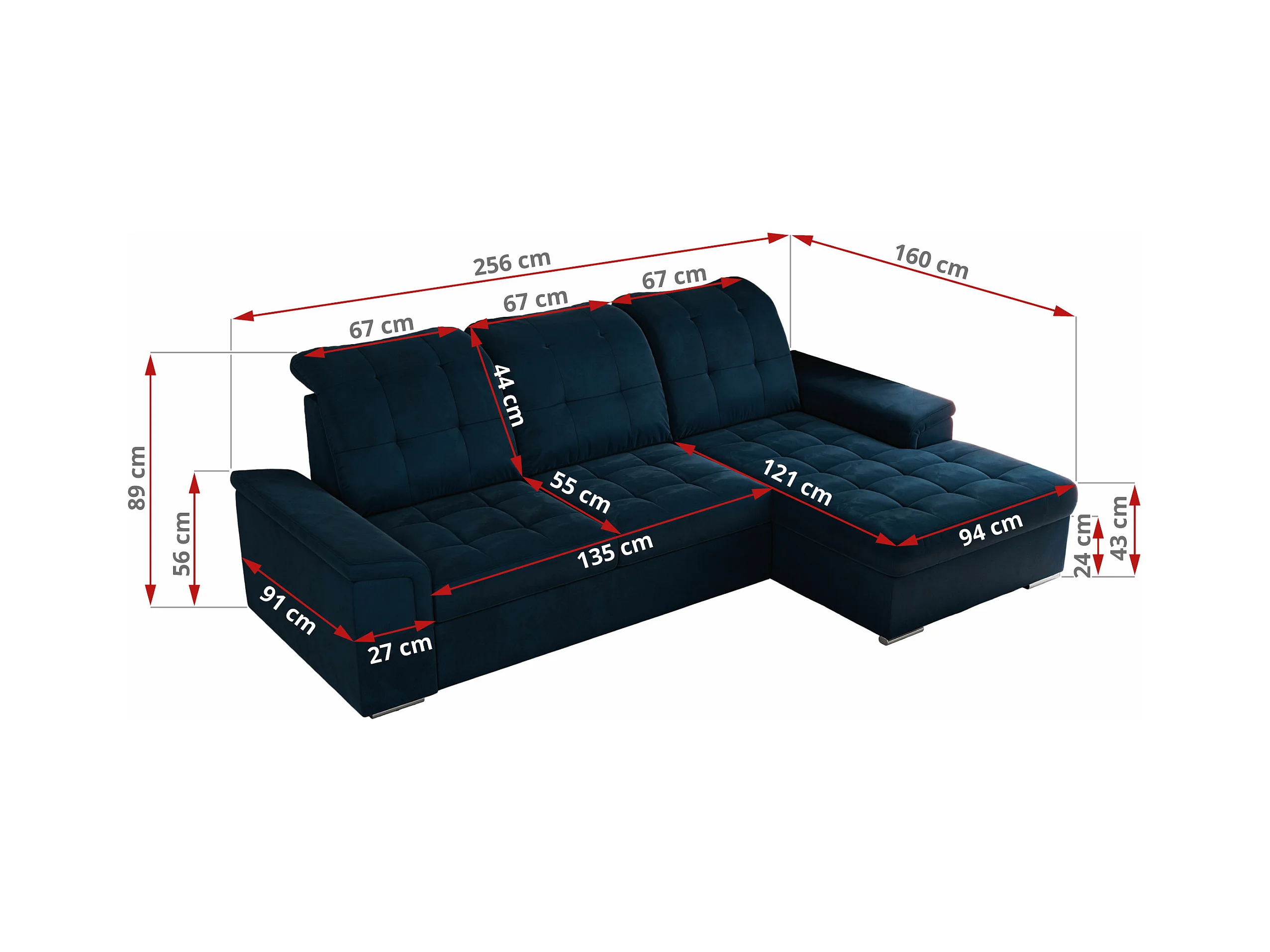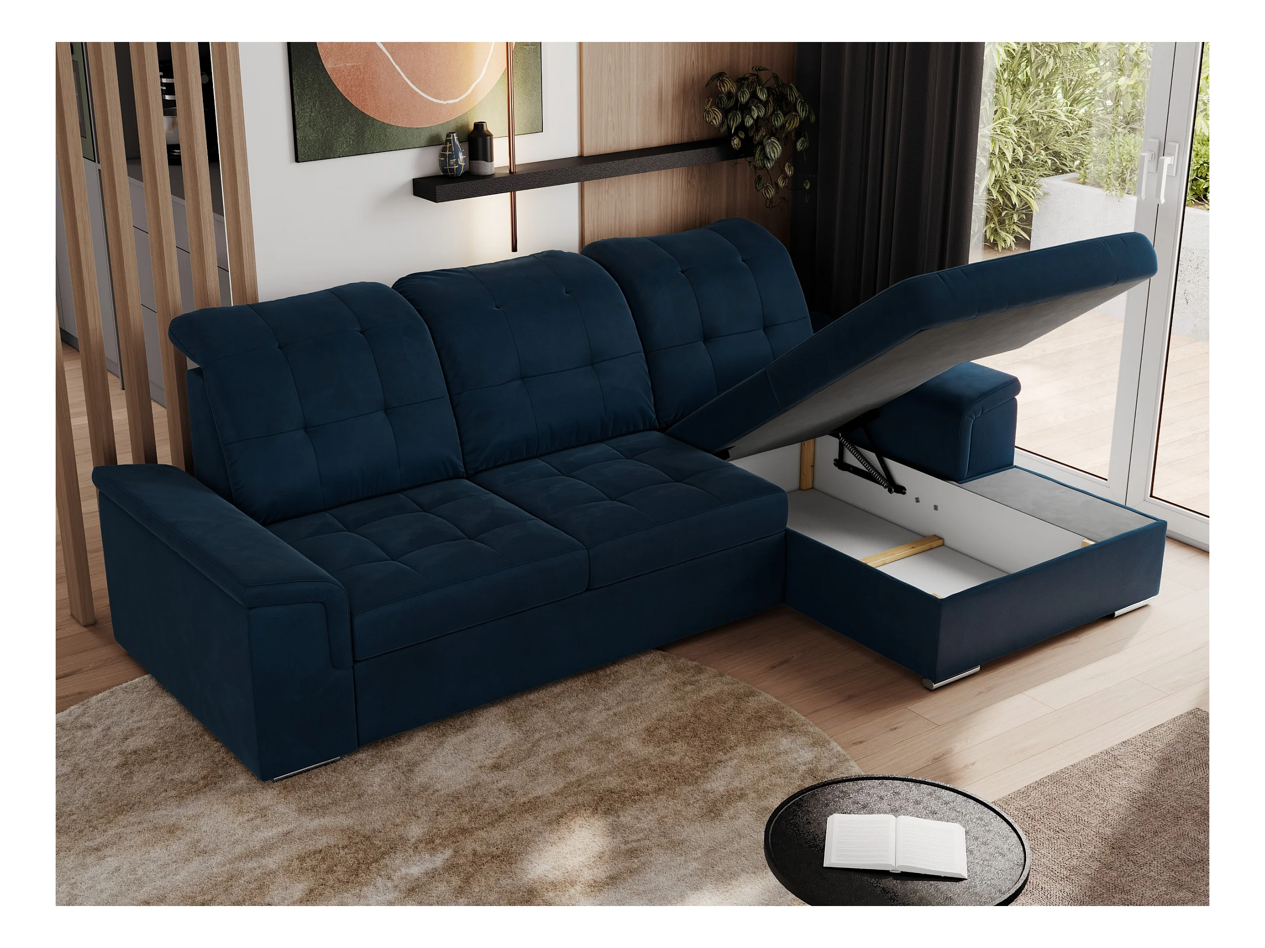 Ecksofa MADRITO - mit verstellbarer Rückenlehne, Armlehnen, gestepptem Sitz und Rückenlehne, Schlaffunktion - Dunkelblau Velvet - Ecke Rechts