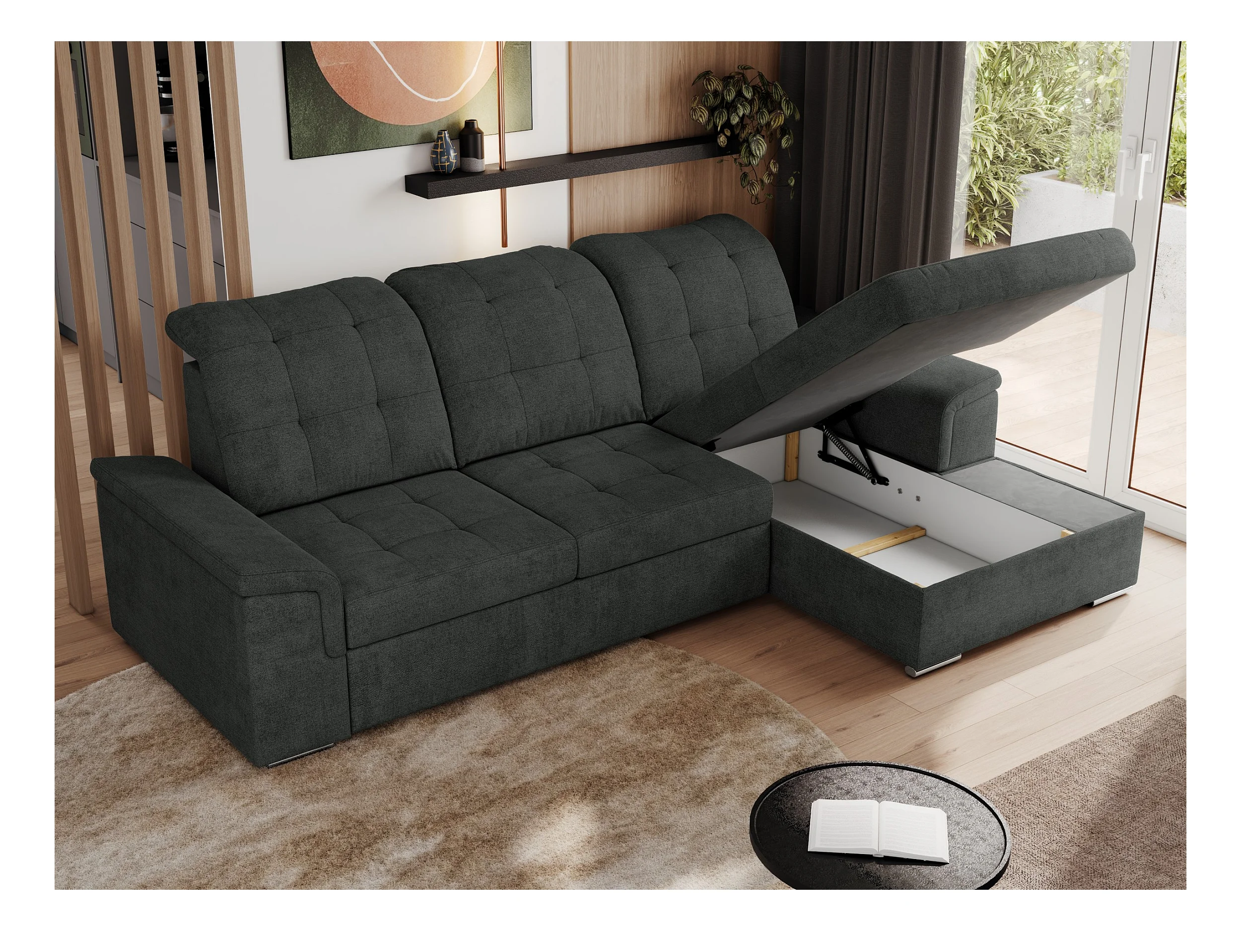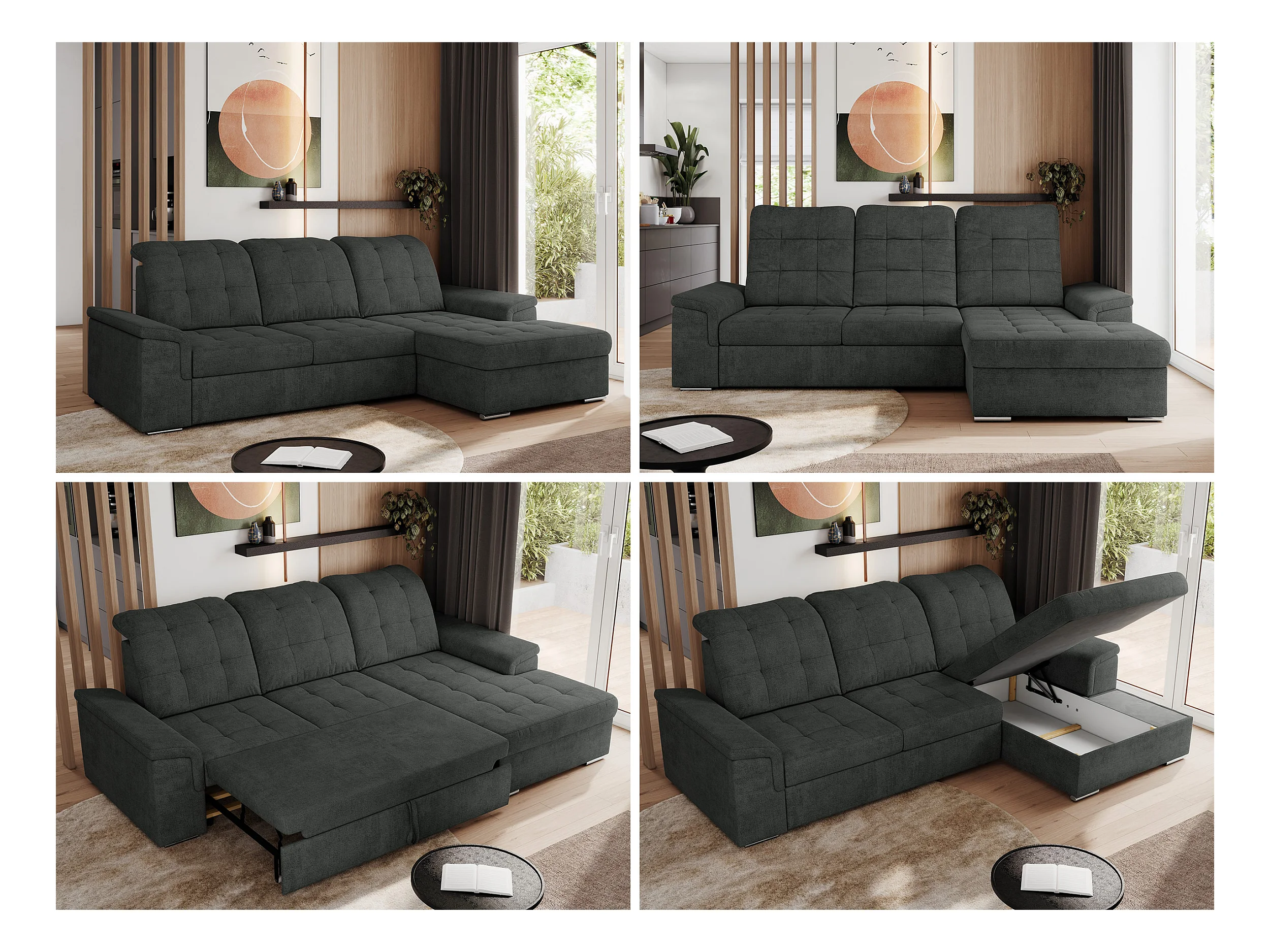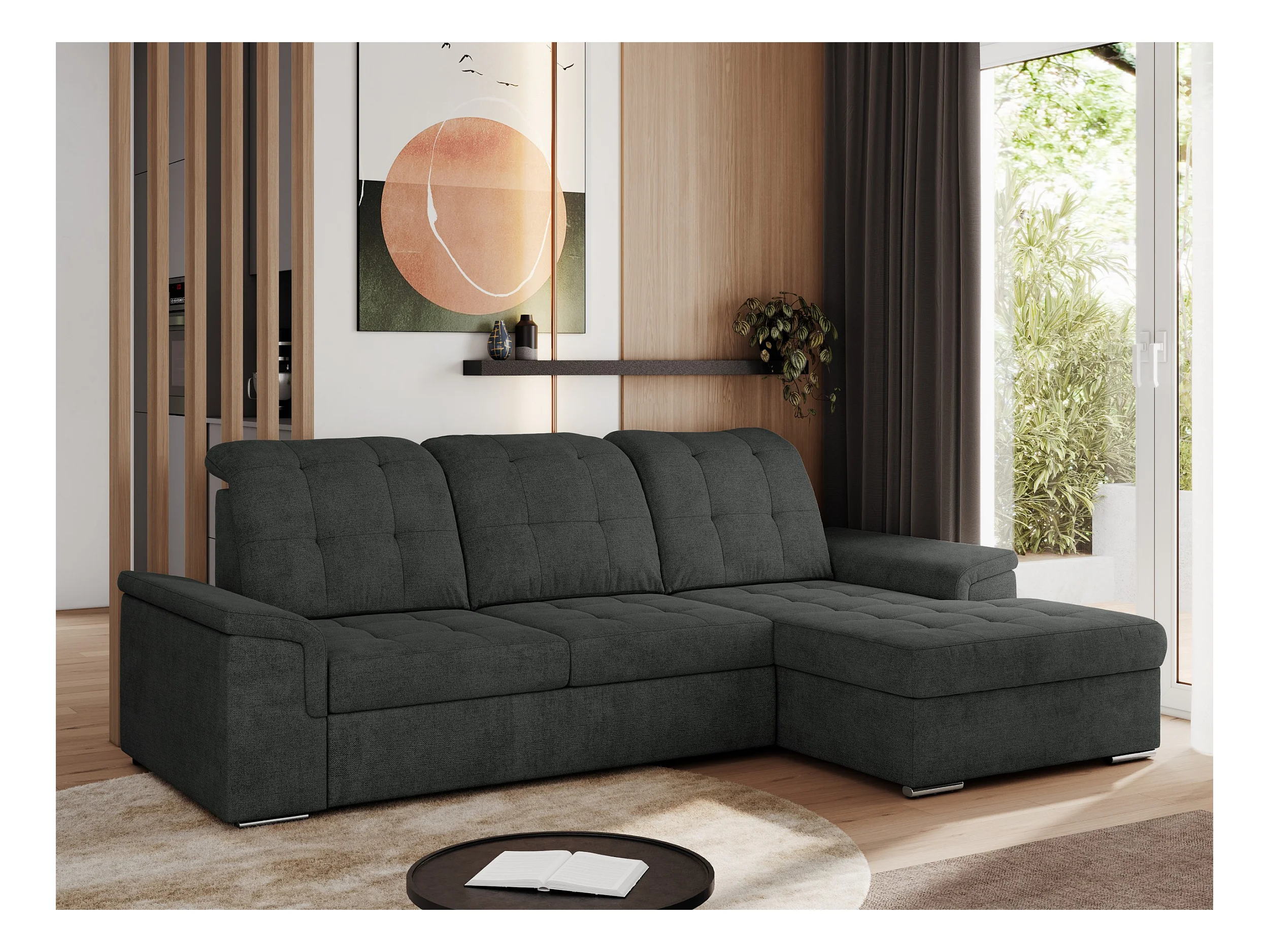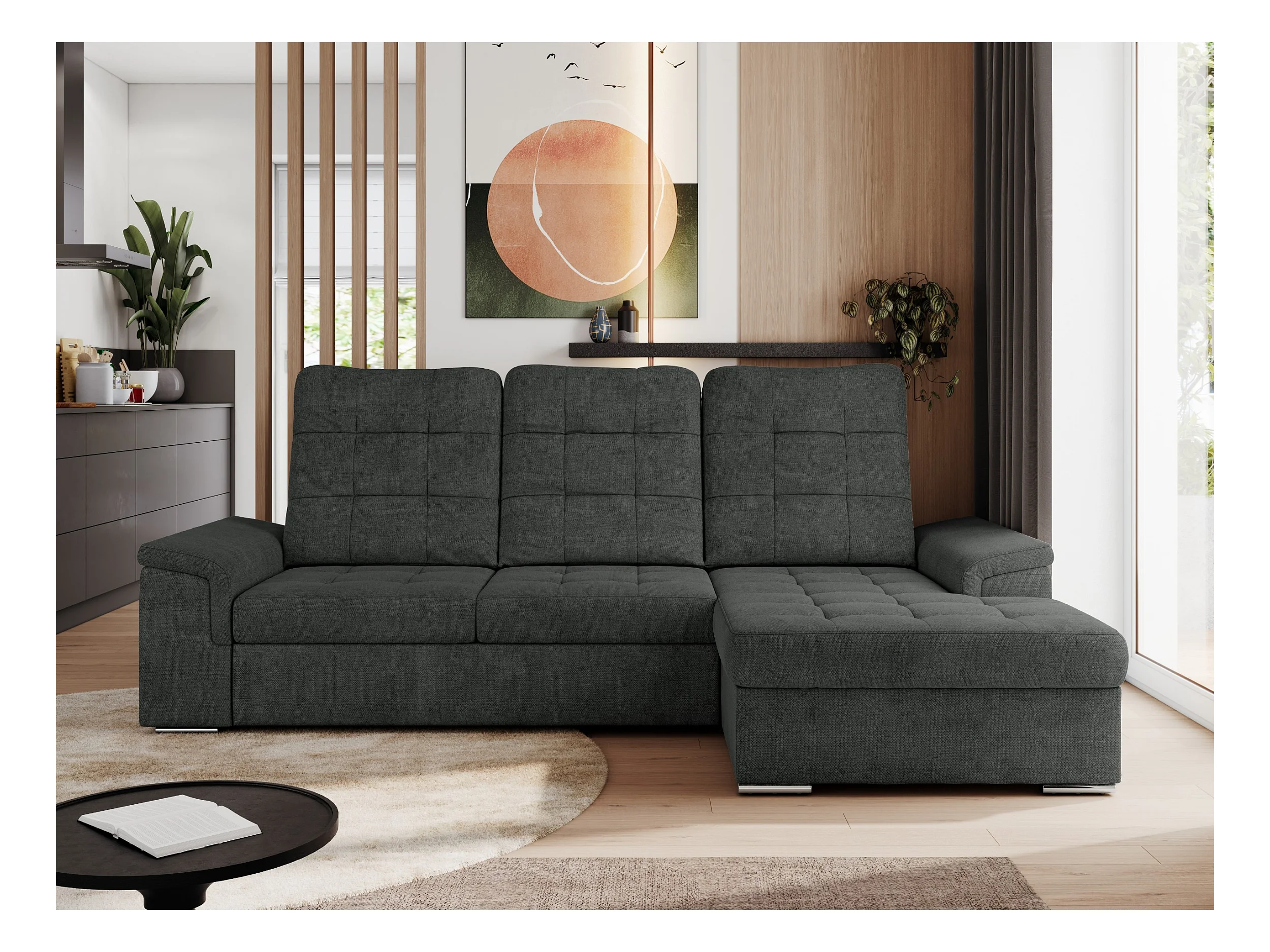 Ecksofa MADRITO - mit verstellbarer Rückenlehne, Armlehnen, gestepptem Sitz und Rückenlehne, Schlaffunktion - Dunkelgrau Struktur - Ecke Rechts