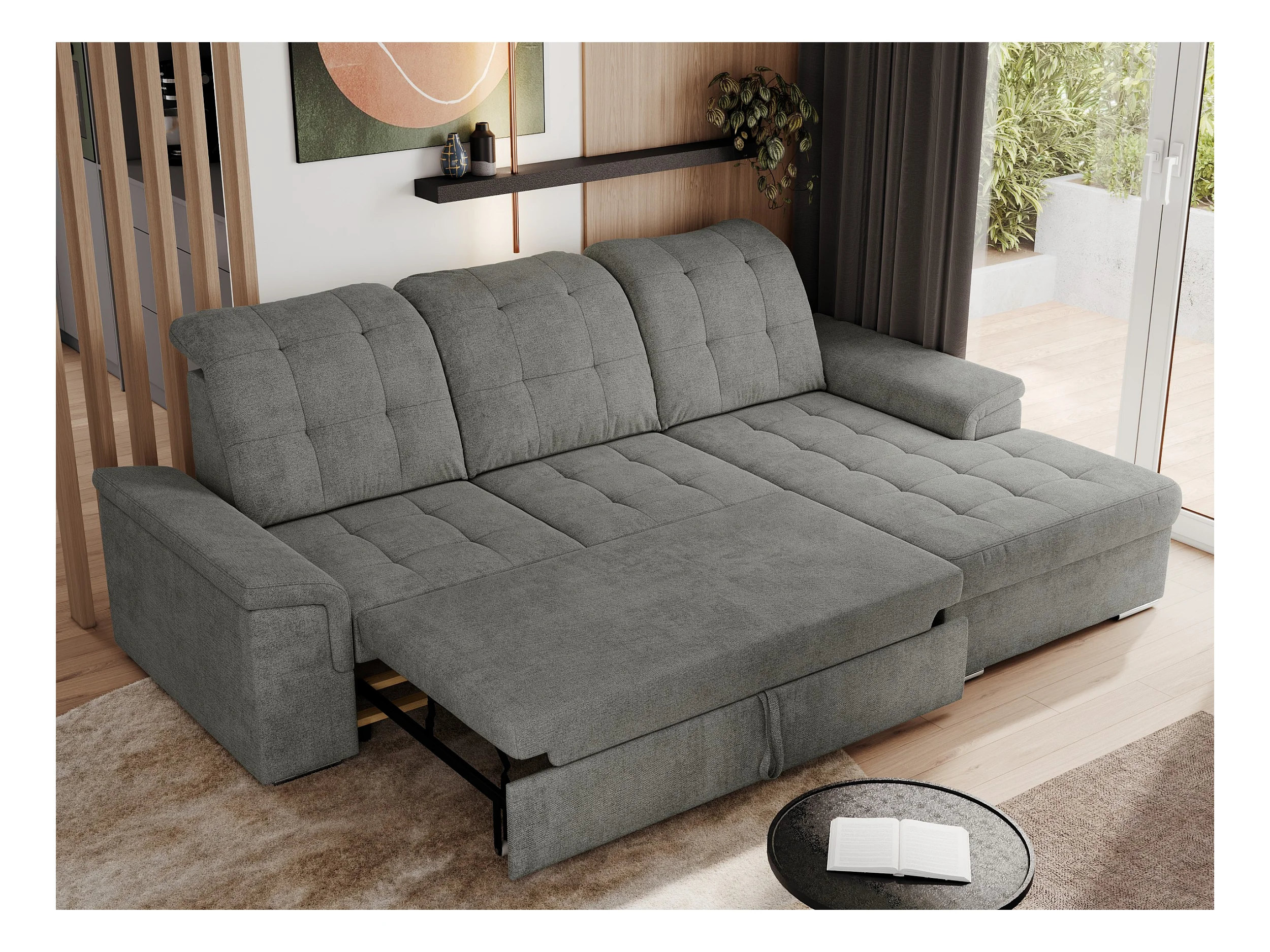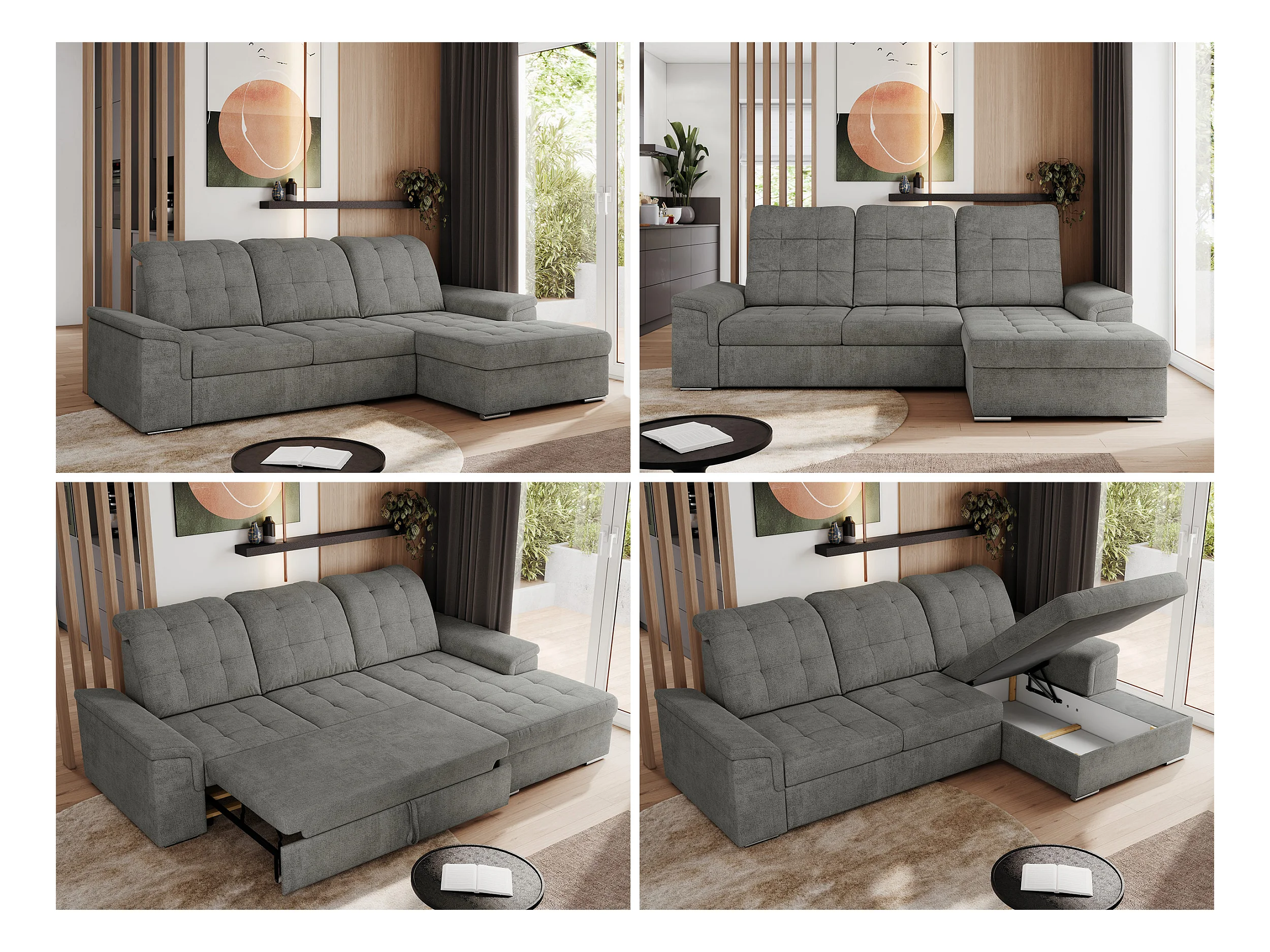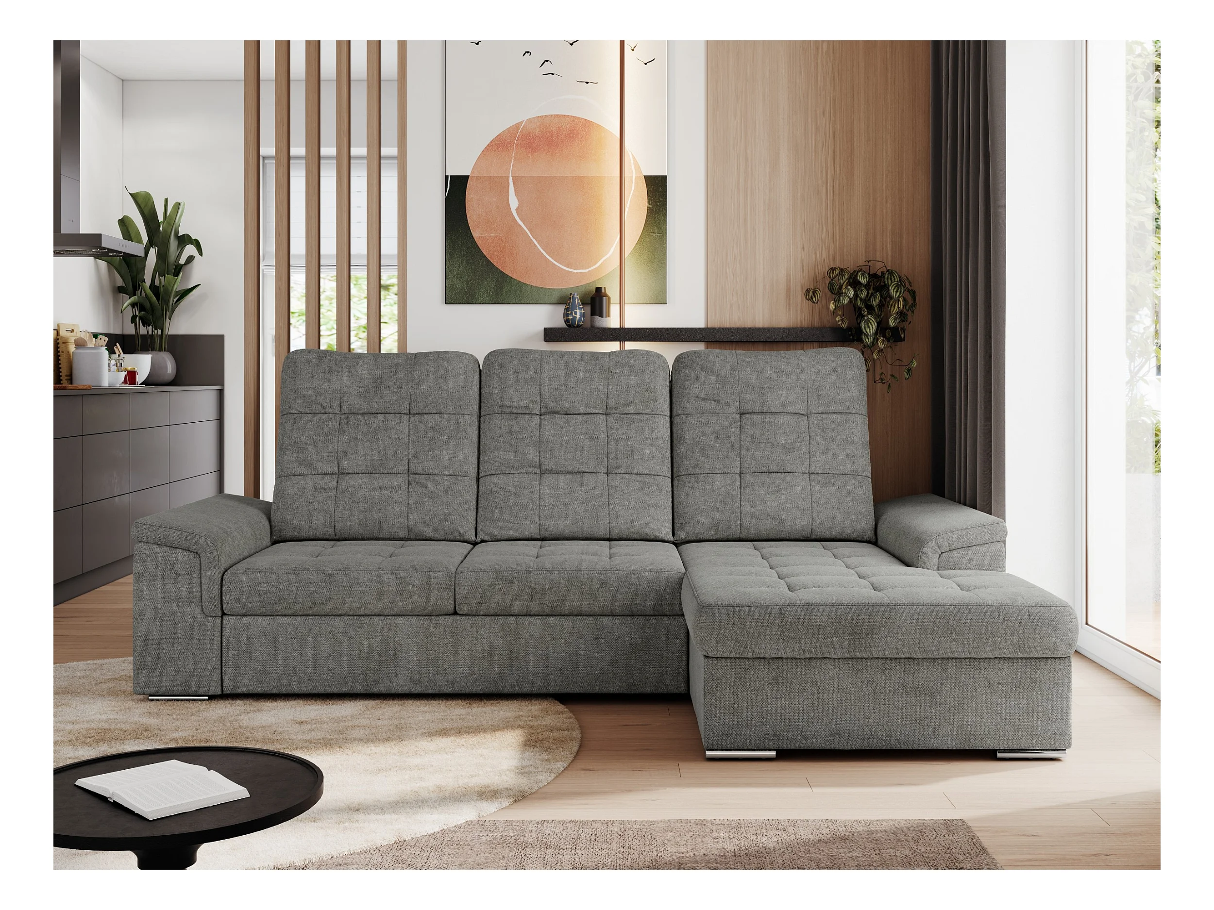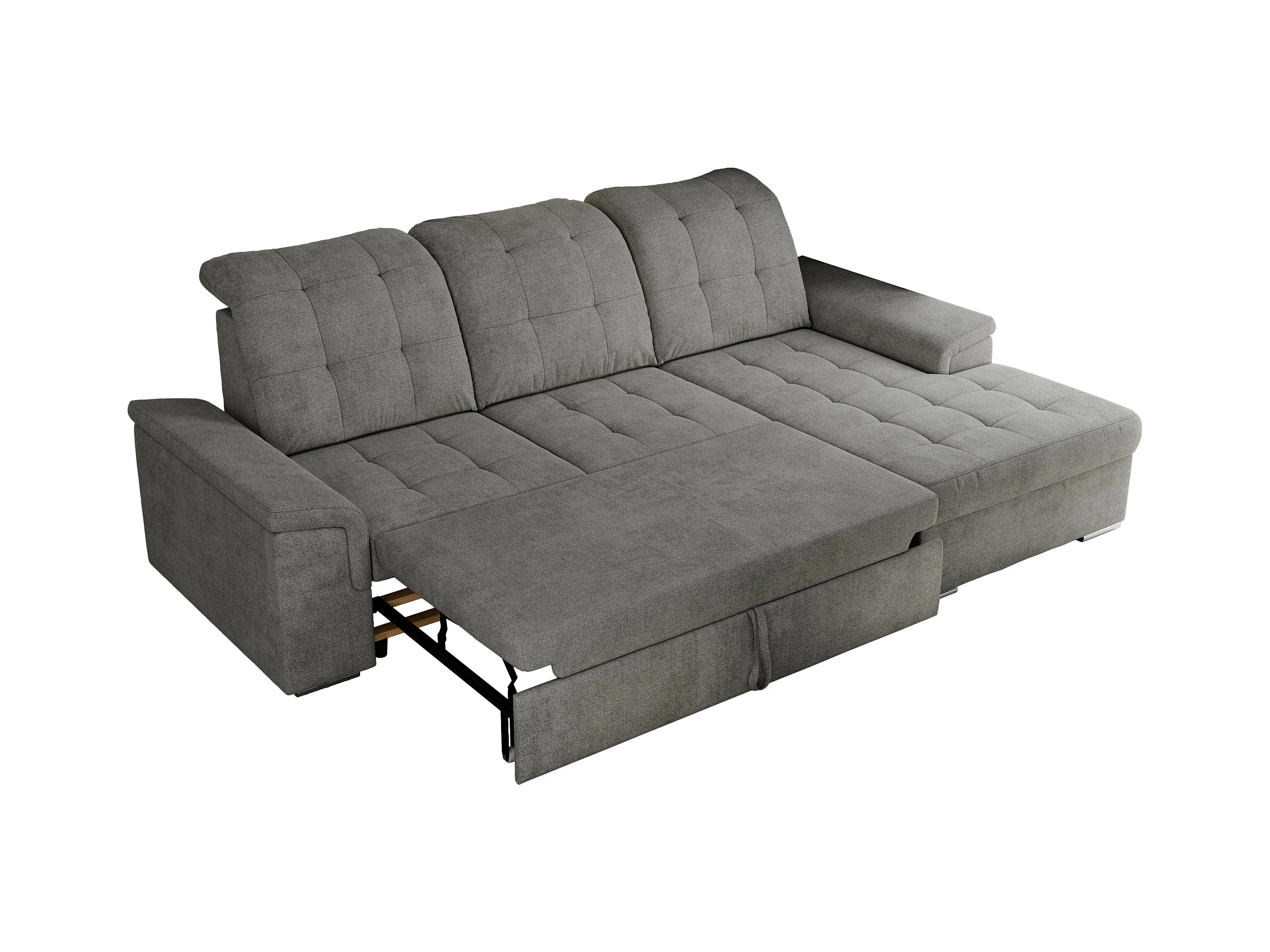 Ecksofa MADRITO - mit verstellbarer Rückenlehne, Armlehnen, gestepptem Sitz und Rückenlehne, Schlaffunktion - Grau Struktur - Ecke Rechts