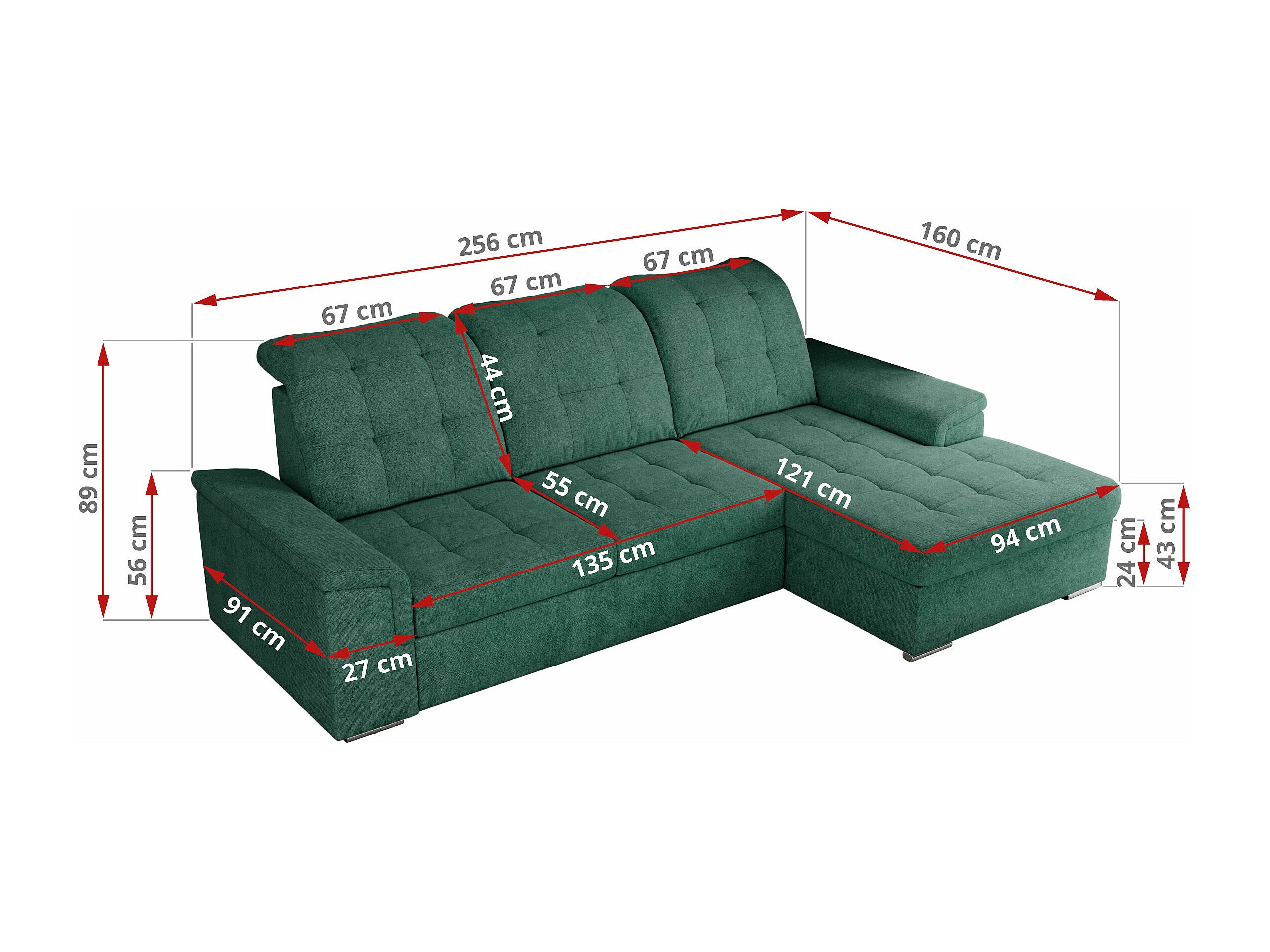 Ecksofa MADRITO - mit verstellbarer Rückenlehne, Armlehnen, gestepptem Sitz und Rückenlehne, Schlaffunktion - Grün Struktur - Ecke Links
