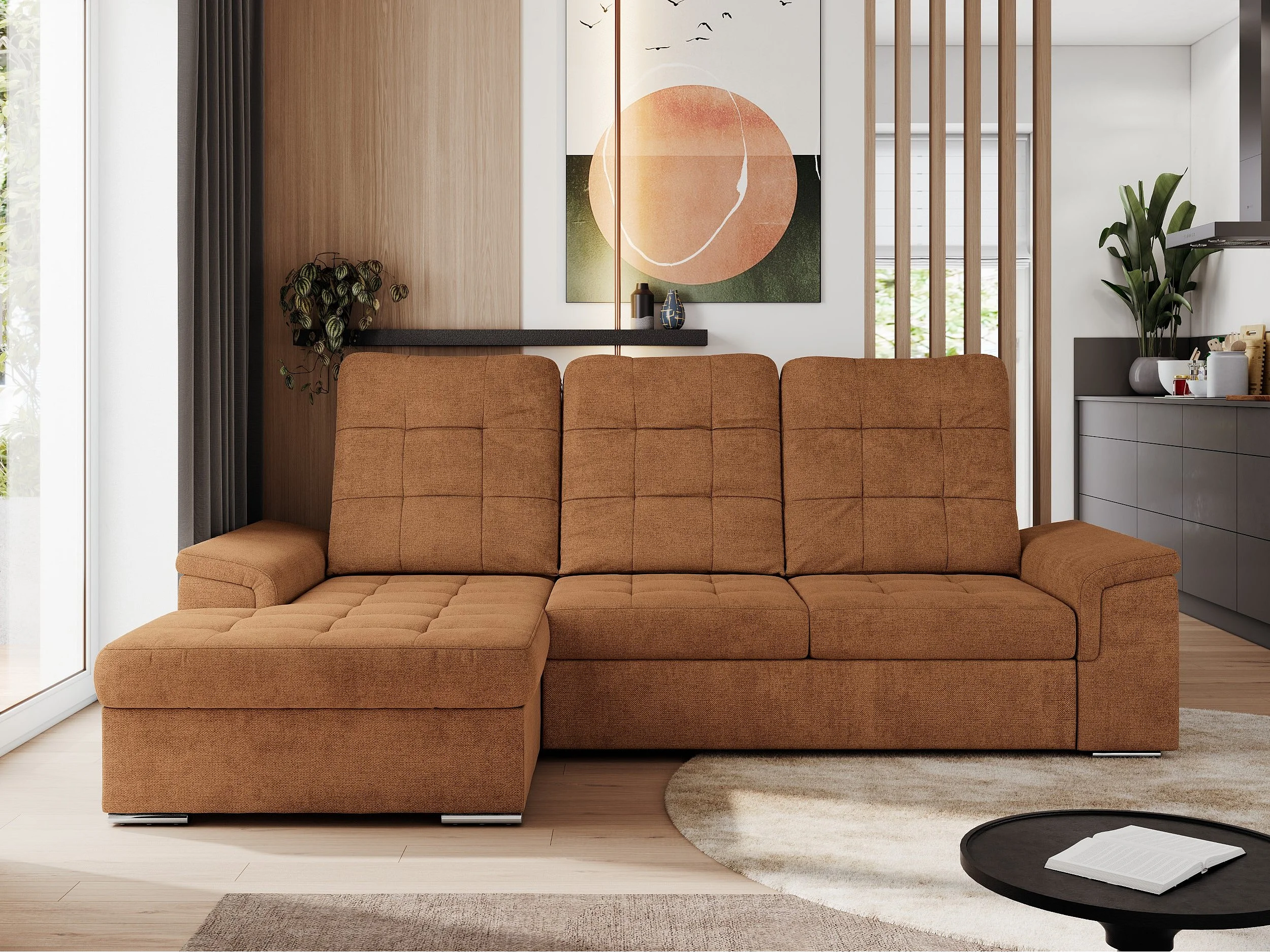 Ecksofa MADRITO - mit verstellbarer Rückenlehne, Armlehnen, gestepptem Sitz und Rückenlehne, Schlaffunktion - Orange Struktur - Ecke Links