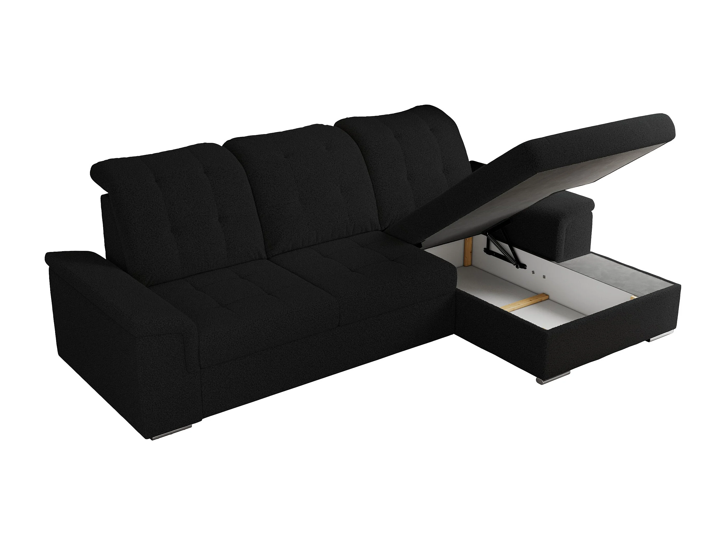 Ecksofa MADRITO - mit verstellbarer Rückenlehne, Armlehnen, gestepptem Sitz und Rückenlehne, Schlaffunktion - Schwarz Boucle - Ecke Rechts