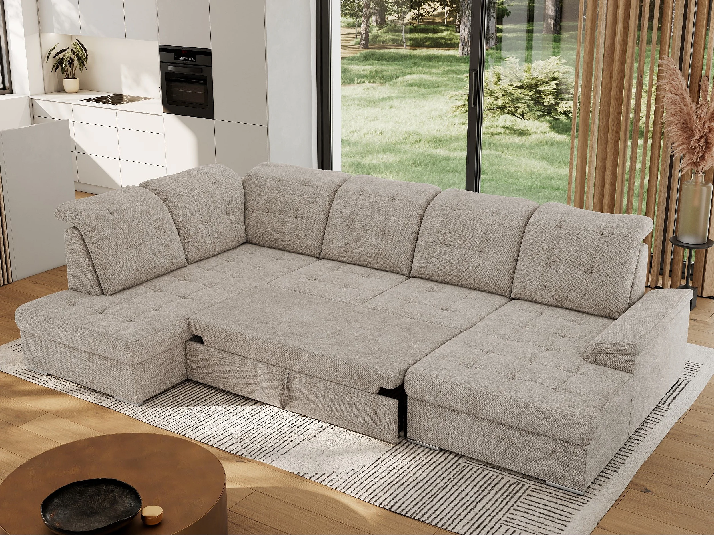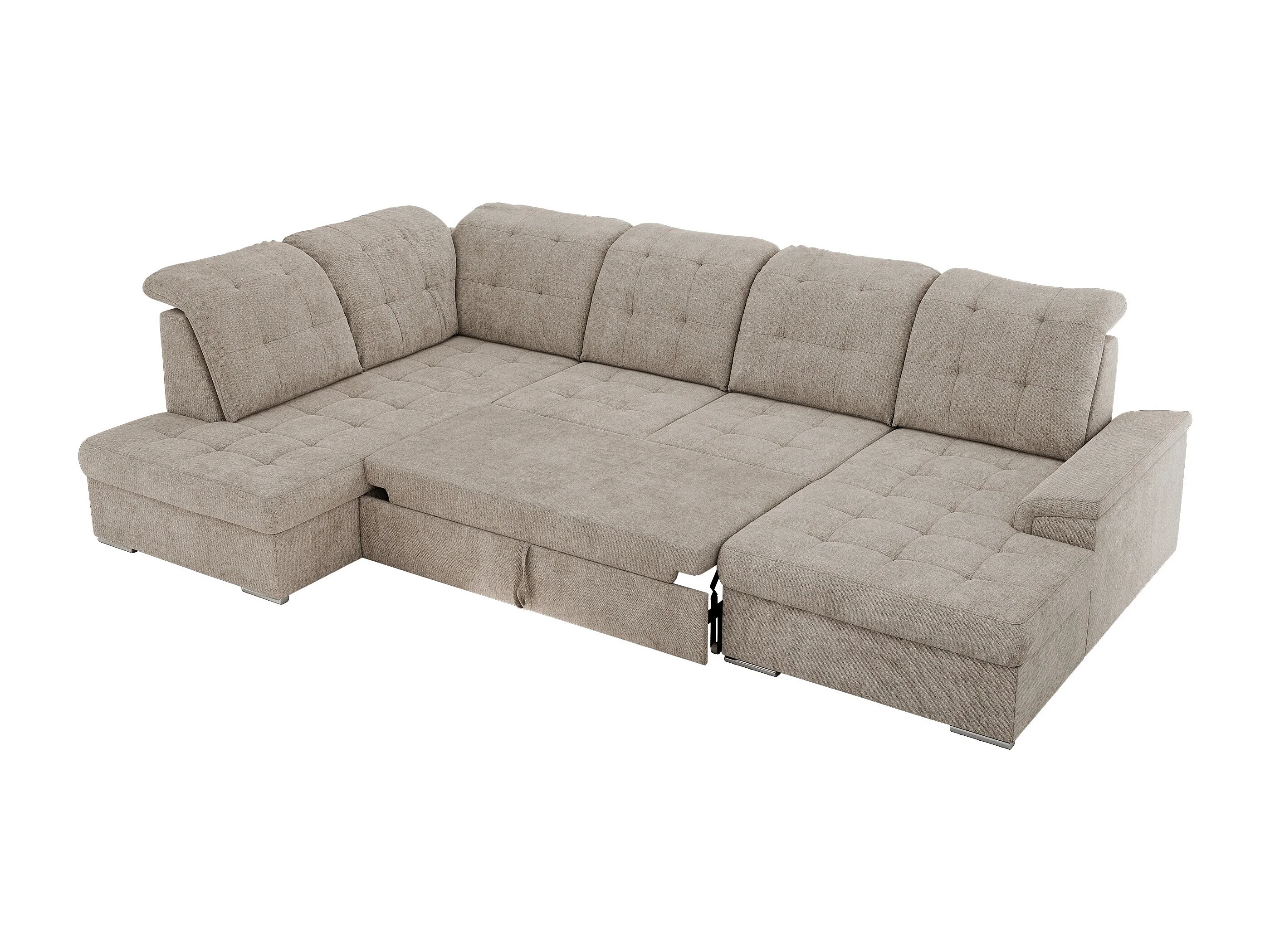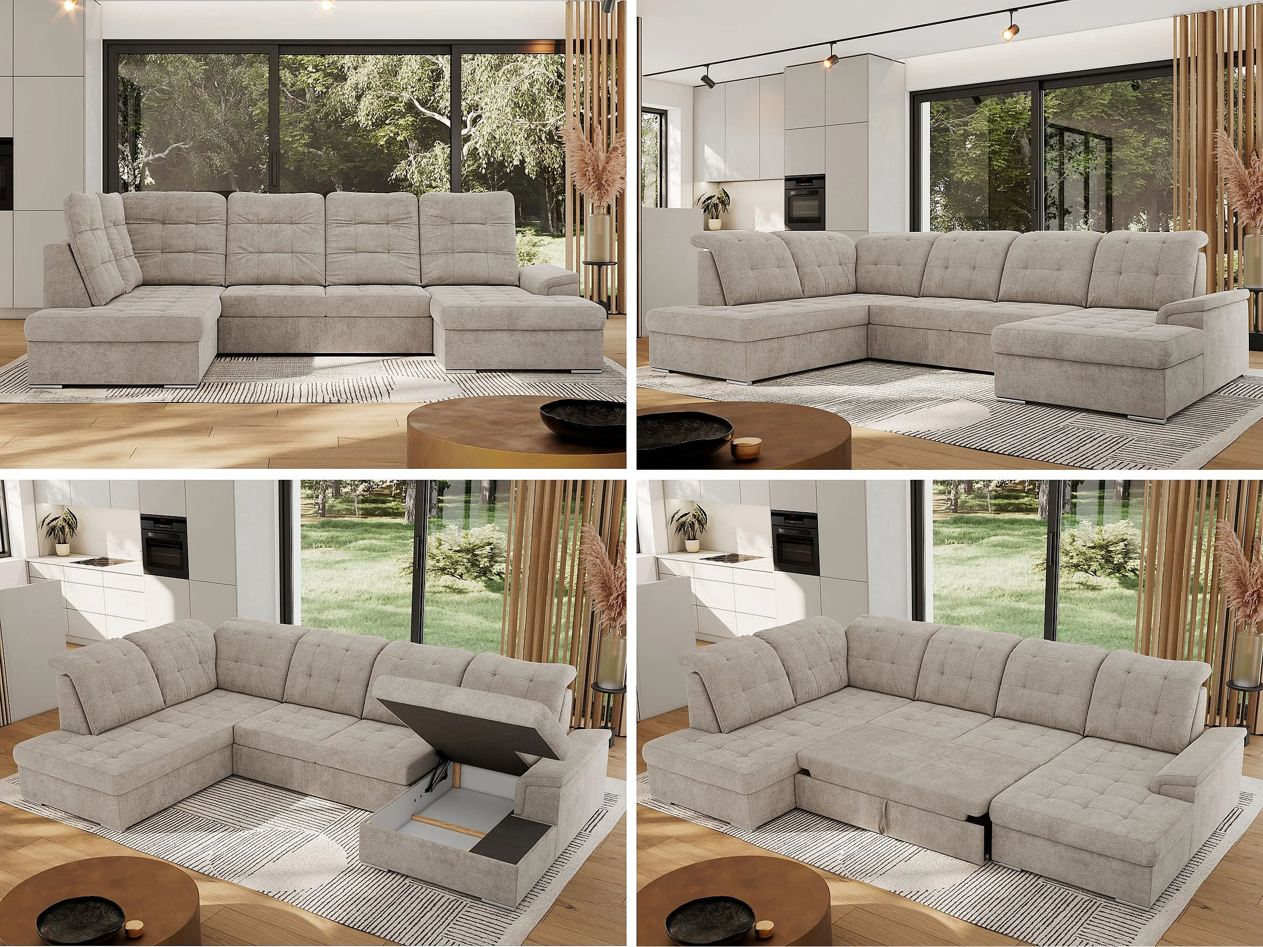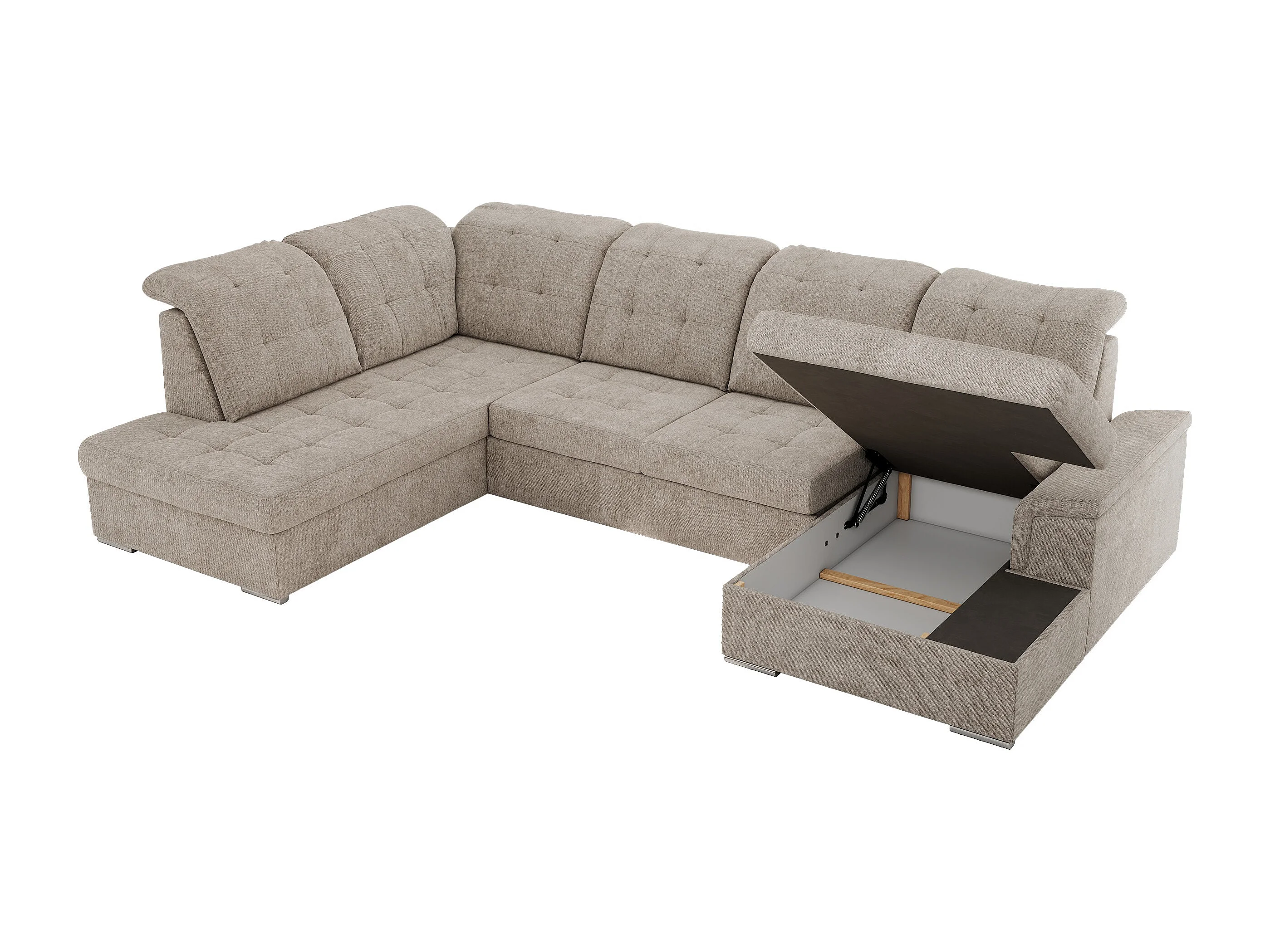 Ecksofa MADRITO U - mit verstellbarer Rückenlehne, Armlehne, L-förmige Ecke, Bettkasten - Beige Struktur - Ecke Links