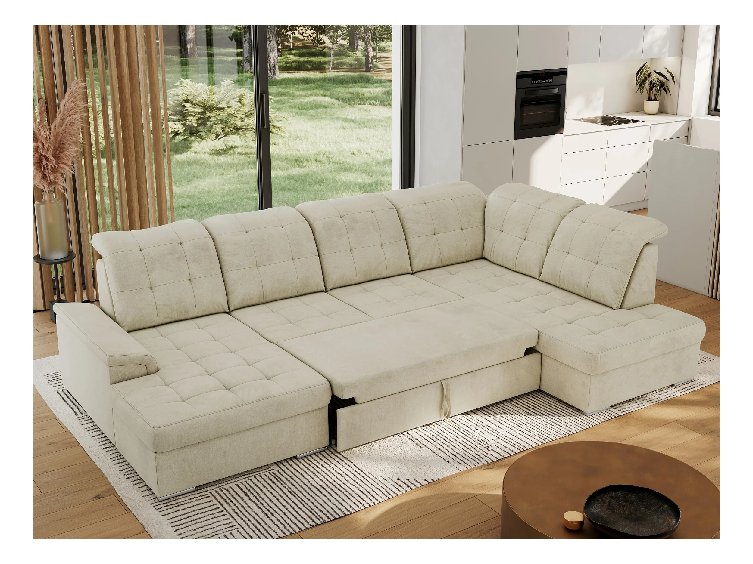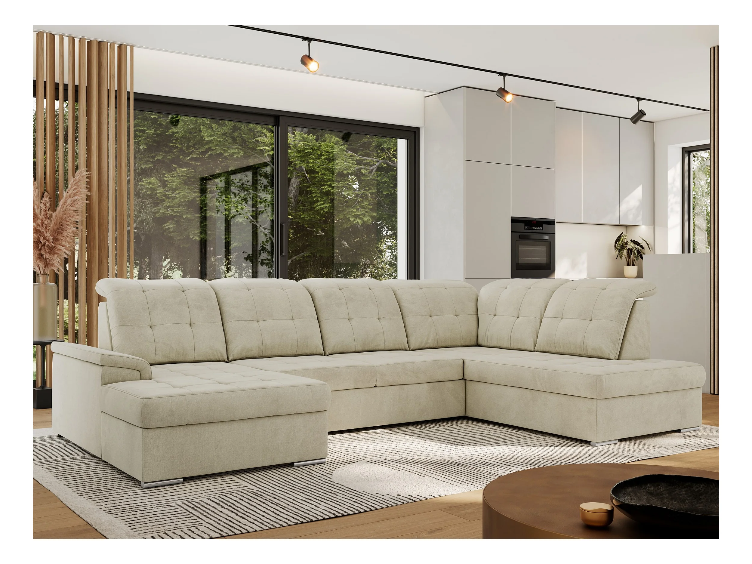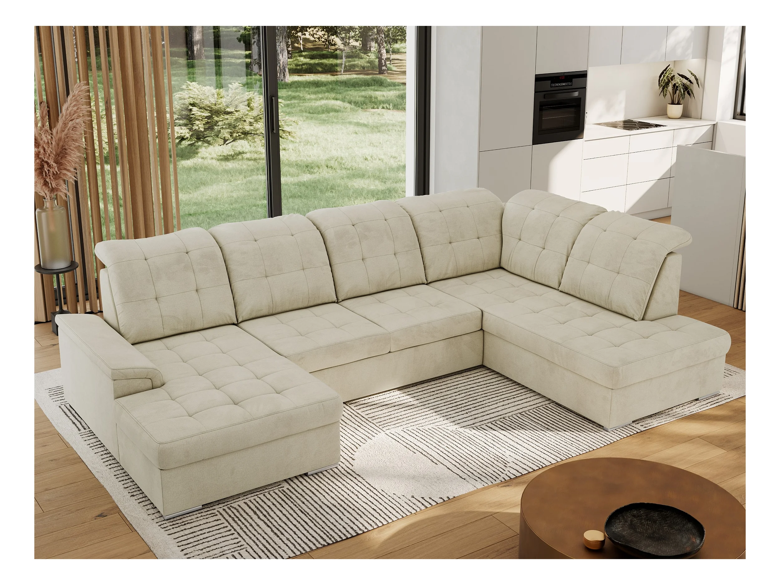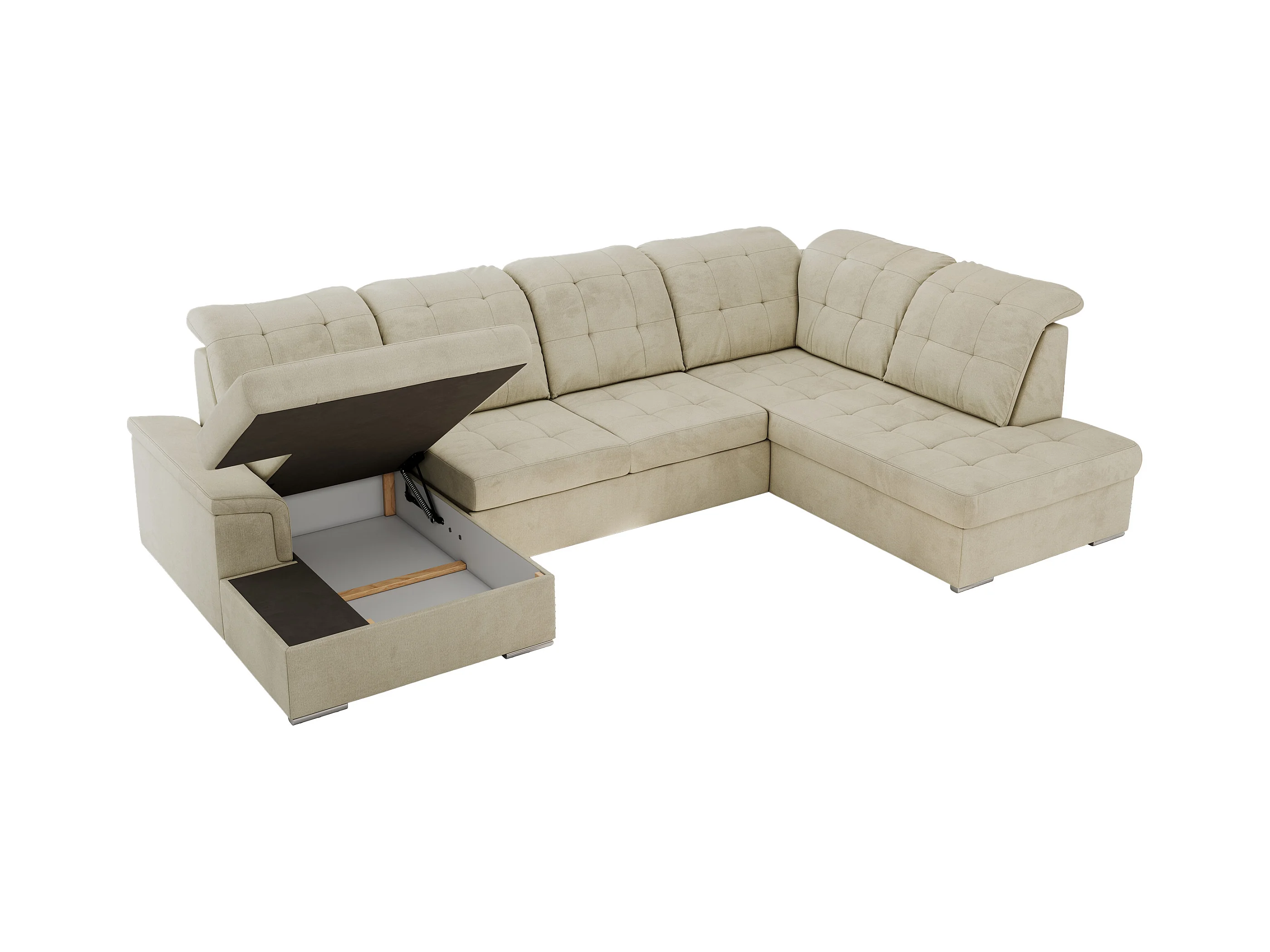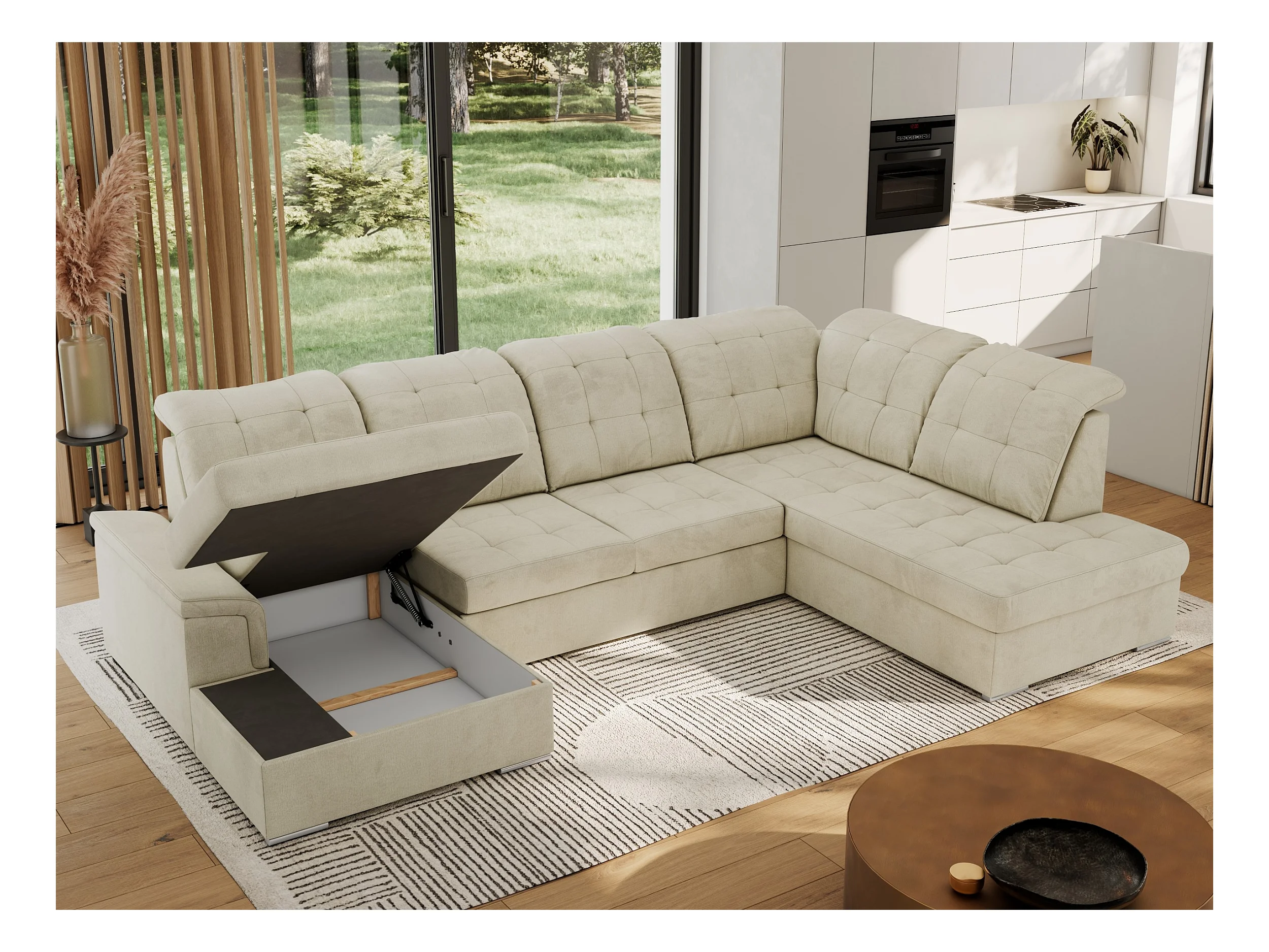 Ecksofa MADRITO U - mit verstellbarer Rückenlehne, Armlehne, L-förmige Ecke, Bettkasten - Beige Velvet - Ecke Rechts
