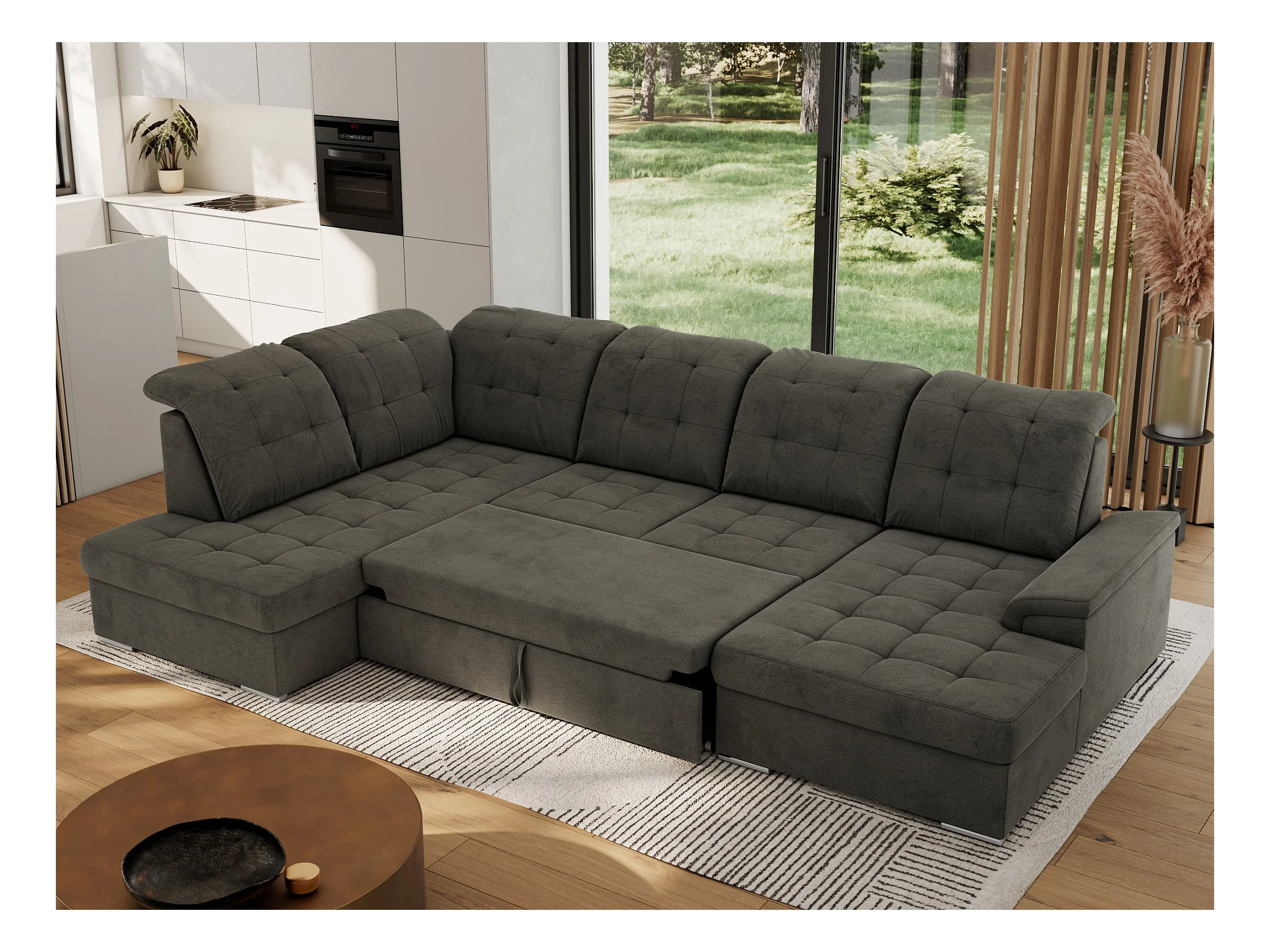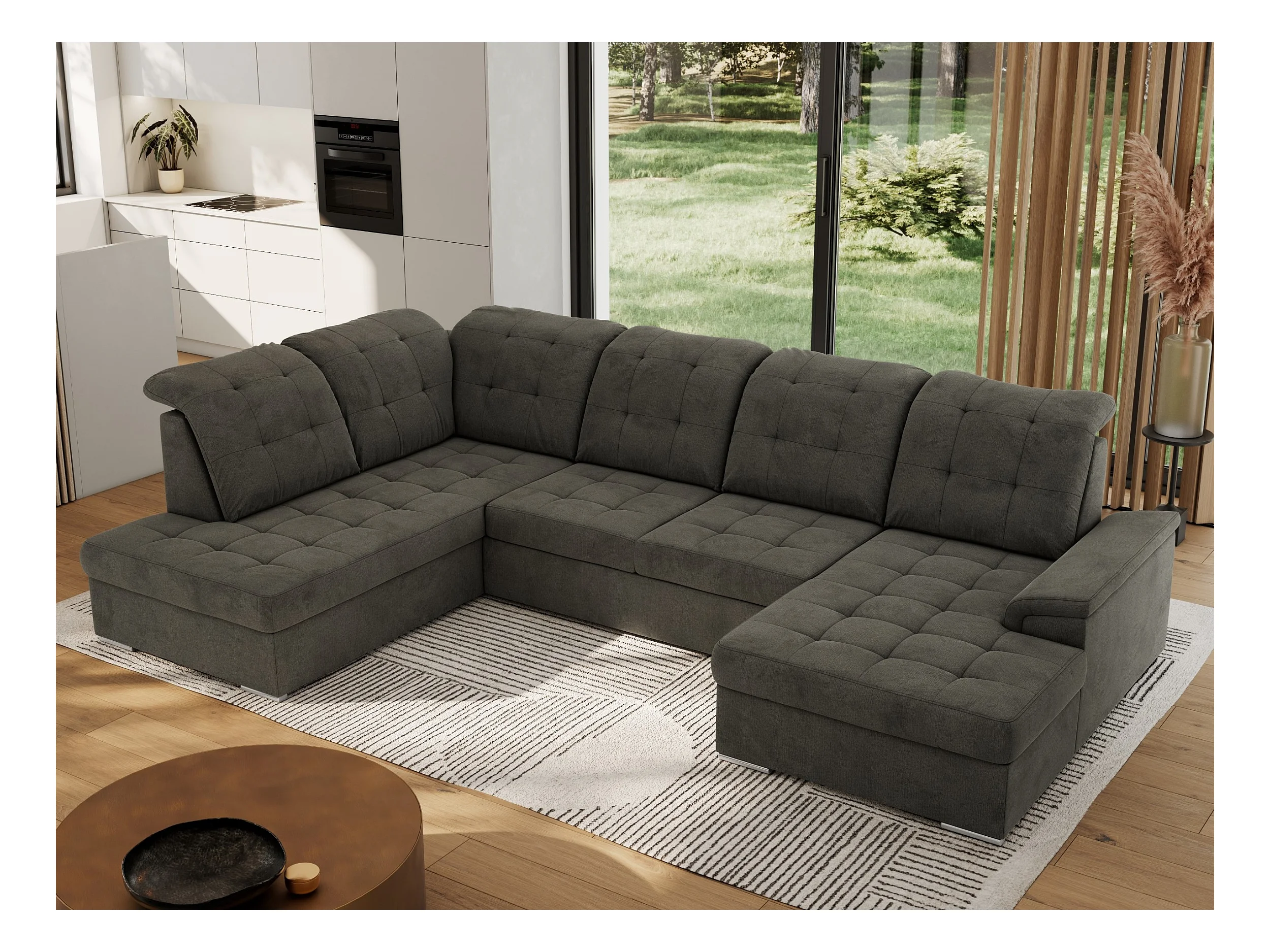 Ecksofa MADRITO U - mit verstellbarer Rückenlehne, Armlehne, L-förmige Ecke, Bettkasten - Dunkelgrau Velvet - Ecke Links