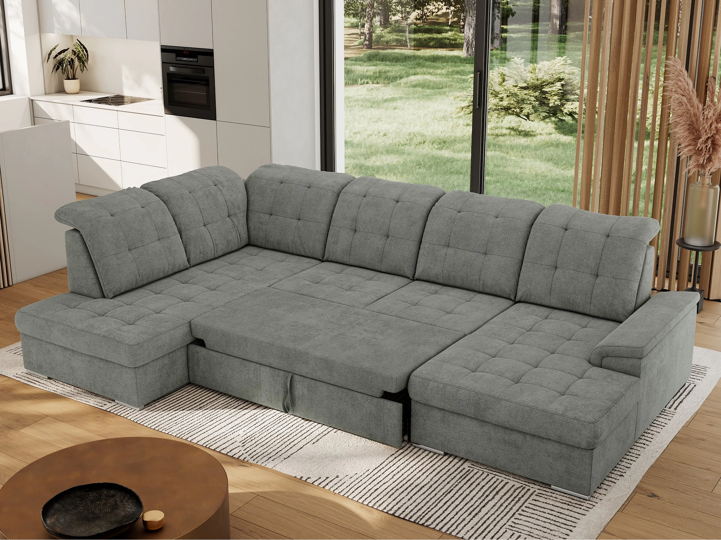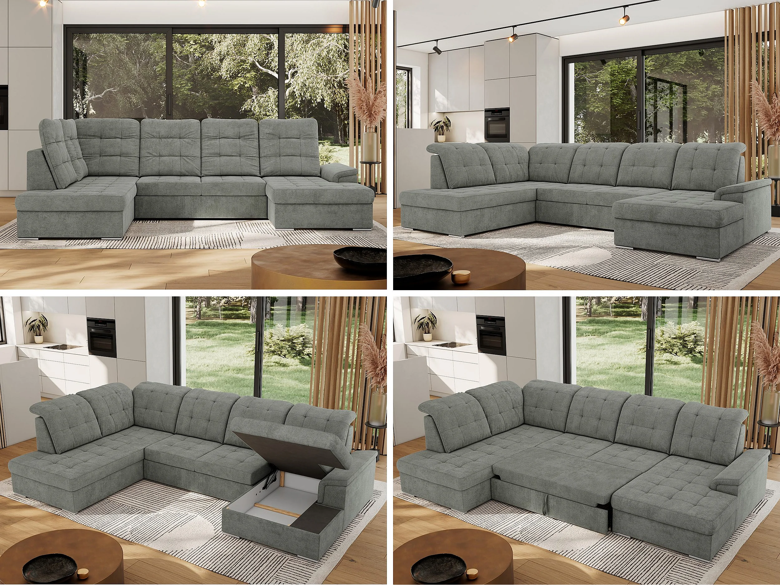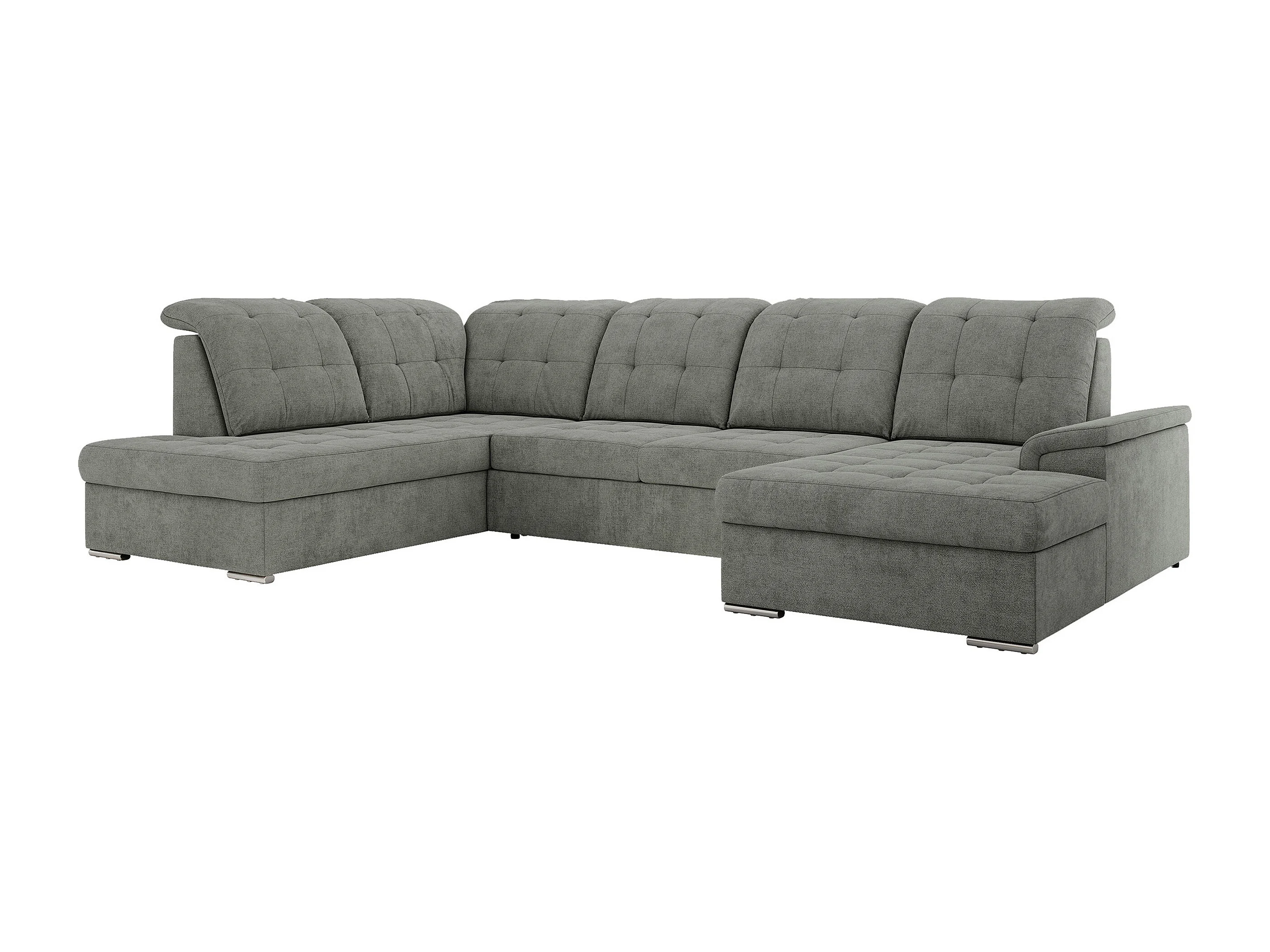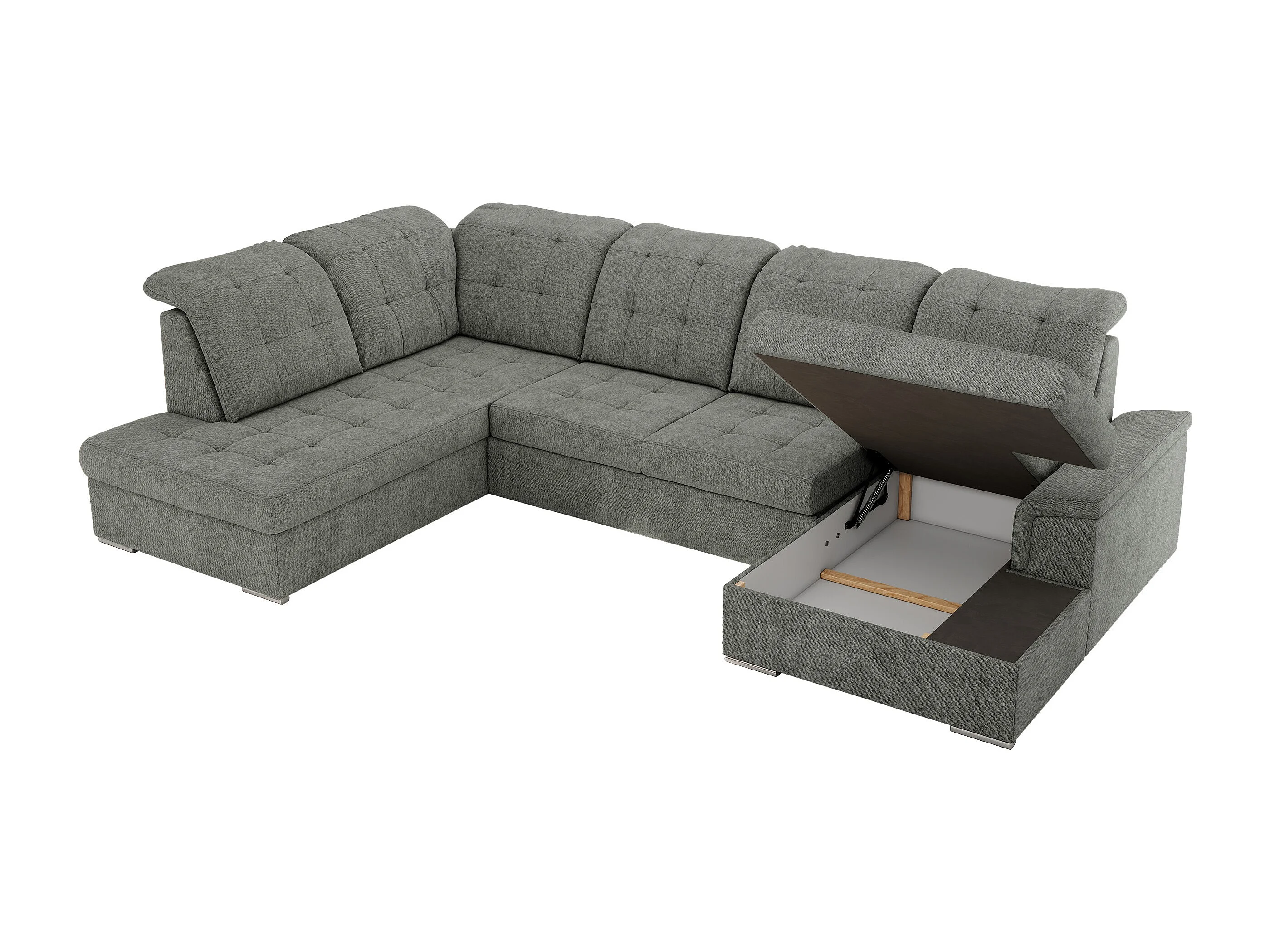 Ecksofa MADRITO U - mit verstellbarer Rückenlehne, Armlehne, L-förmige Ecke, Bettkasten - Grau Struktur - Ecke Links
