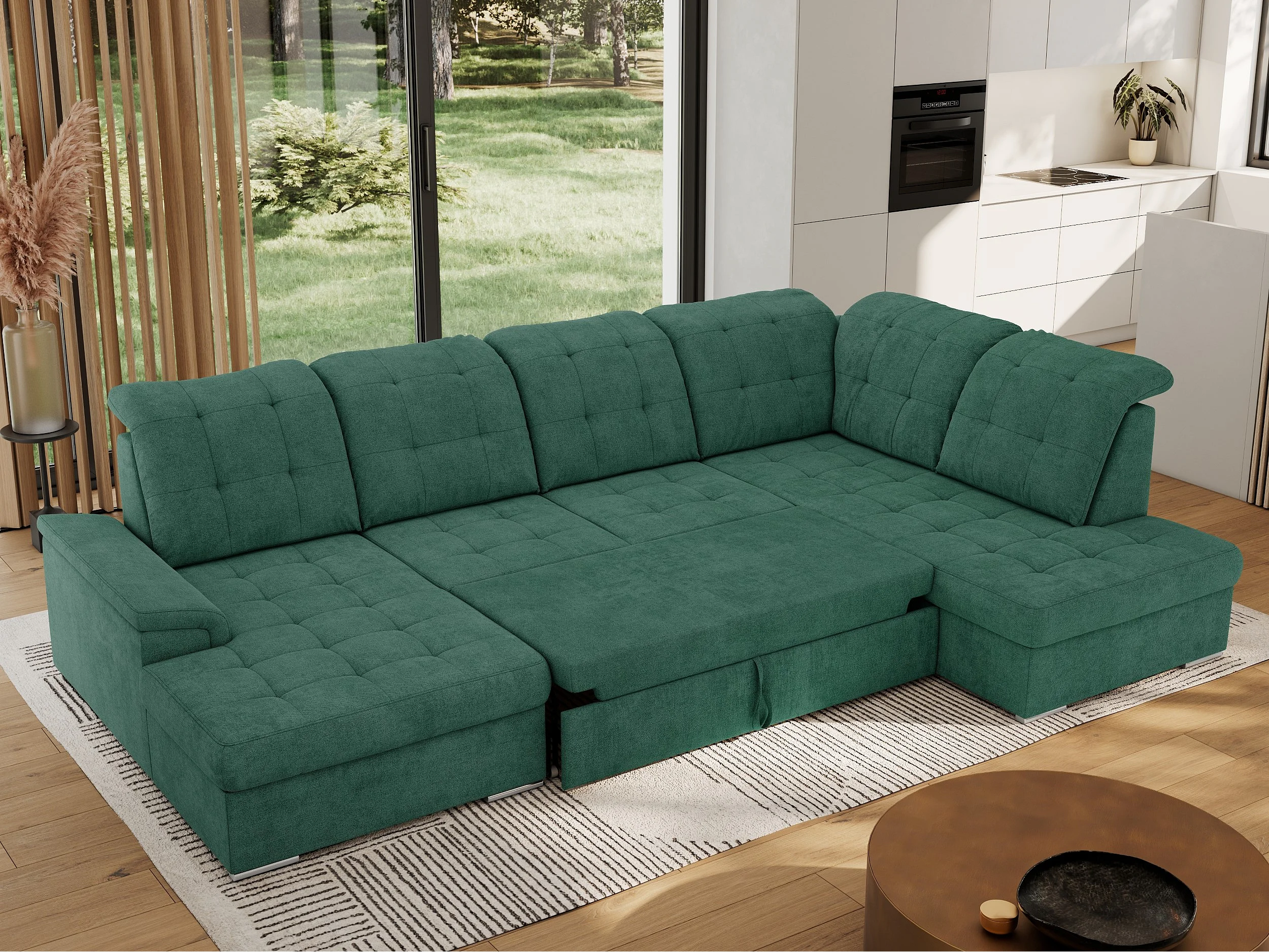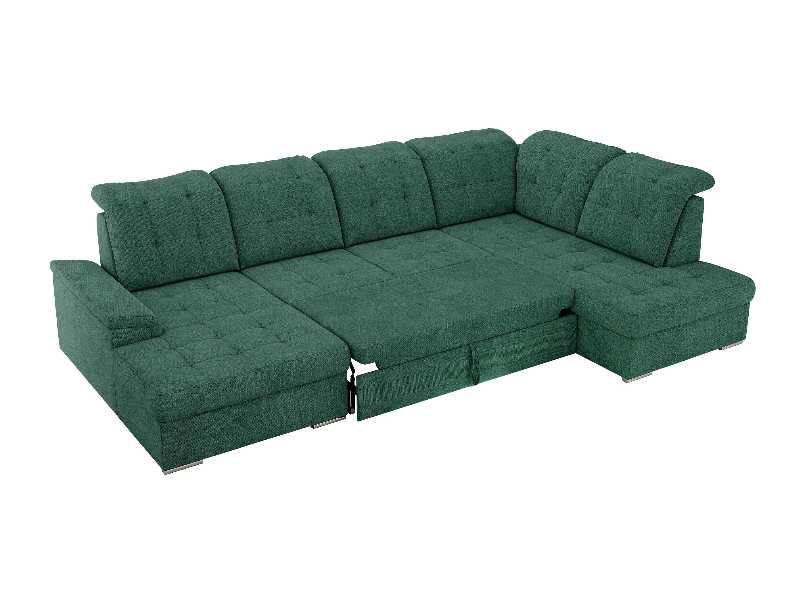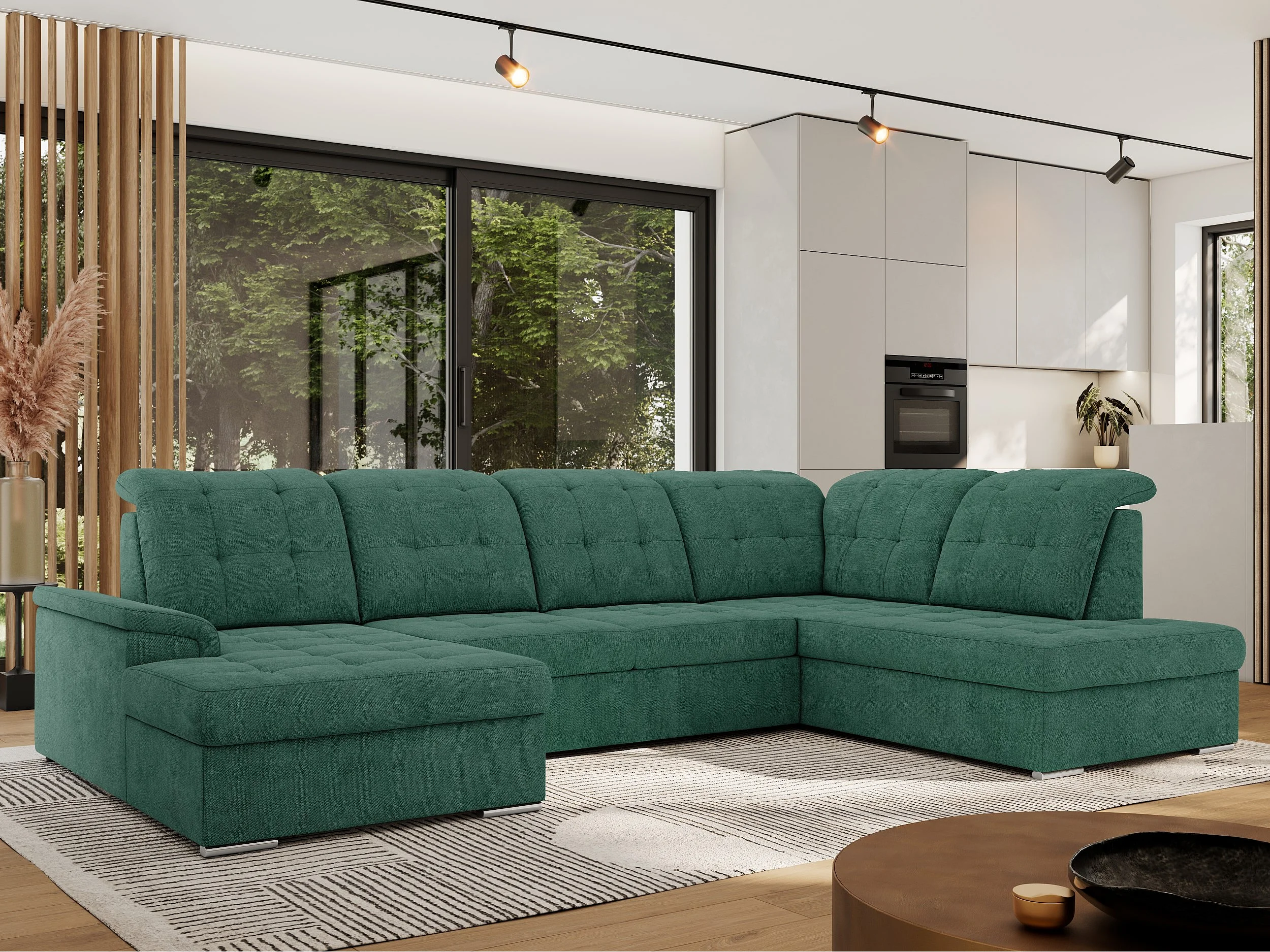 Ecksofa MADRITO U - mit verstellbarer Rückenlehne, Armlehne, L-förmige Ecke, Bettkasten - Grün Struktur - Ecke Rechts