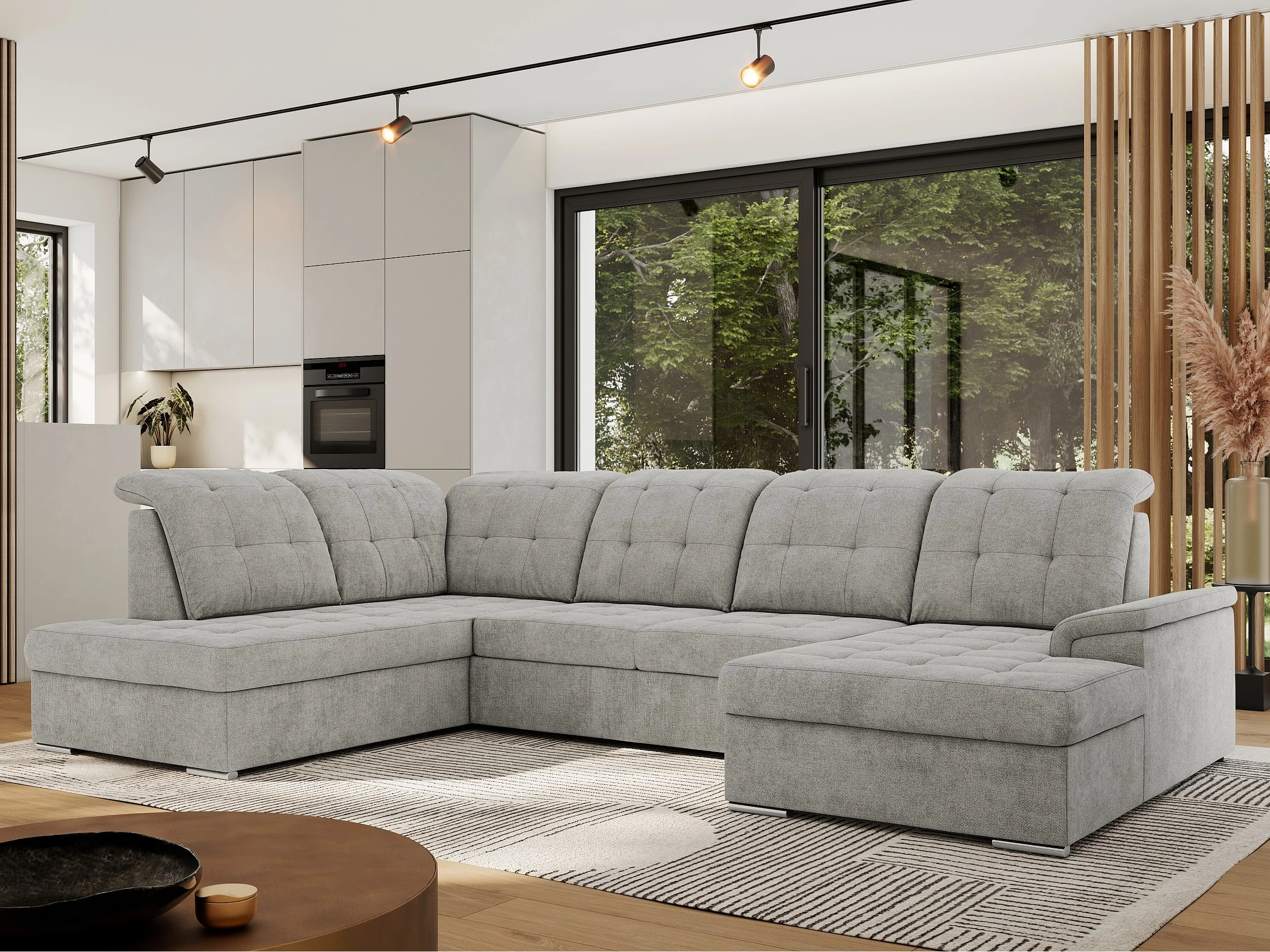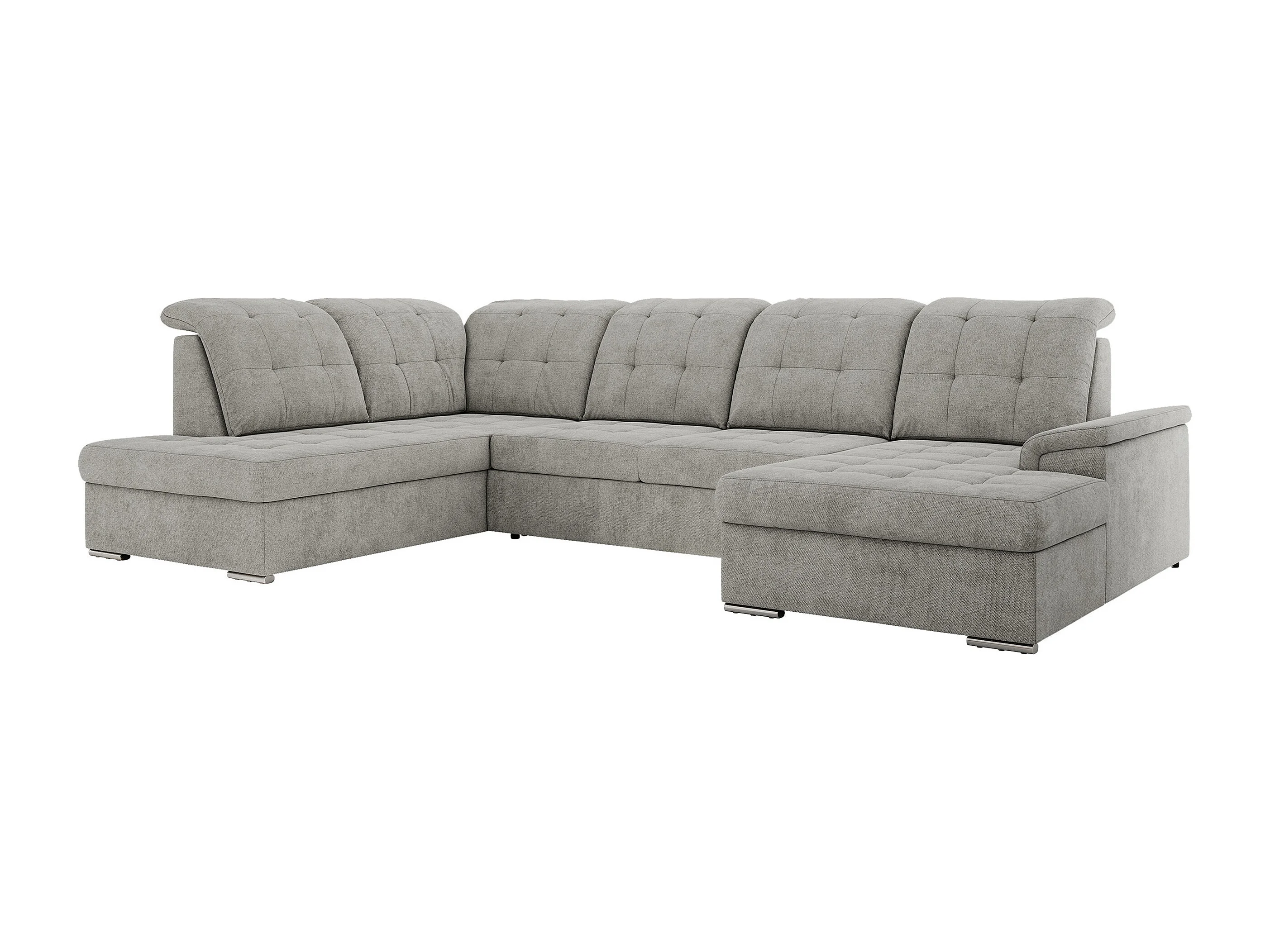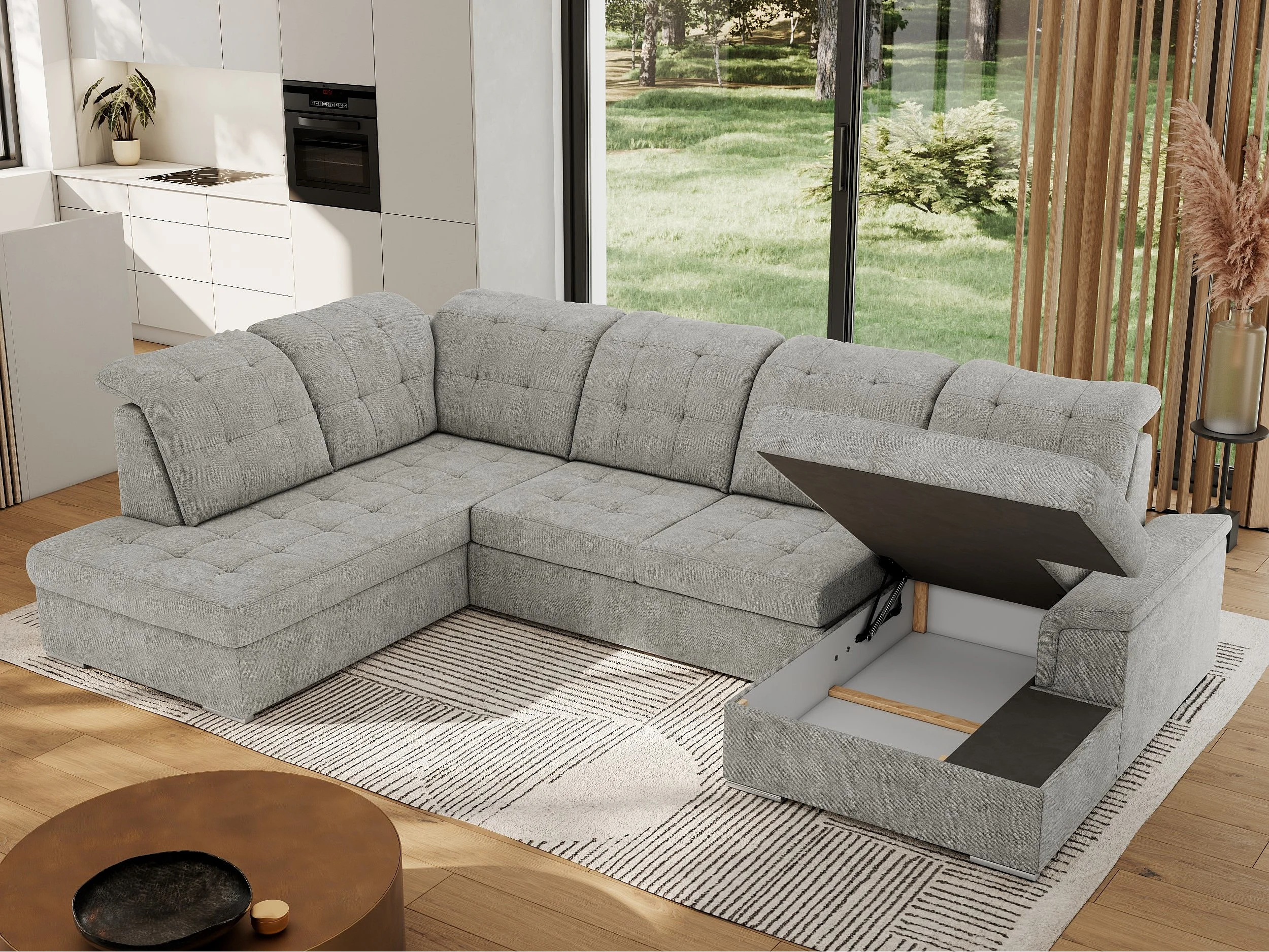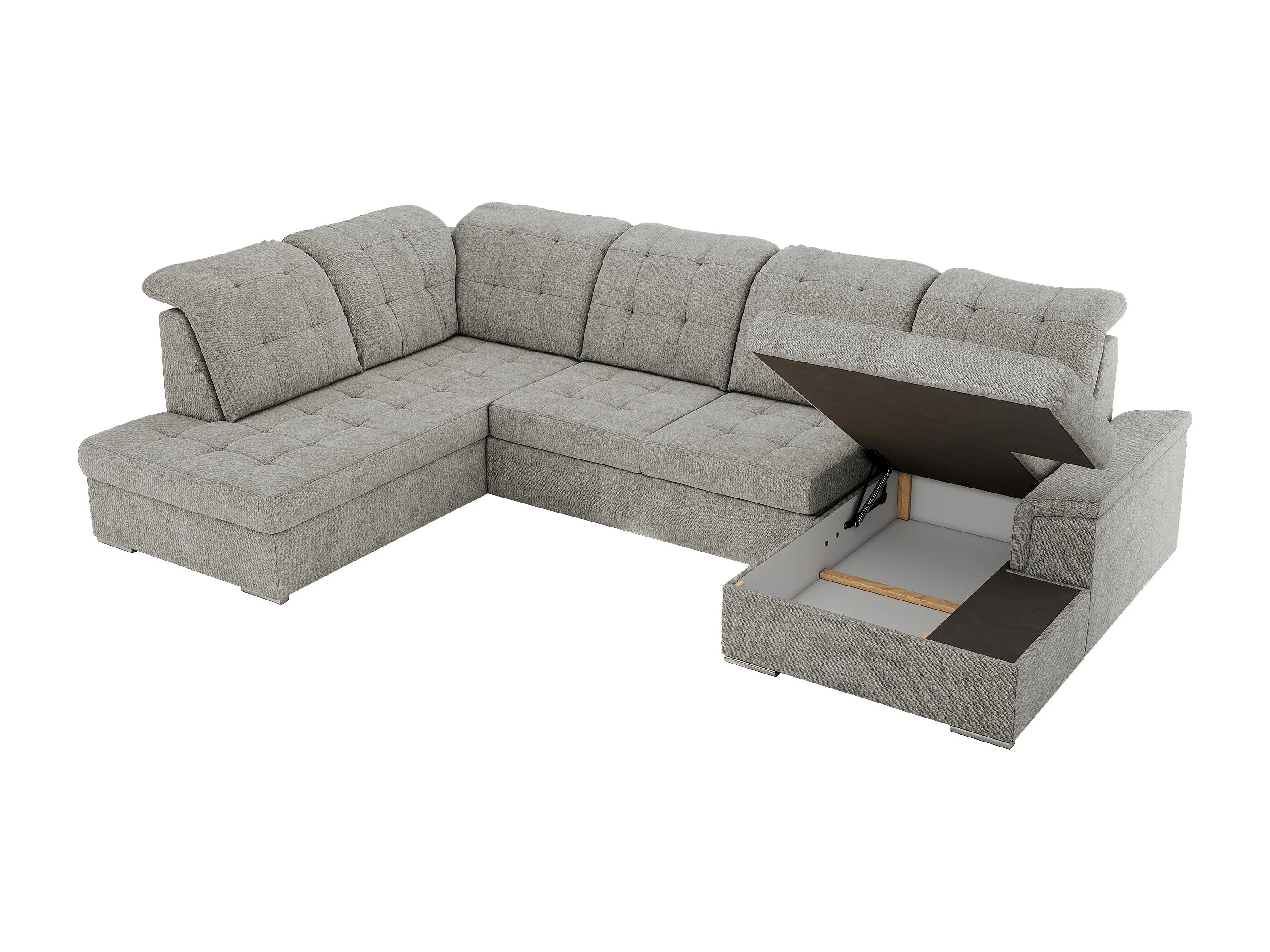 Ecksofa MADRITO U - mit verstellbarer Rückenlehne, Armlehne, L-förmige Ecke, Bettkasten - Hellgrau Struktur - Ecke Links