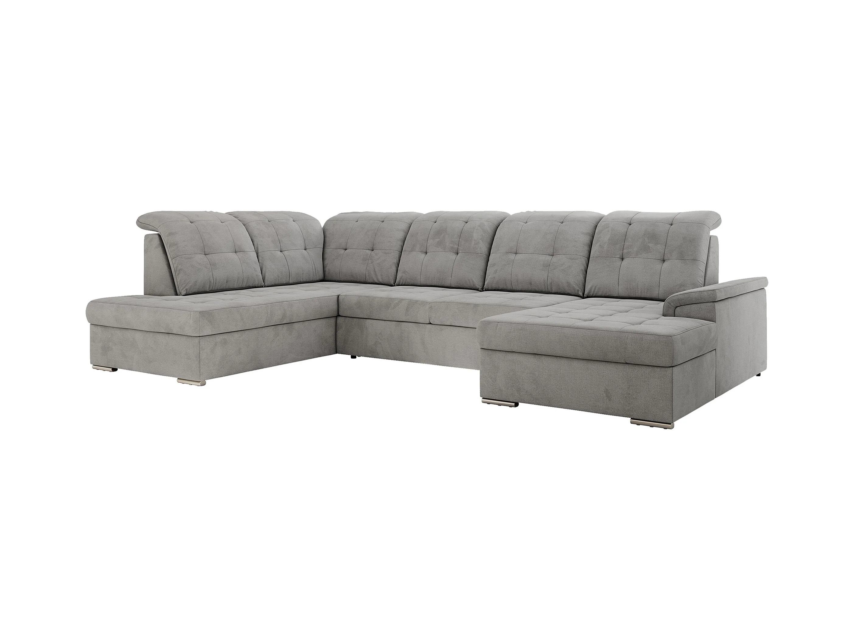 Ecksofa MADRITO U - mit verstellbarer Rückenlehne, Armlehne, L-förmige Ecke, Bettkasten - Hellgrau Velvet - Ecke Links