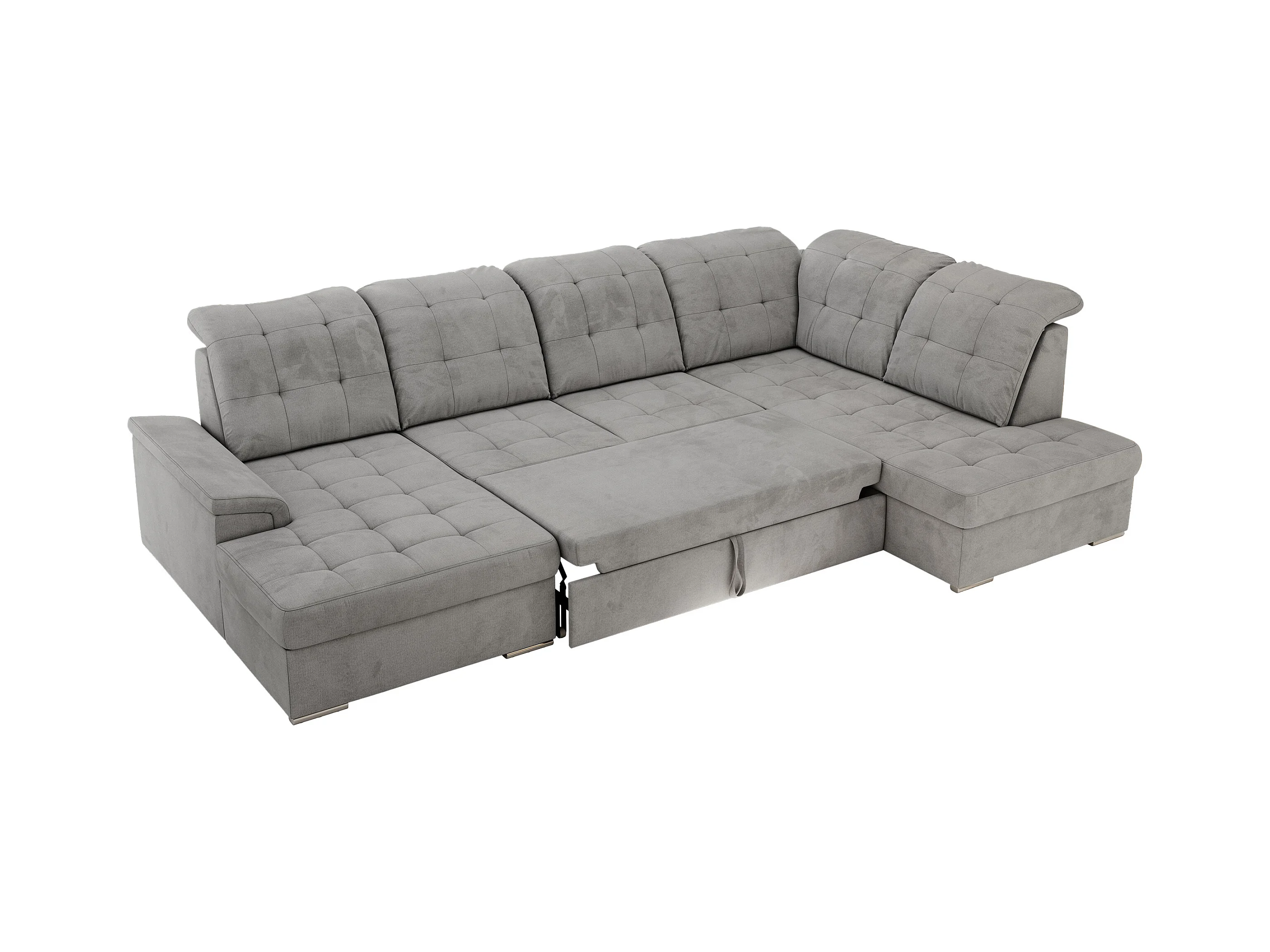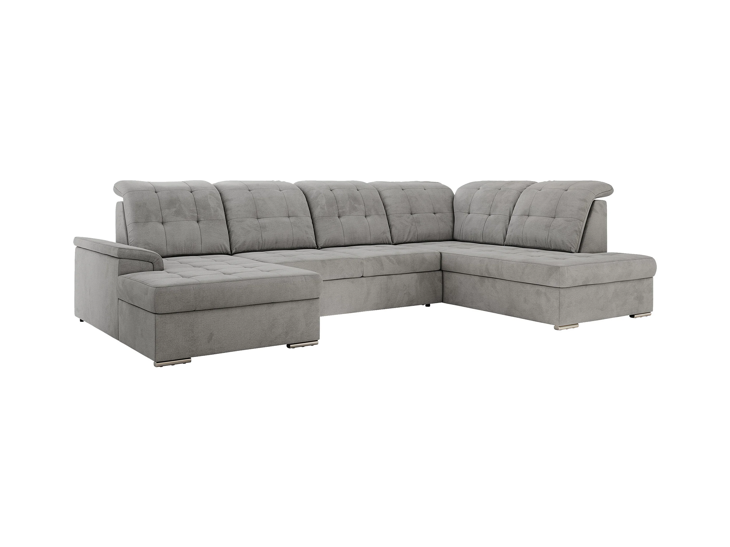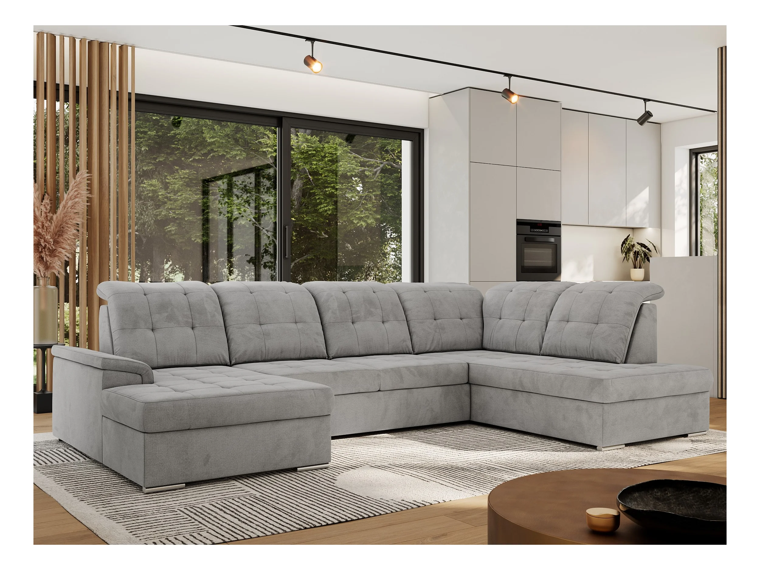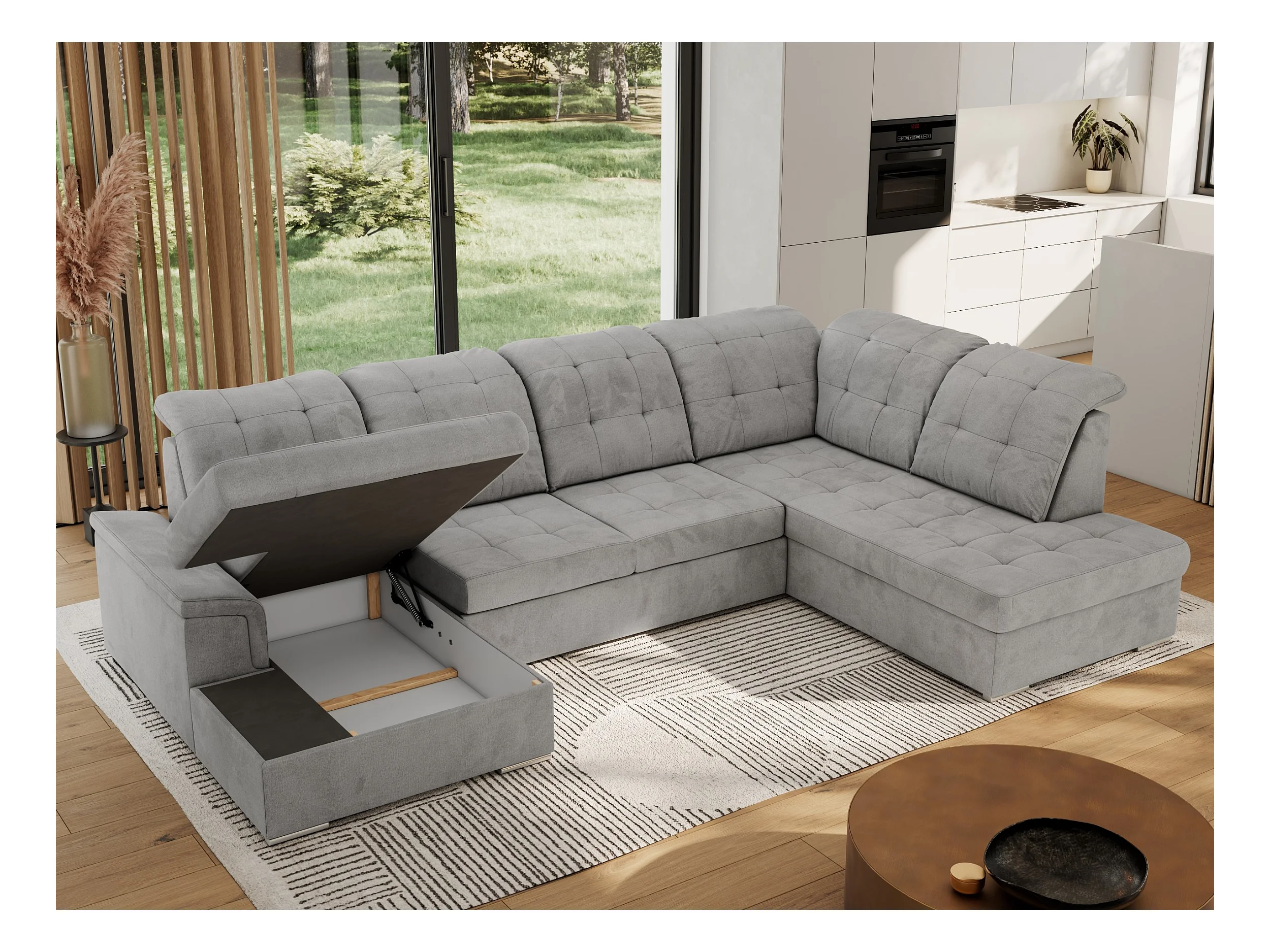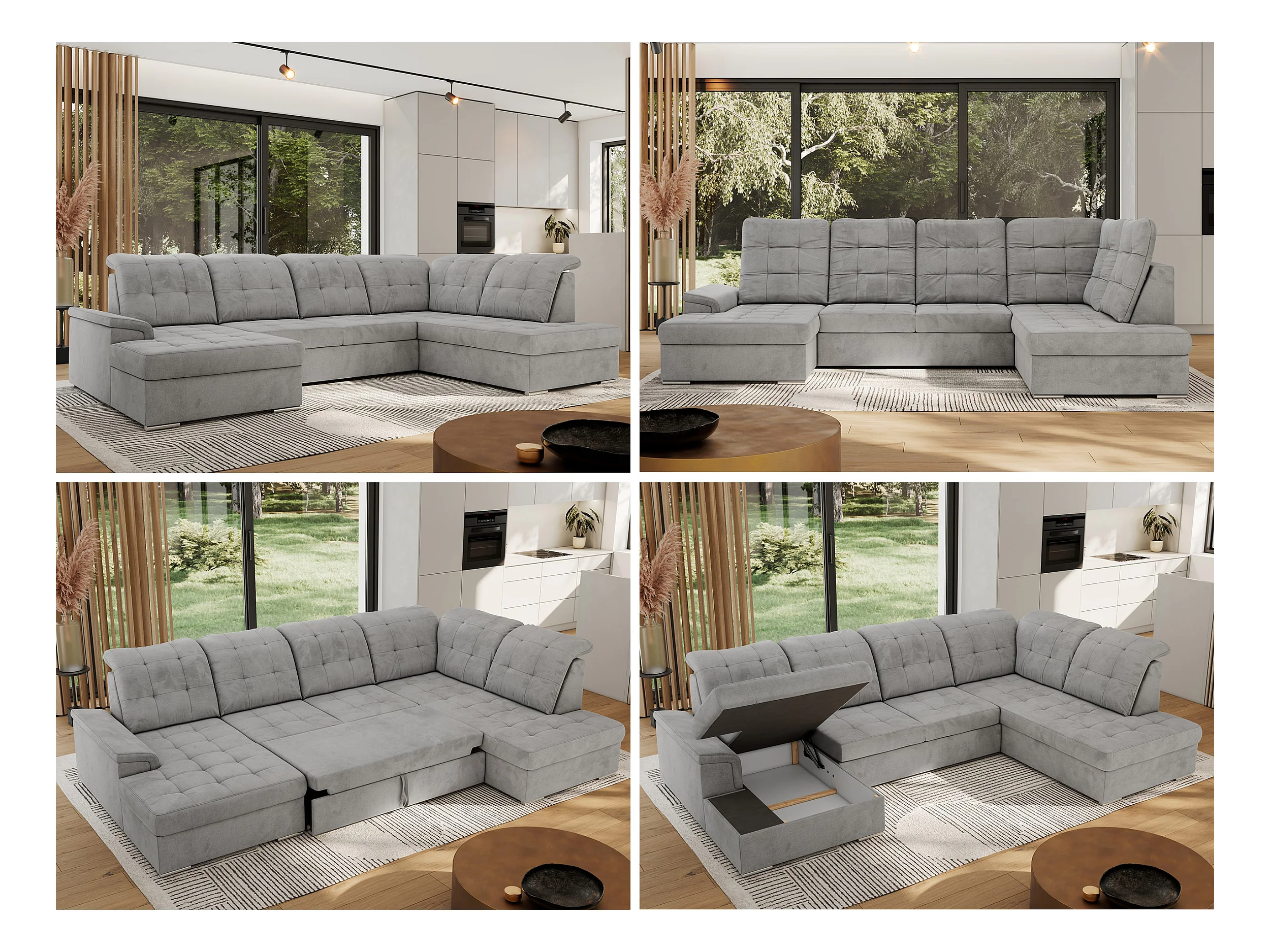 Ecksofa MADRITO U - mit verstellbarer Rückenlehne, Armlehne, L-förmige Ecke, Bettkasten - Hellgrau Velvet - Ecke Rechts