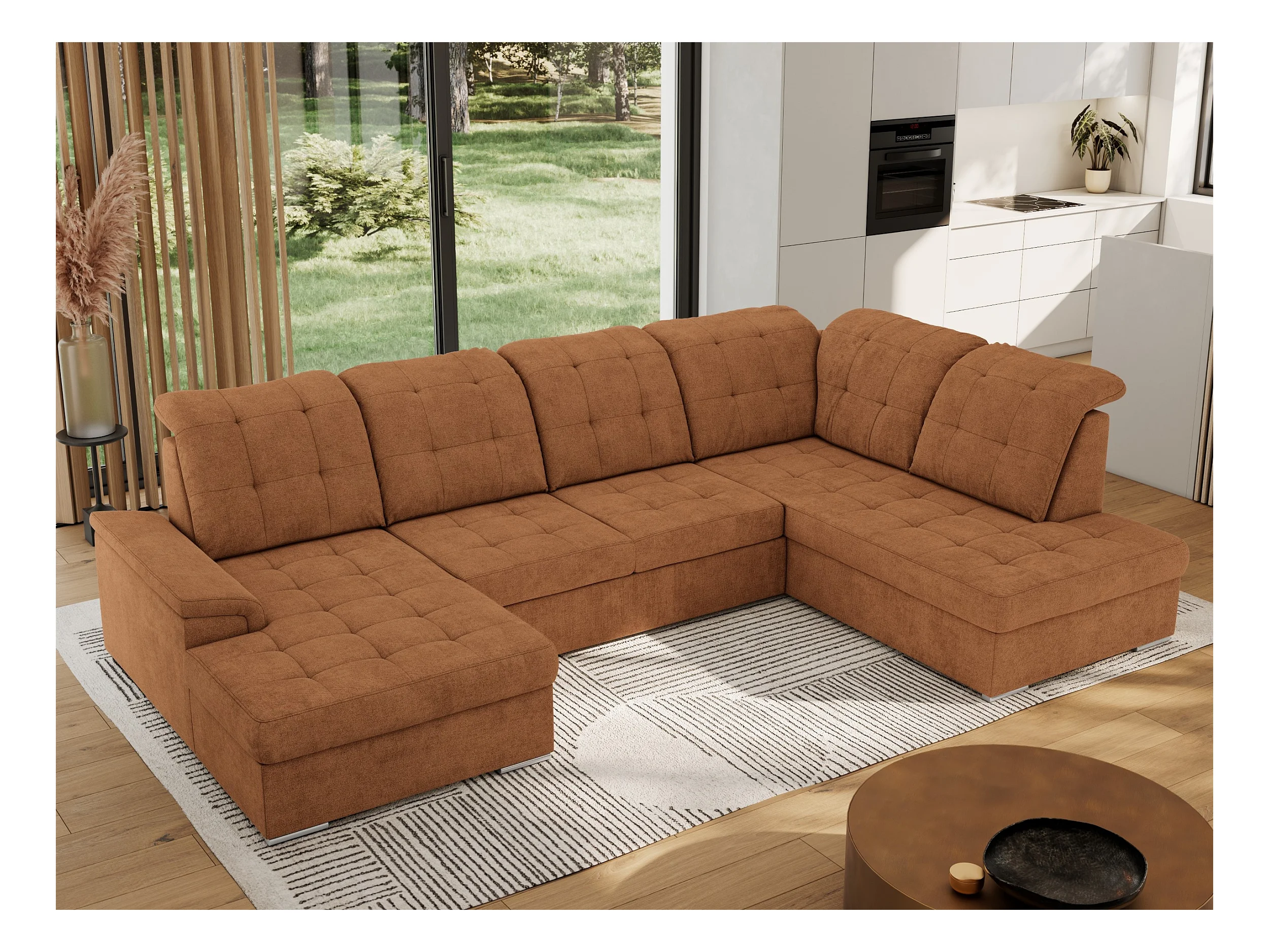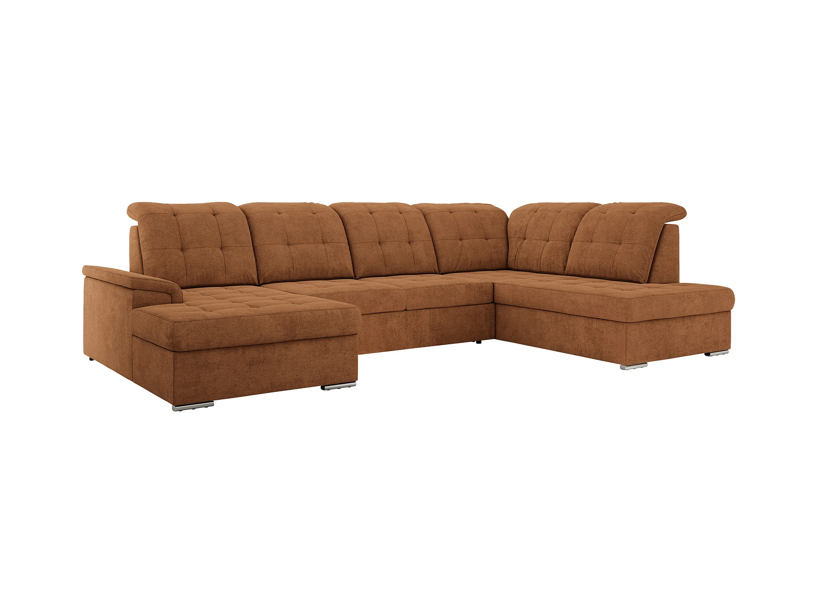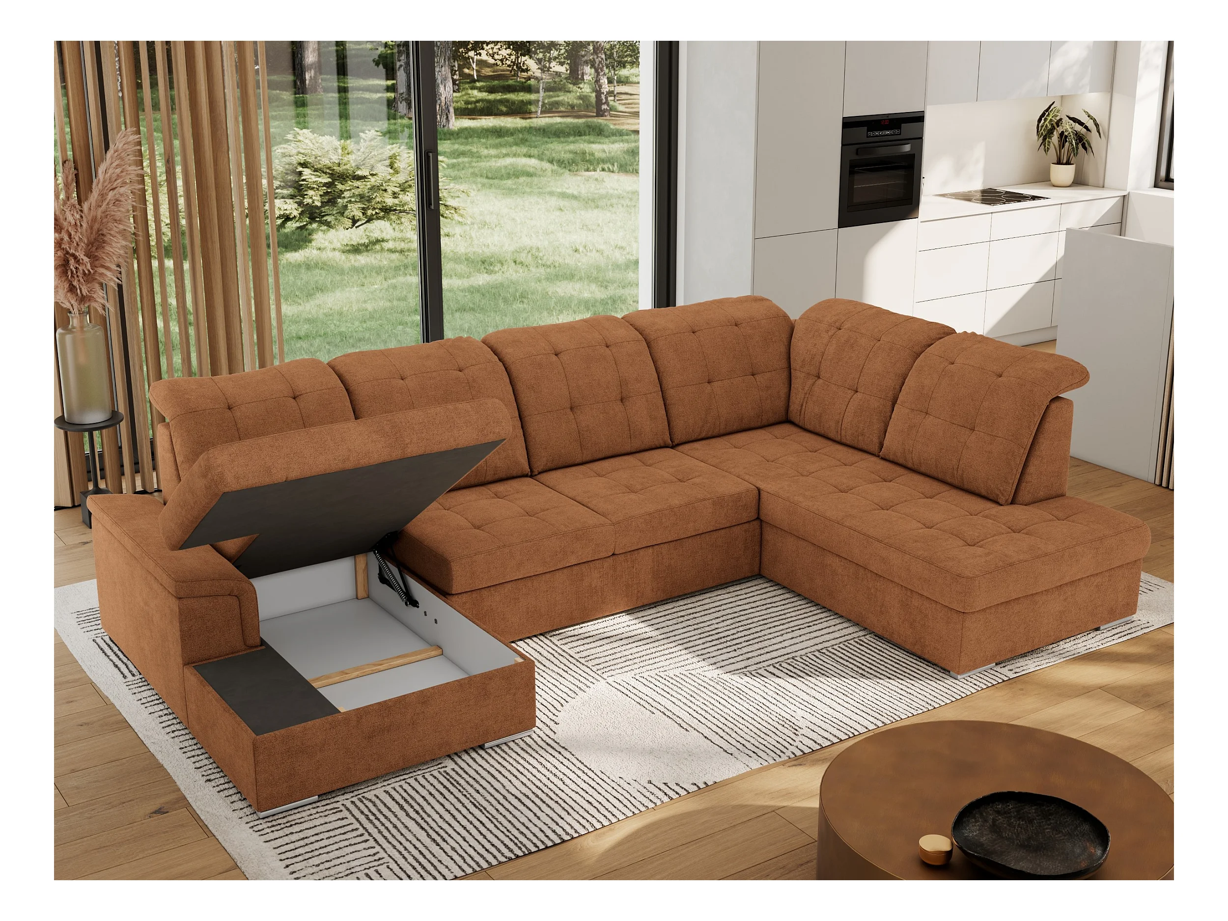 Ecksofa MADRITO U - mit verstellbarer Rückenlehne, Armlehne, L-förmige Ecke, Bettkasten - Orange Struktur - Ecke Rechts