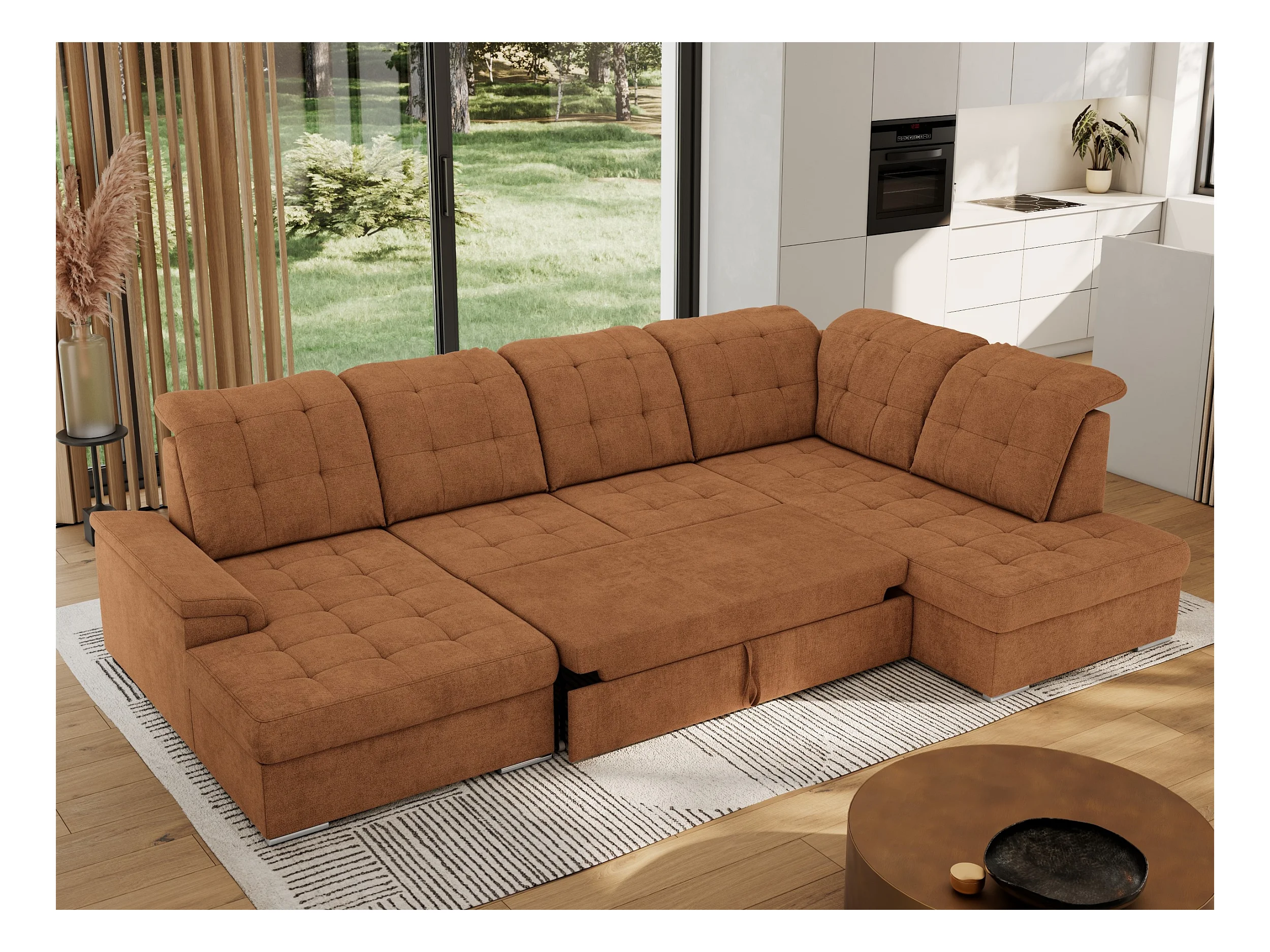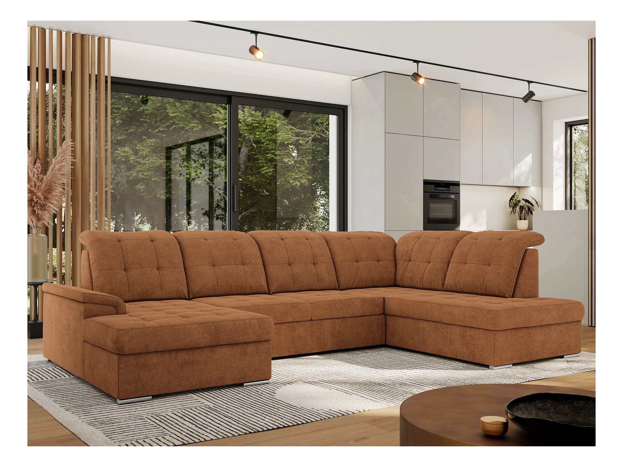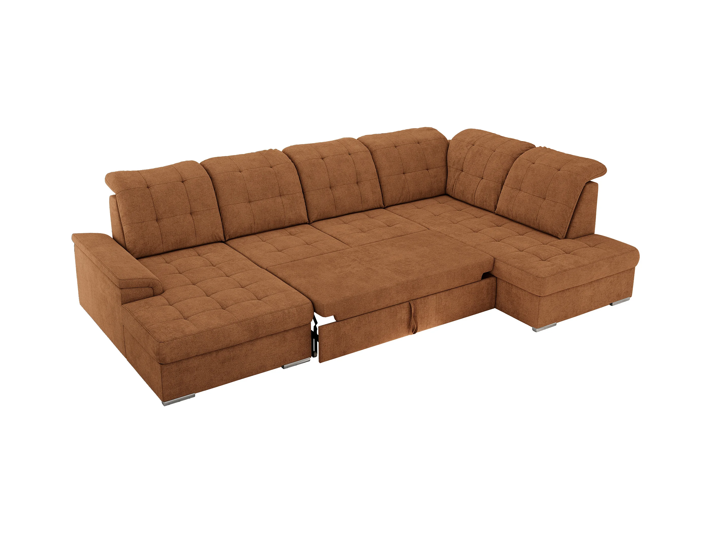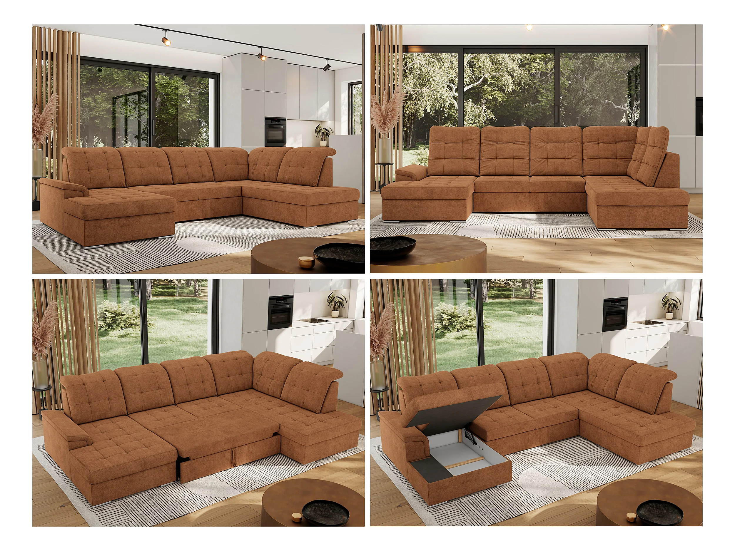 Ecksofa MADRITO U - mit verstellbarer Rückenlehne, Armlehne, L-förmige Ecke, Bettkasten - Orange Struktur - Ecke Rechts