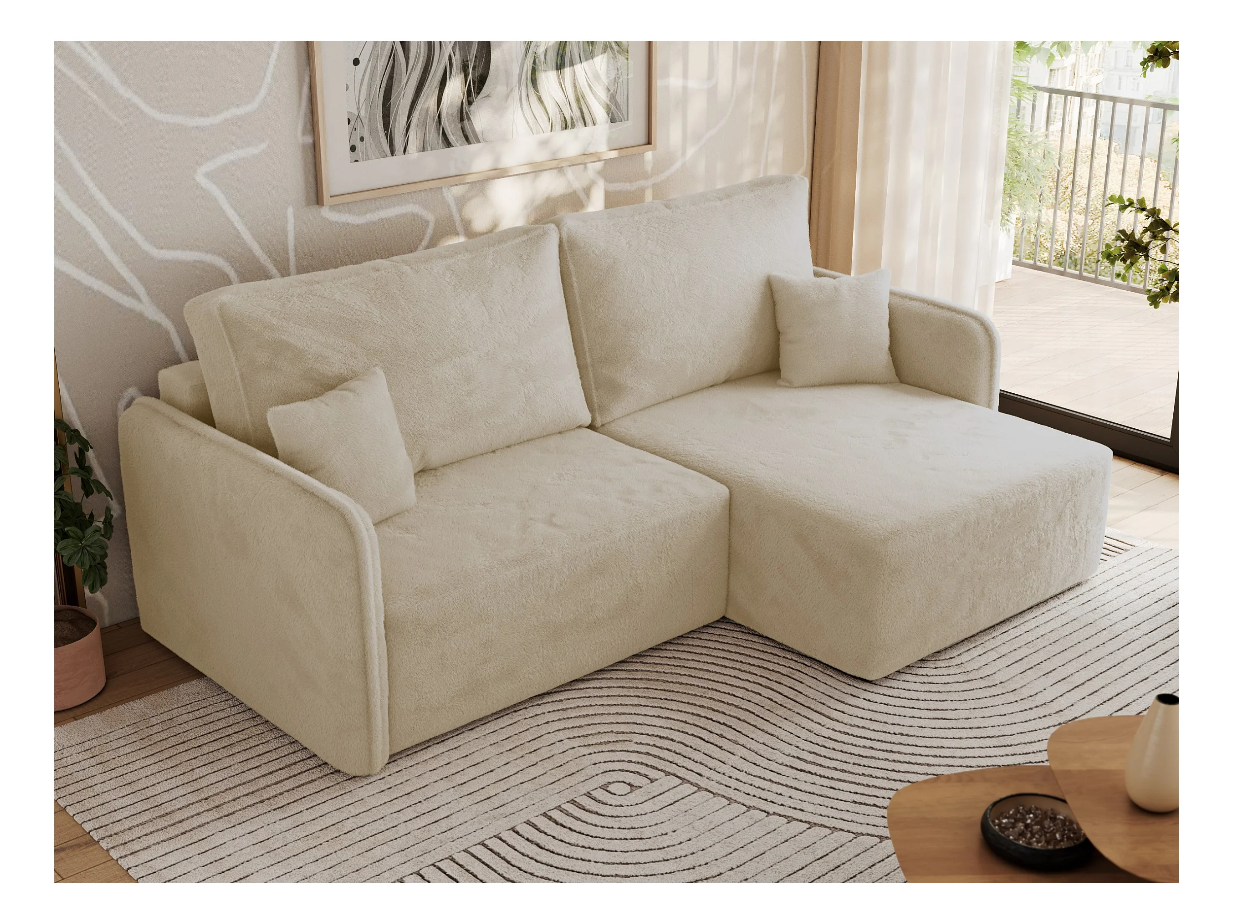 Ecksofa MESTO - Schlaffunktion und Bettkasten, L-form Couch für das Wohnzimmer, Armlehnen - Creme Plüsch - Ecke Rechts