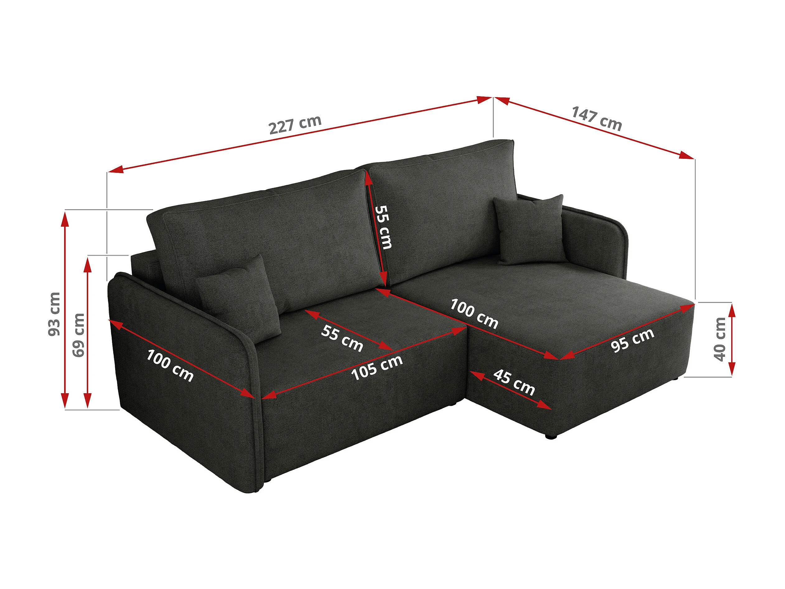 Ecksofa MESTO - Schlaffunktion und Bettkasten, L-form Couch für das Wohnzimmer, Armlehnen - Dunkelgrau Struktur - Ecke Rechts